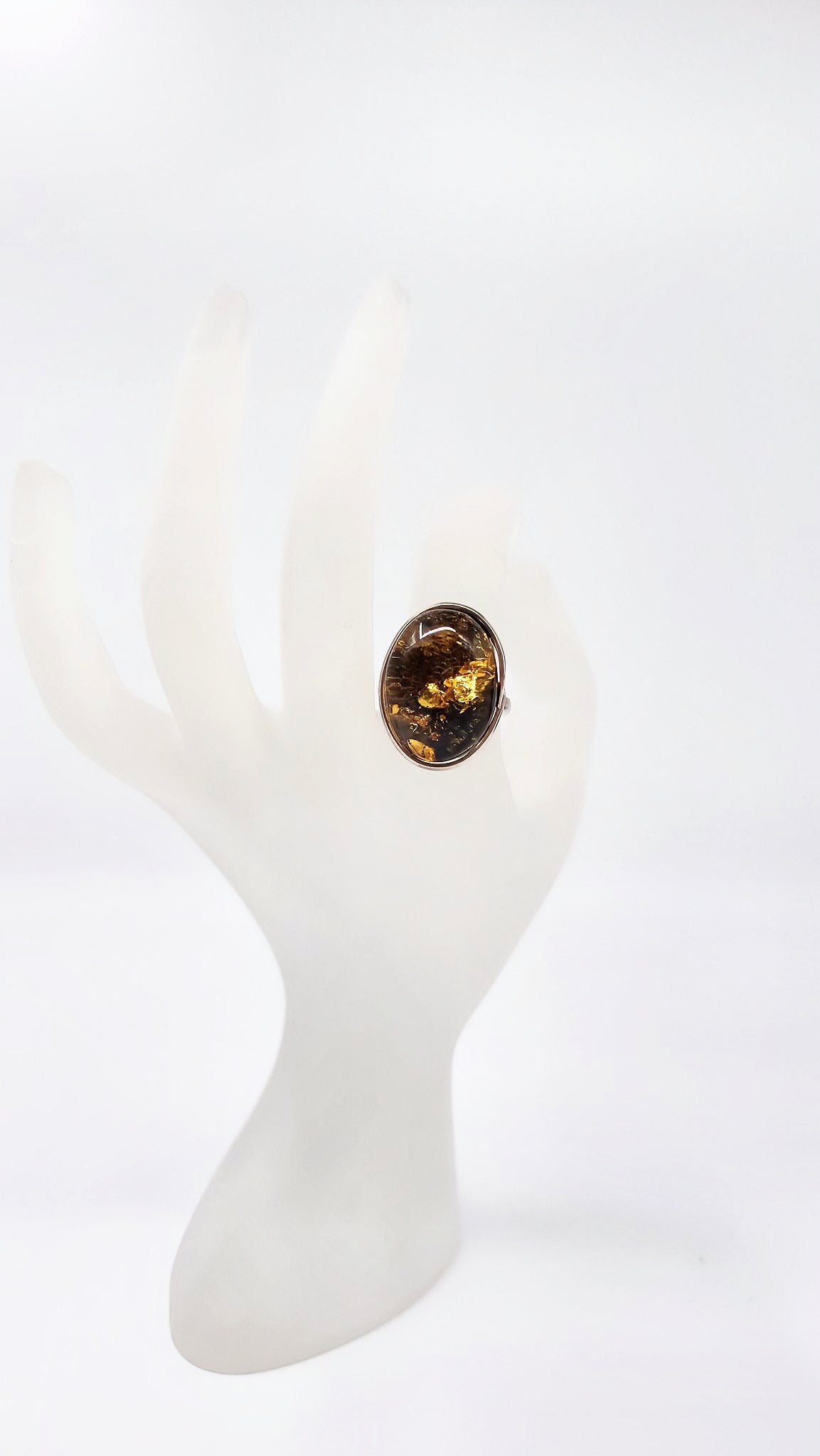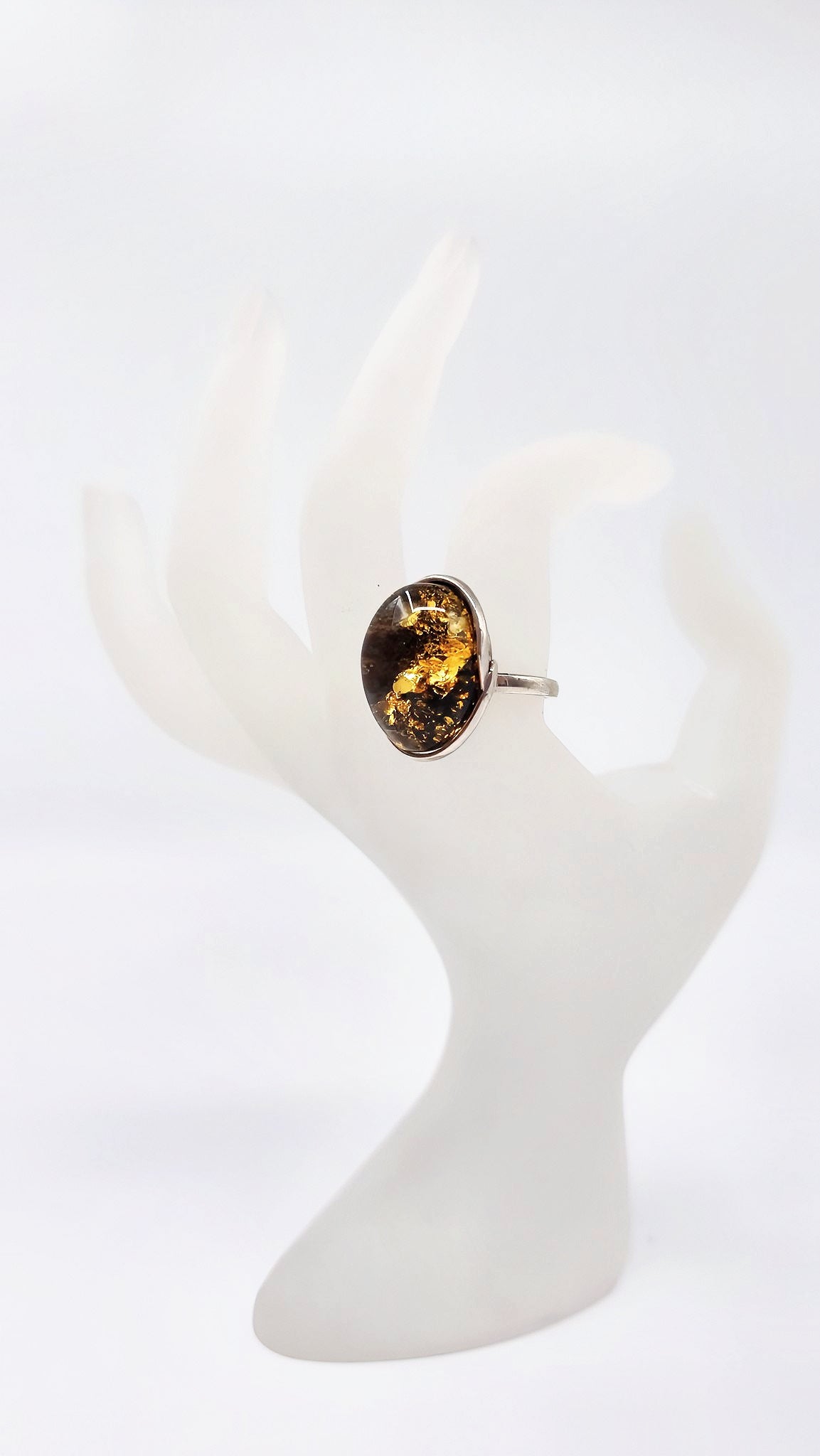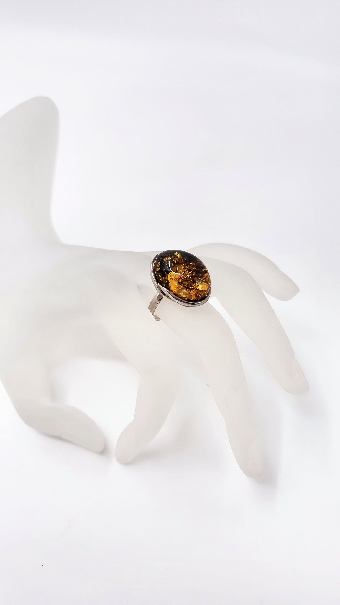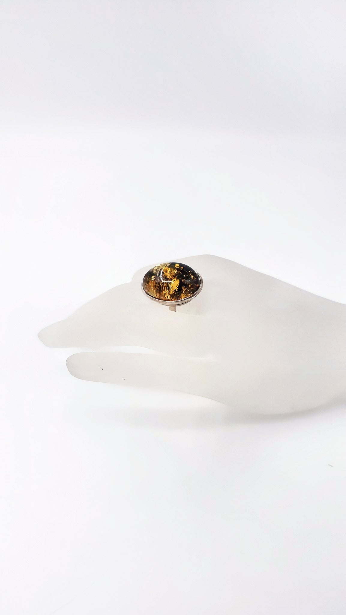 Handmade jewelry – Green amber ring with 925 sterling silver