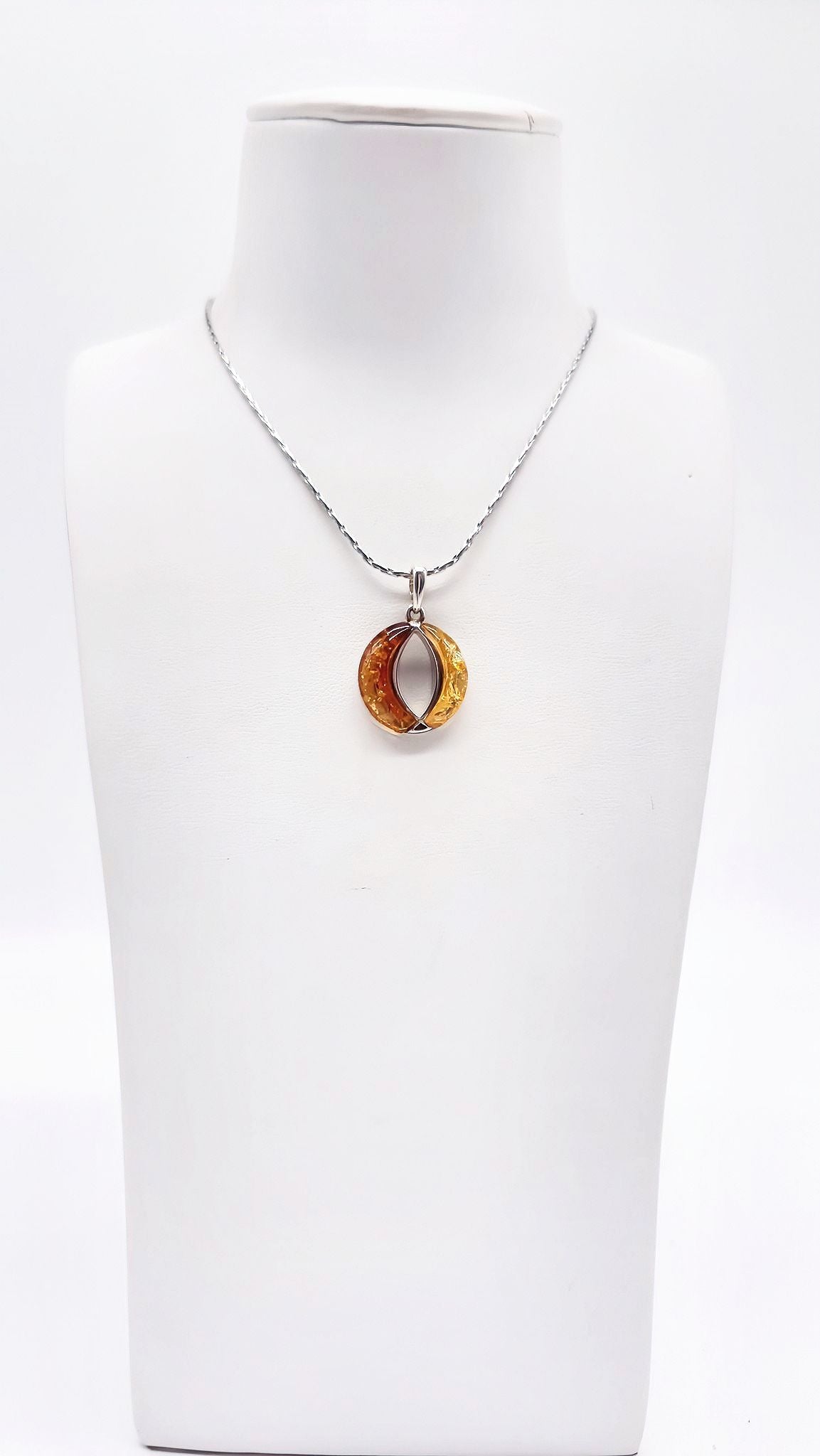 This luxurious amber pendant impresses with its superior quality and sophisticated design. The warm, golden amber is artfully set in 925 sterling silver, creating an elegant and harmonious look. The sophisticated, open shape lends the piece a modern touch and makes it a real eye-catcher. The included silver chain ensures that this exclusive accessory can be worn immediately. Perfect for women who value high-quality materials and first-class craftsmanship. An ideal gift for birthdays, anniversaries, or as an expression of special appreciation.