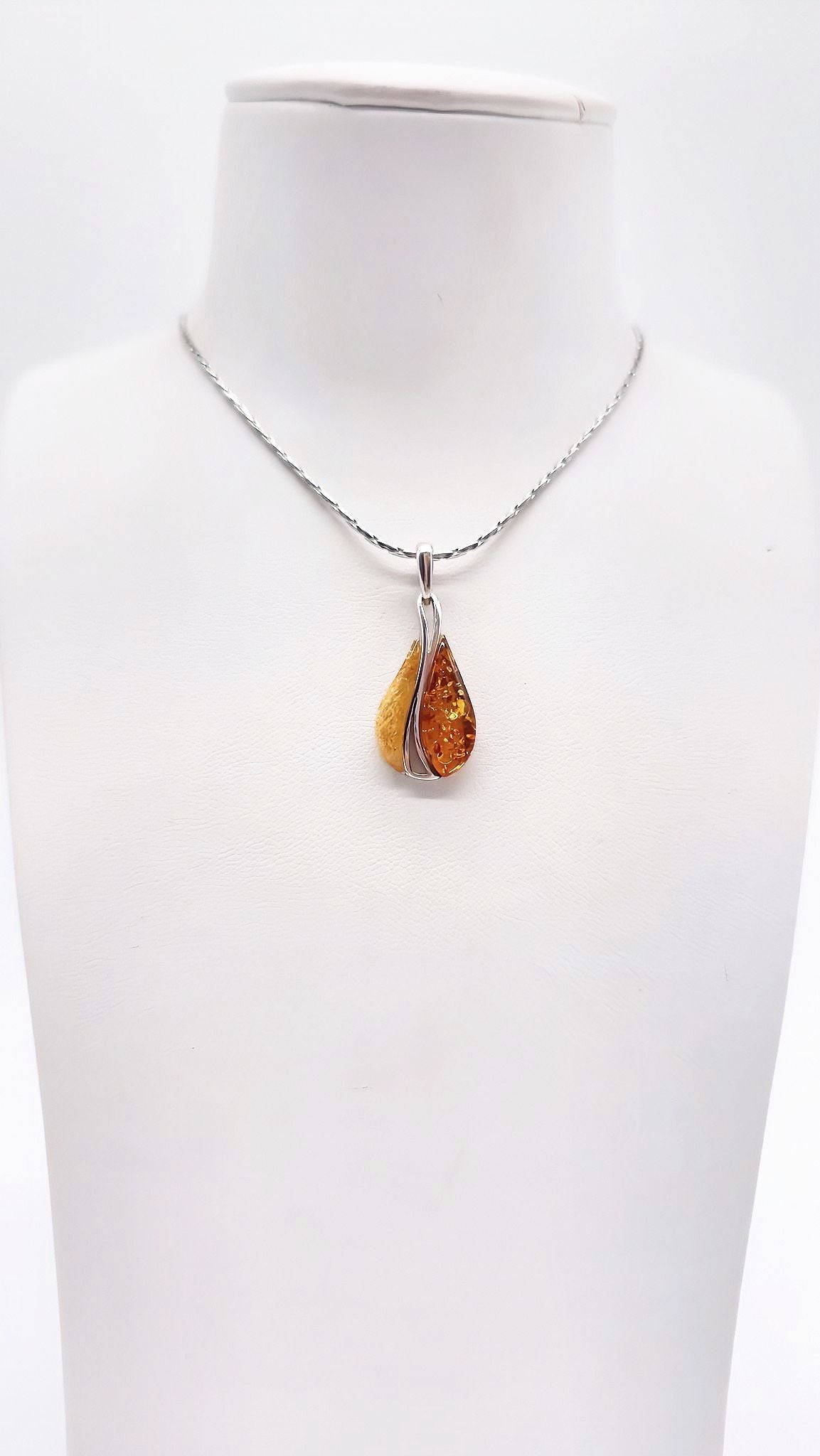 This stunning amber pendant combines two beautiful shades—warm cognac yellow and deep cherry amber—in an artistic design. The elegant 925 silver setting with floral details gives the piece a feminine and elegant touch. The included silver chain ensures this luxurious accessory is ready to wear. Perfect for women who love natural, high-quality jewelry with a unique design. Ideal as a gift for birthdays, anniversaries, or special occasions. Each amber piece is unique and captures the beauty of nature in its purest form.