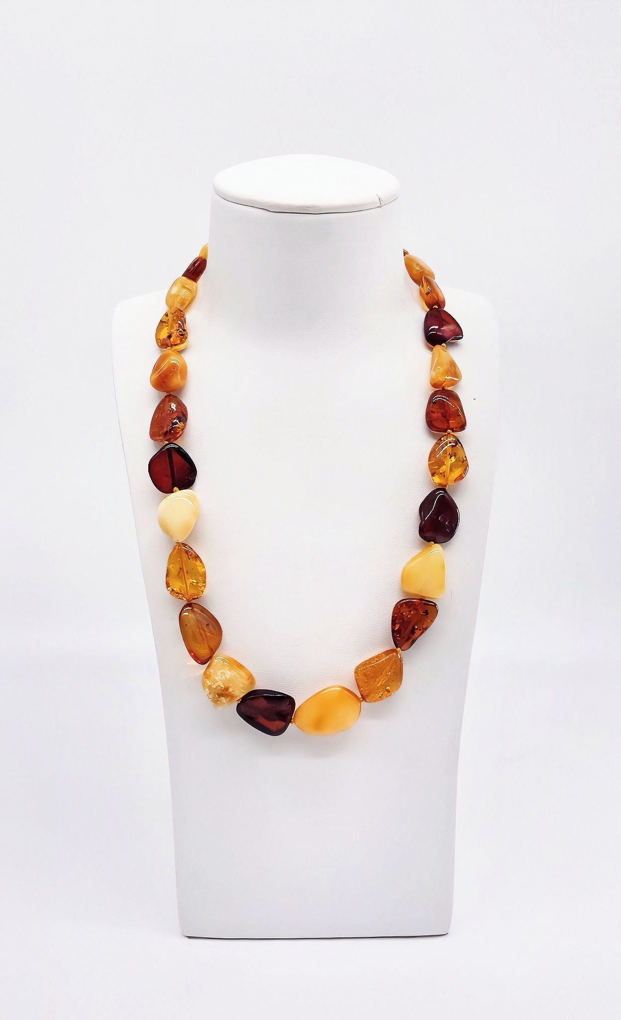 This multicolored amber necklace combines the natural beauty and variety of genuine amber in one exquisite piece of jewelry. The polished amber beads in various warm tones—from light honey to deep cognac—give this necklace a unique, vibrant design. Each piece is unique, carefully handcrafted to ensure the highest quality and elegance. This necklace is perfect for anyone who loves timeless, natural jewelry and values individuality. It's an ideal gift for style-conscious women who appreciate natural stones and handcrafted designs.