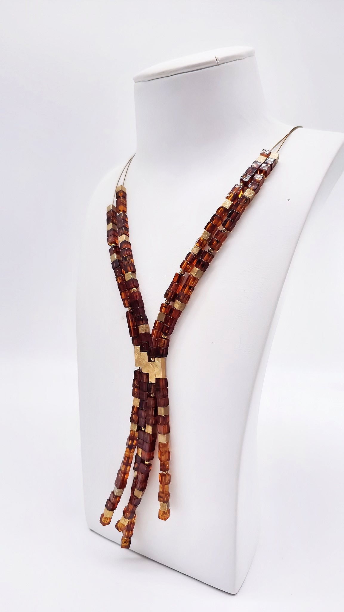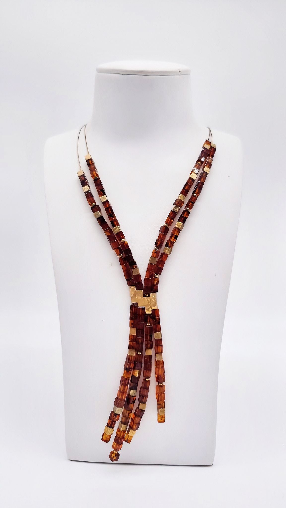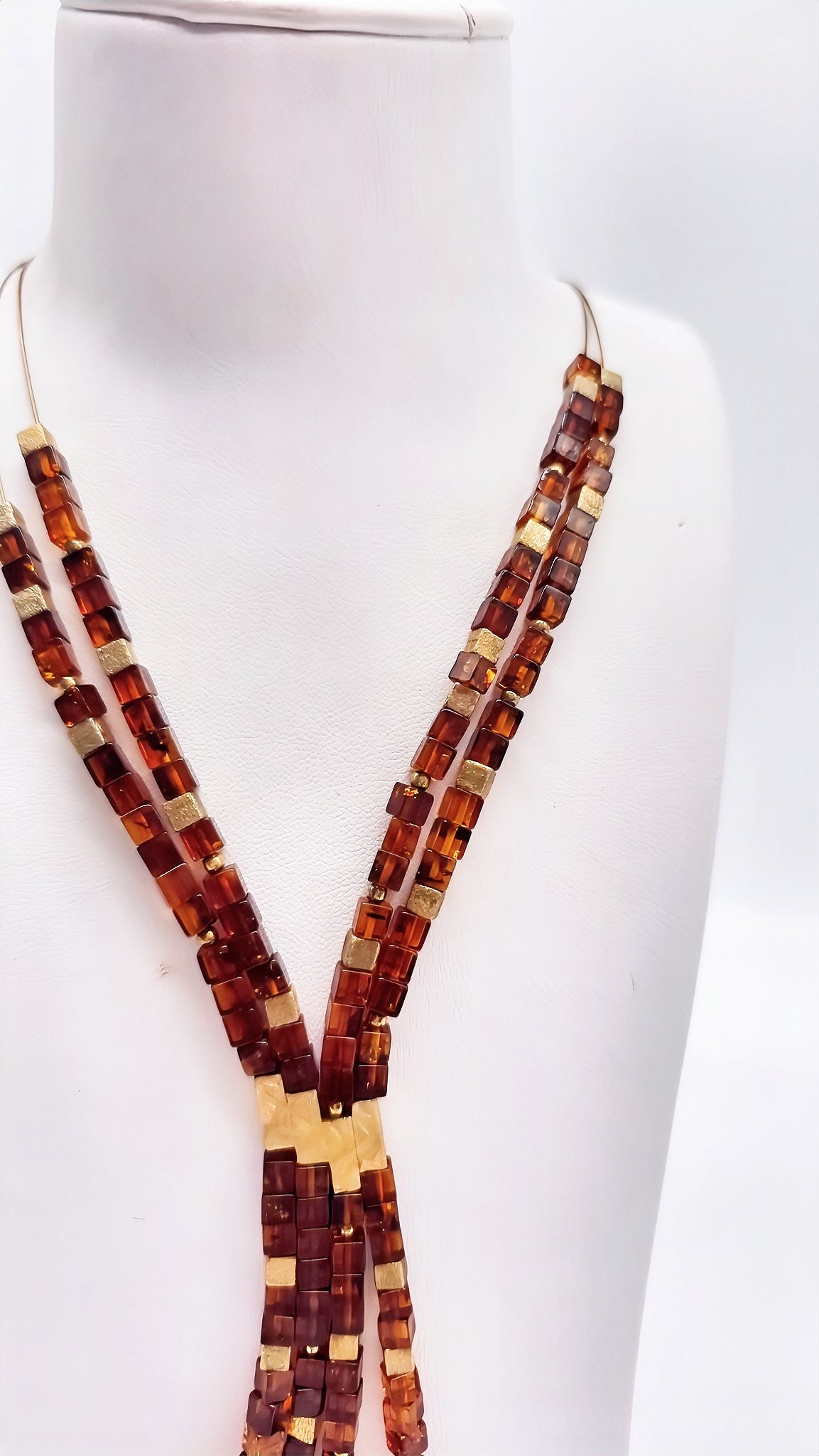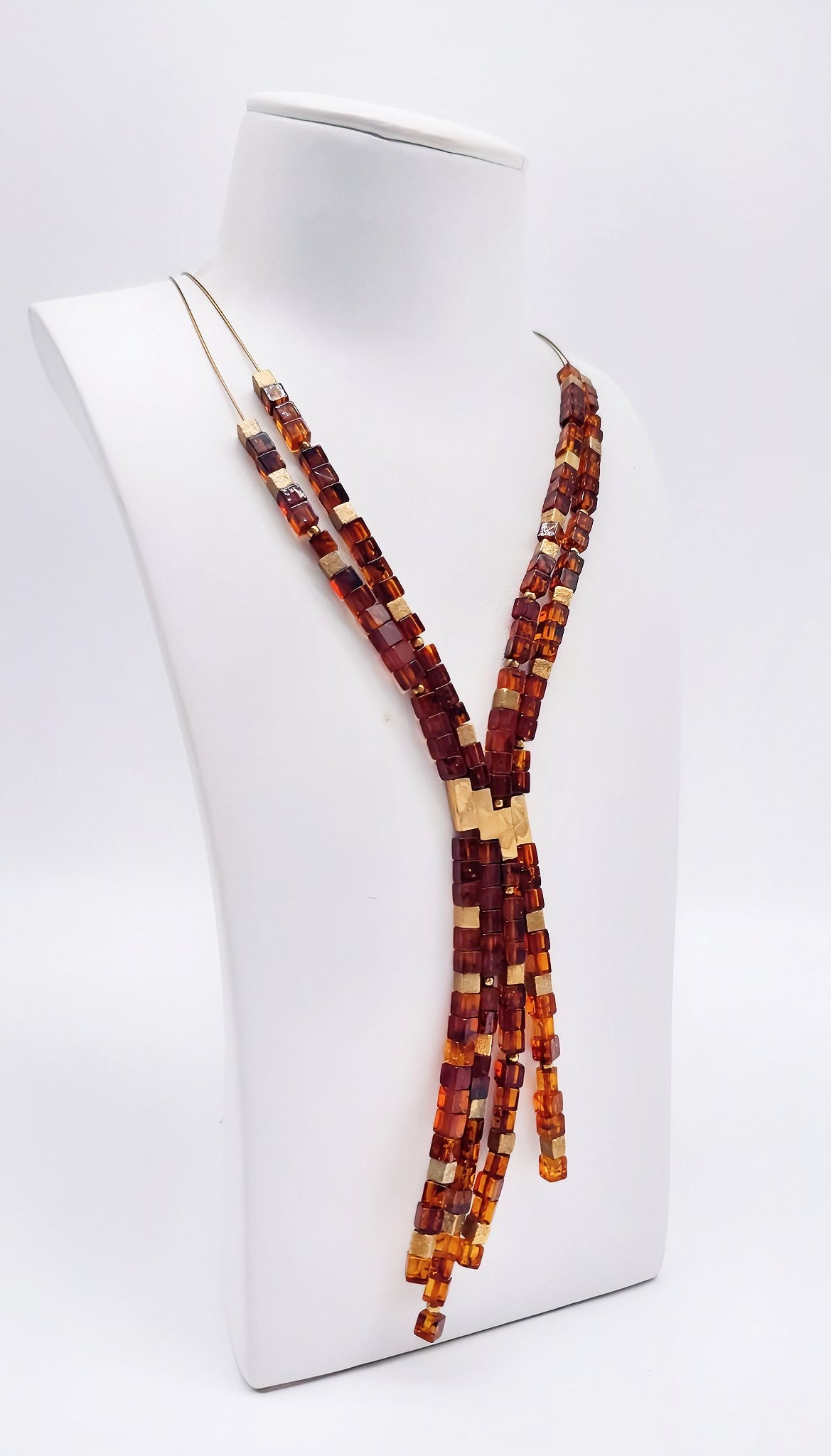 Unique amber necklace with gold-plated silver 50+5 cm