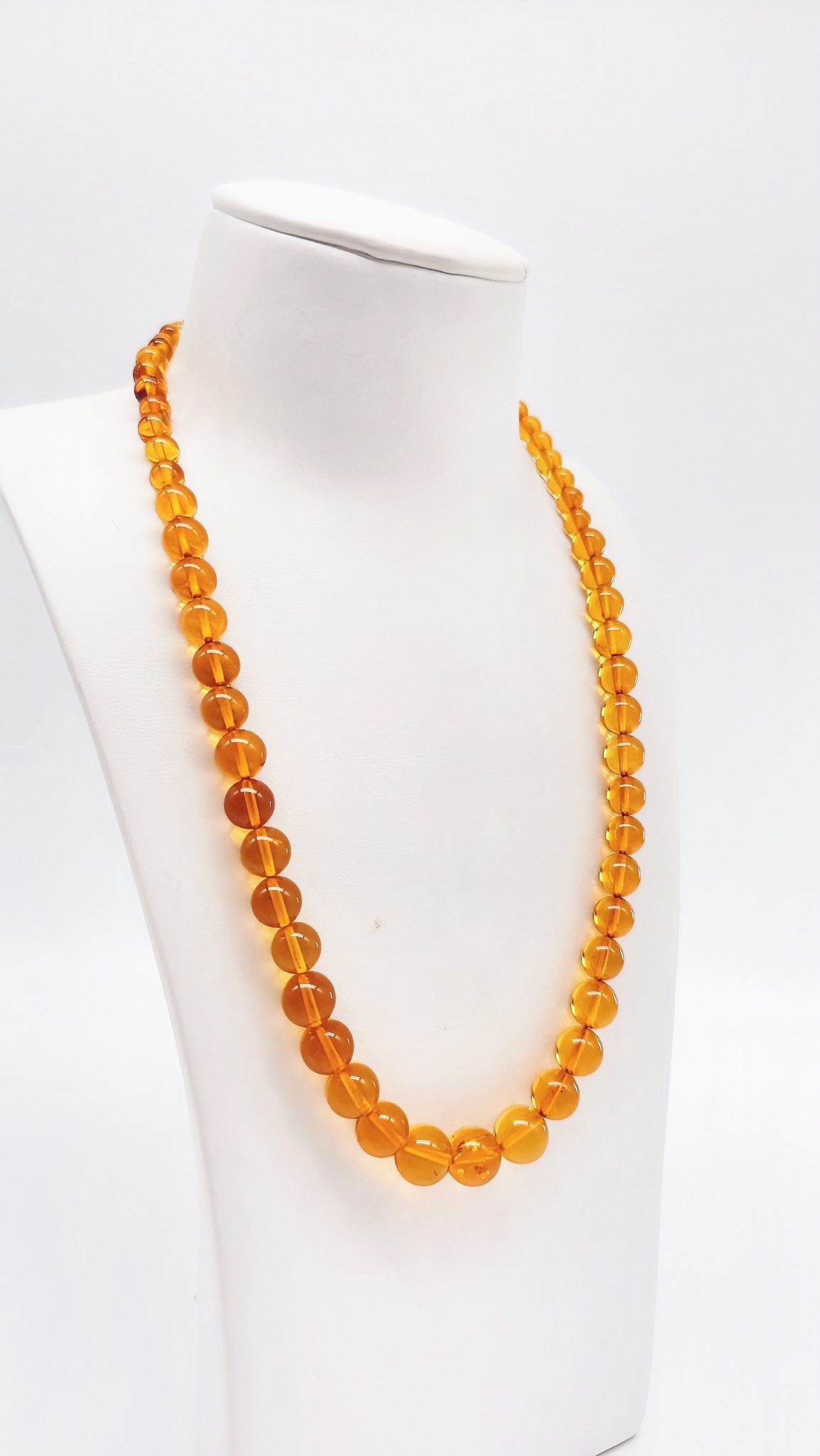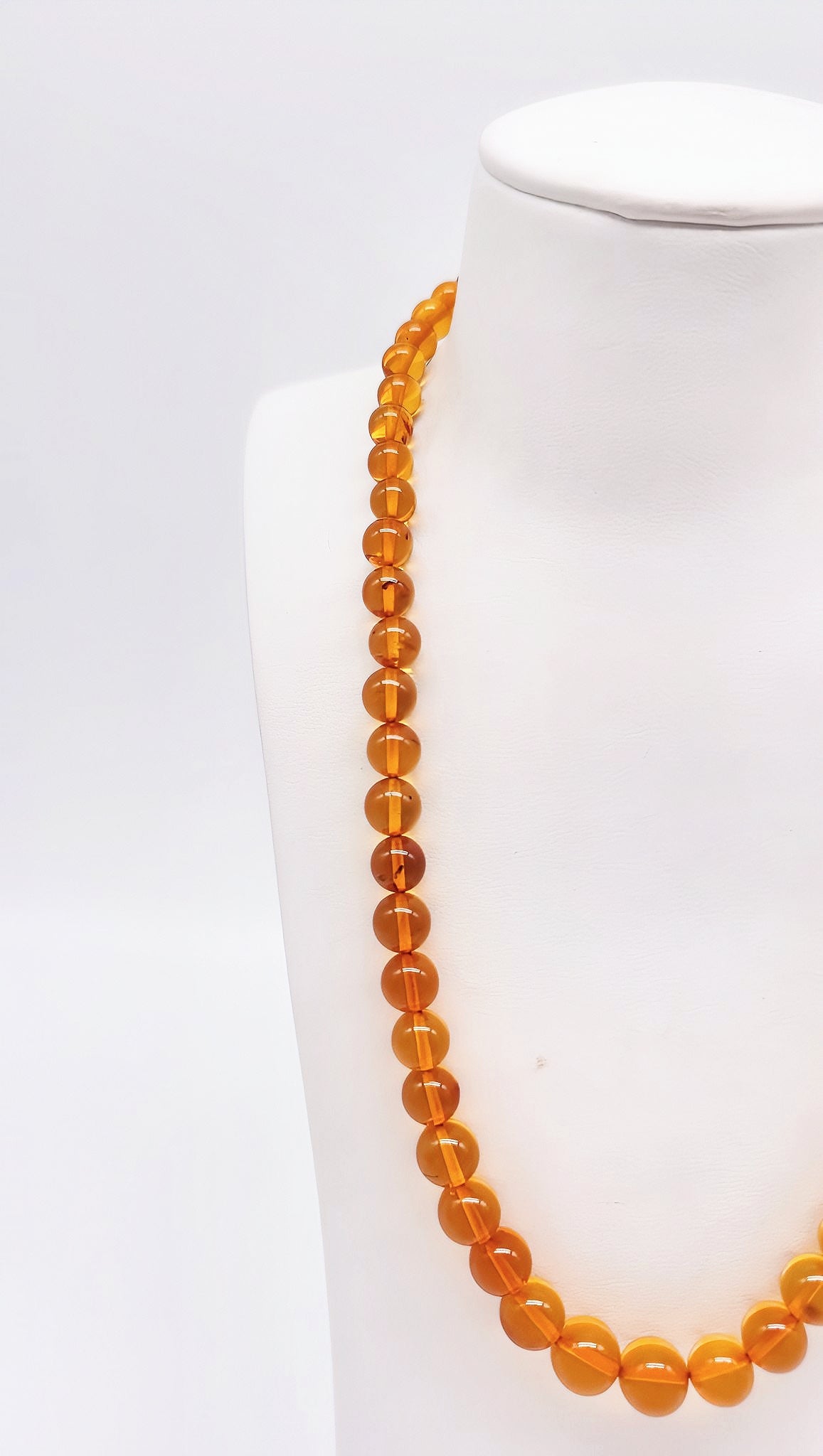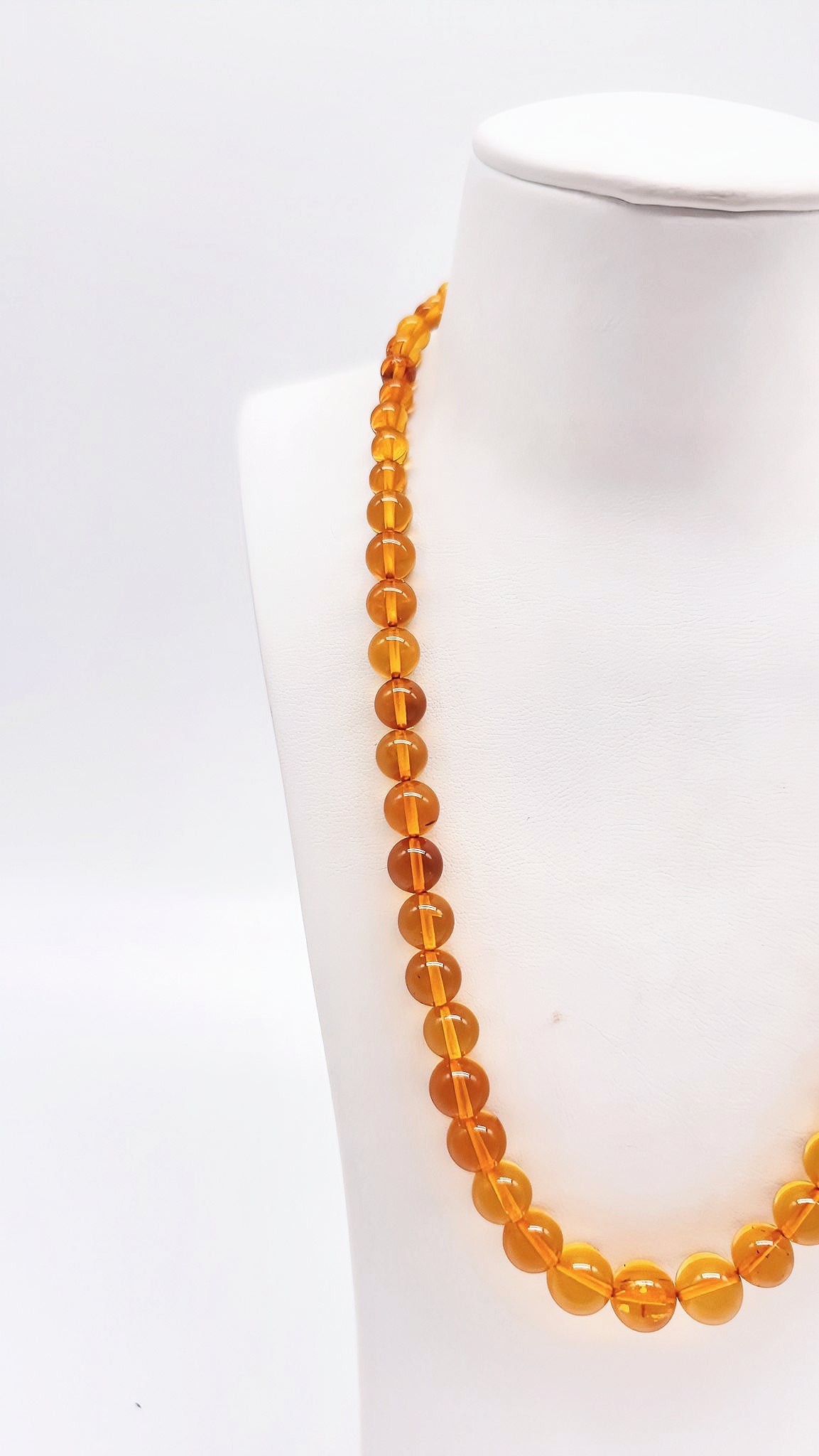 This elegant amber necklace made of genuine natural amber captivates with its warm, orange luminosity and modern design. Measuring 45 cm long and 0.7 to 1 cm wide, it's perfect for style-conscious women who appreciate high-quality jewelry. The 925 sterling silver screw clasp ensures a secure fit and underscores the exclusivity of this unique piece. This necklace is the ideal accessory for everyday wear or special occasions and makes a perfect gift for women who love natural and elegant jewelry.