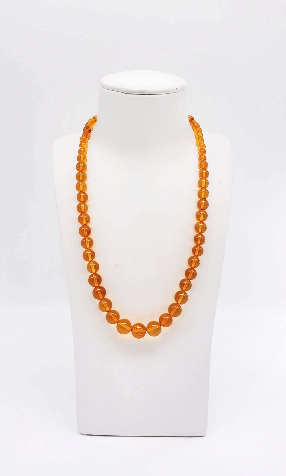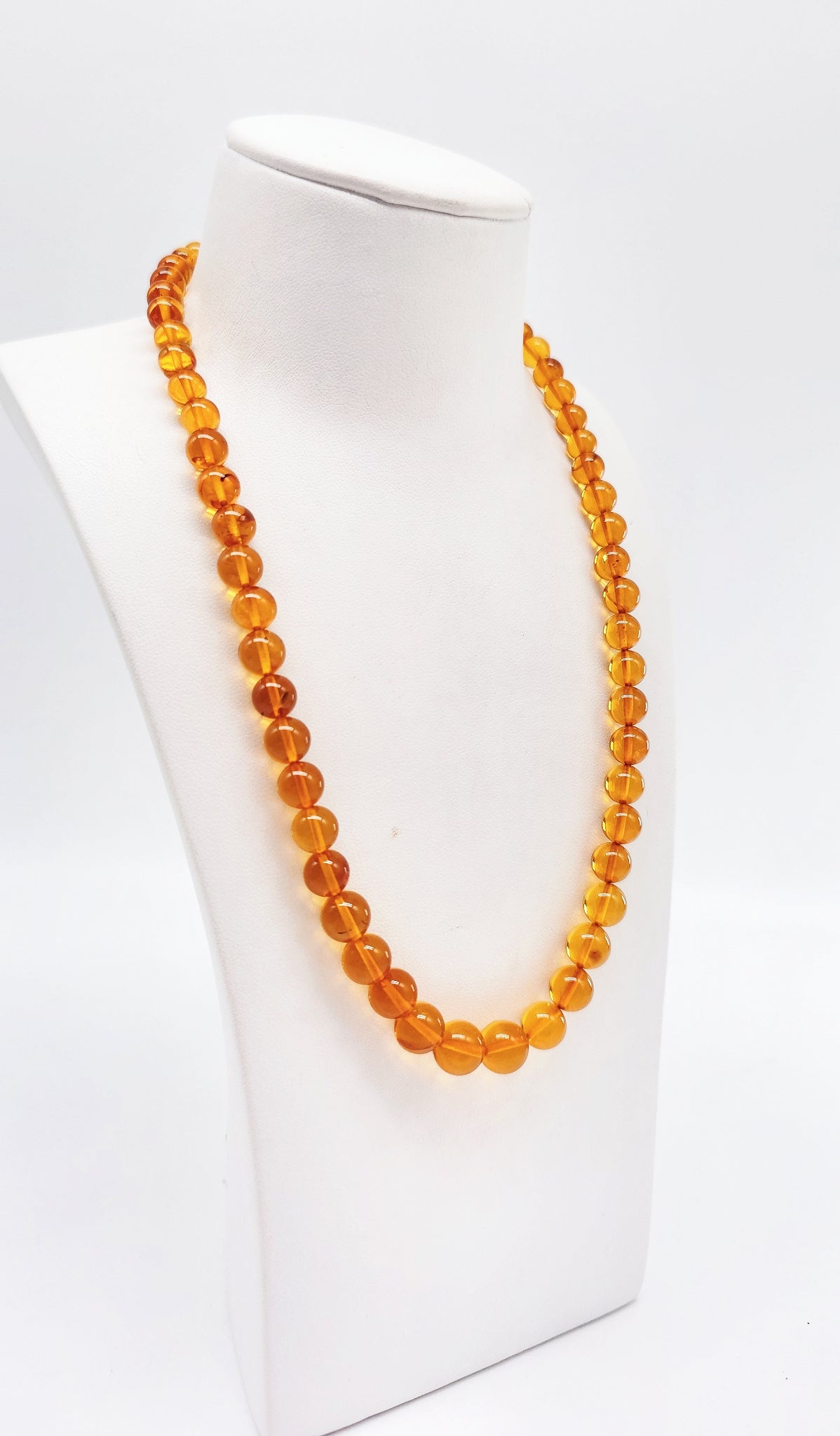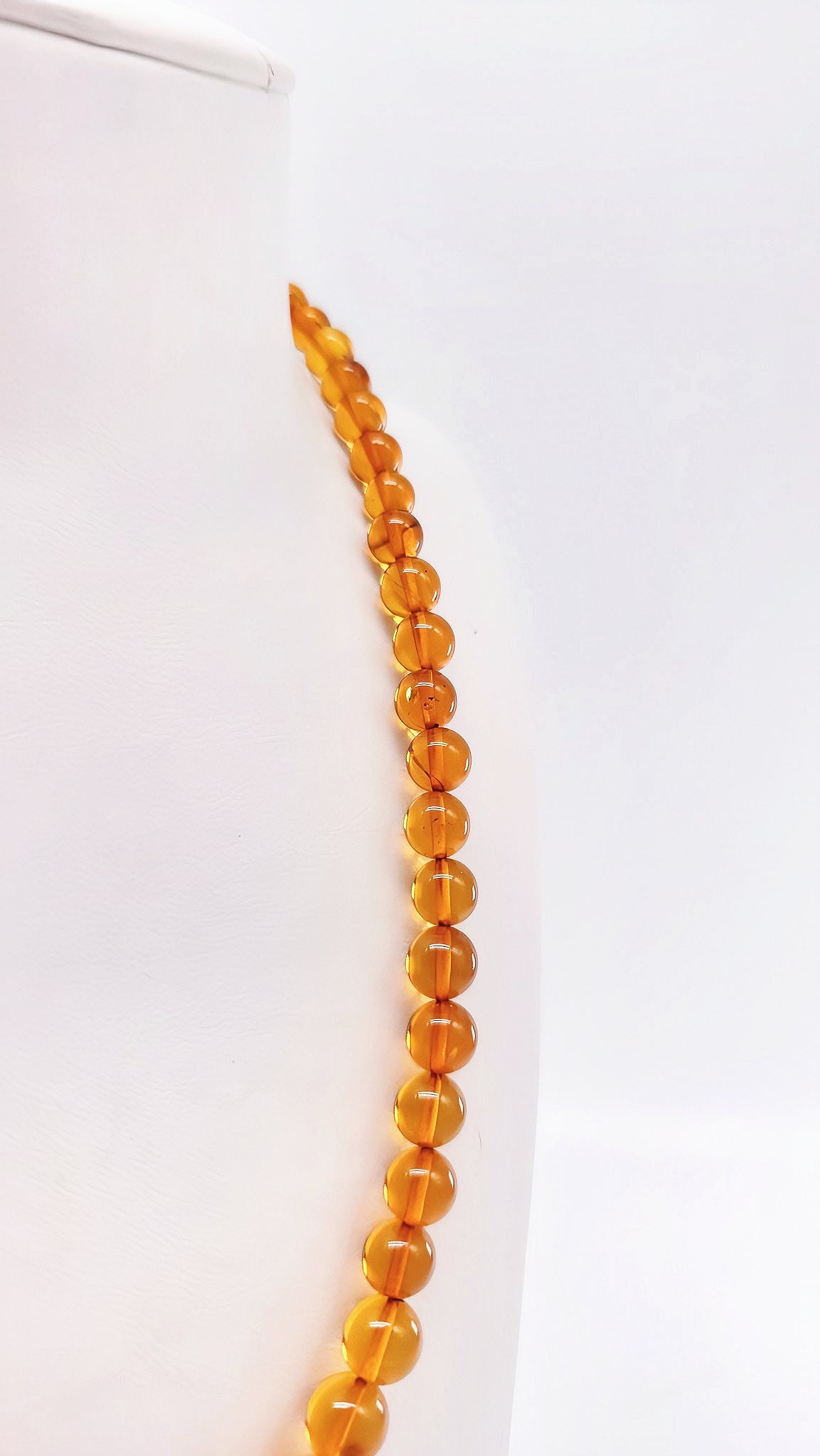 This elegant amber necklace made of genuine natural amber captivates with its warm, orange luminosity and modern design. Measuring 45 cm long and 0.7 to 1 cm wide, it's perfect for style-conscious women who appreciate high-quality jewelry. The 925 sterling silver screw clasp ensures a secure fit and underscores the exclusivity of this unique piece. This necklace is the ideal accessory for everyday wear or special occasions and makes a perfect gift for women who love natural and elegant jewelry.