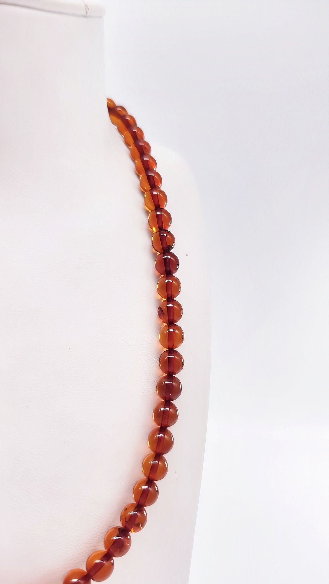 This elegant amber necklace combines natural beauty with high-quality craftsmanship. The fine, dark orange amber beads feature a warm, intense hue and are perfectly cut. Measuring 45 cm long and 0.7 cm wide, the necklace is comfortable to wear and a stylish companion for any occasion. The high-quality 925 sterling silver lobster clasp ensures a secure fit and an elegant finish. A perfect gift for women who love natural elegance and unique jewelry —ideal for birthdays, anniversaries, or special occasions.