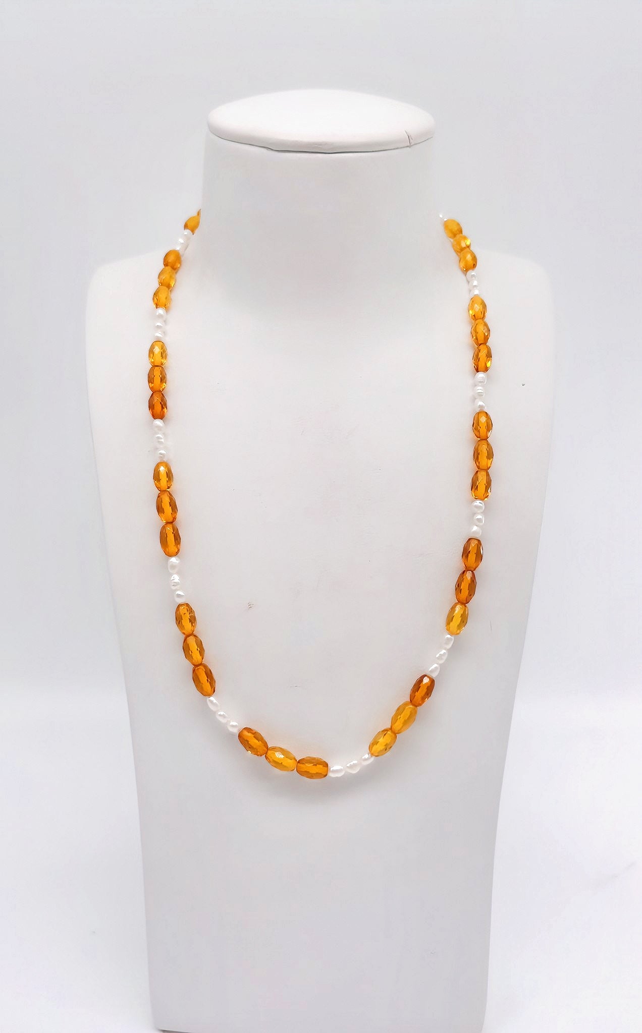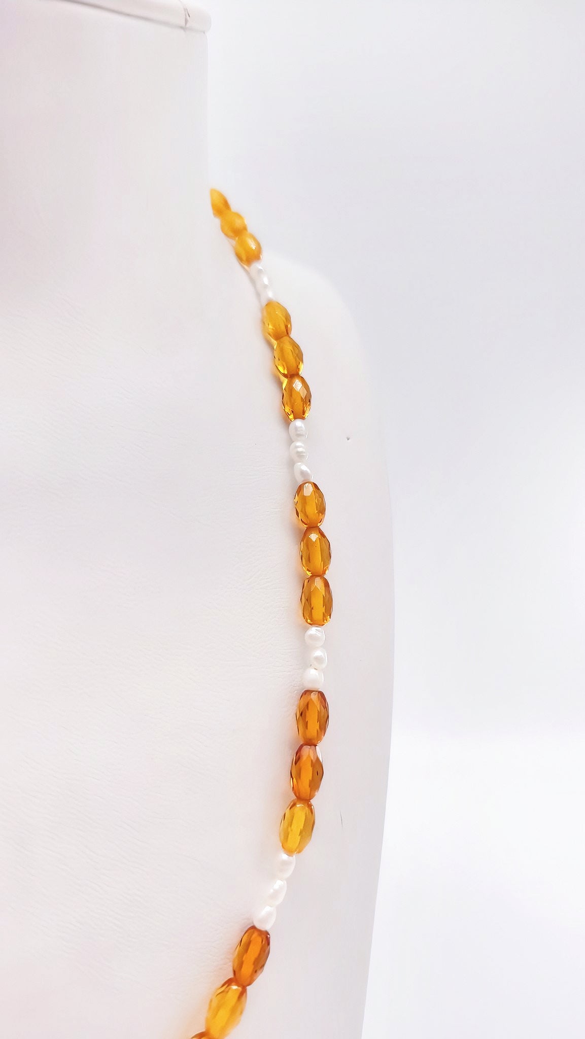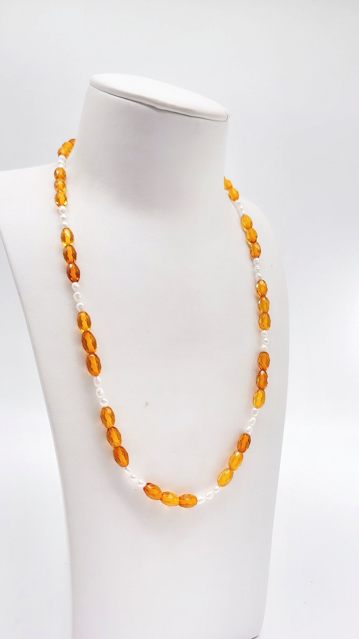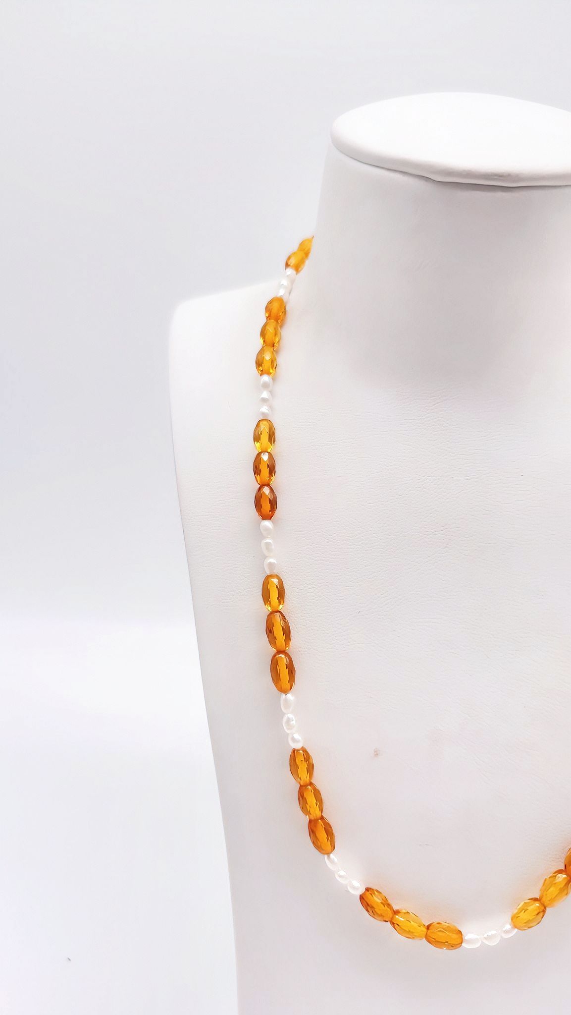 This elegant amber necklace with sea pearls combines high-quality materials with a timeless design. The combination of yellow amber pearls and shimmering white sea pearls creates an elegant and stylish look. The necklace measures 45 cm long and 0.4 cm wide , making it lightweight and comfortable to wear. The 925 sterling silver screw clasp ensures a secure fit. Perfect for women who appreciate natural elegance and delicate jewelry —it's ideal as a gift for special occasions such as birthdays or anniversaries.
