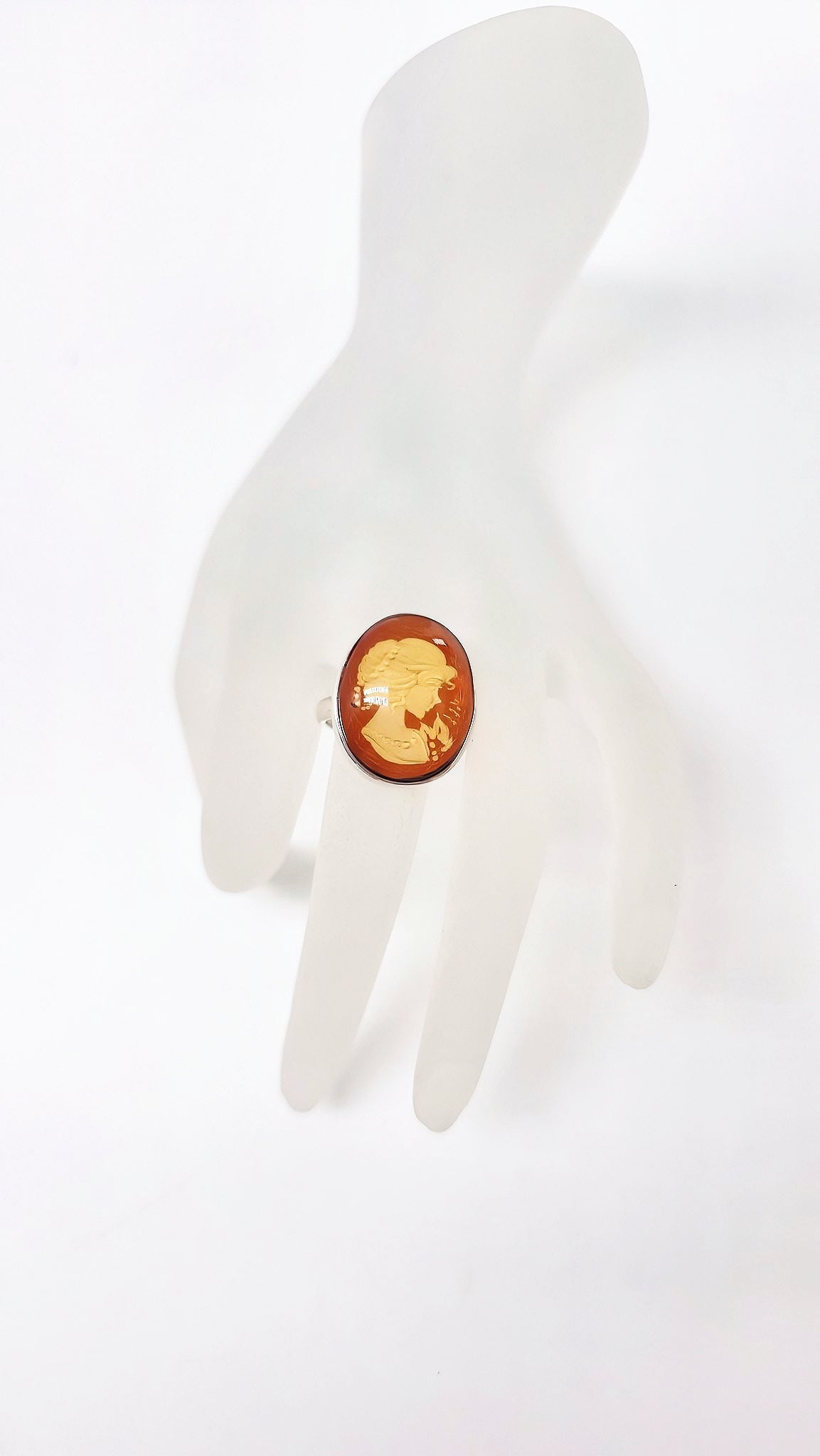 This handcrafted amber ring combines sophisticated design with natural elegance. The warm amber stone is artfully engraved and set in a high-quality 925 sterling silver setting . Measuring 2.5 cm long, 2 cm wide, and 1 cm high, it is a stylish statement piece. Thanks to the adjustable ring band , the ring fits any finger size. Perfect for women who love unusual jewelry or as a special gift for birthdays, anniversaries, or other special occasions.