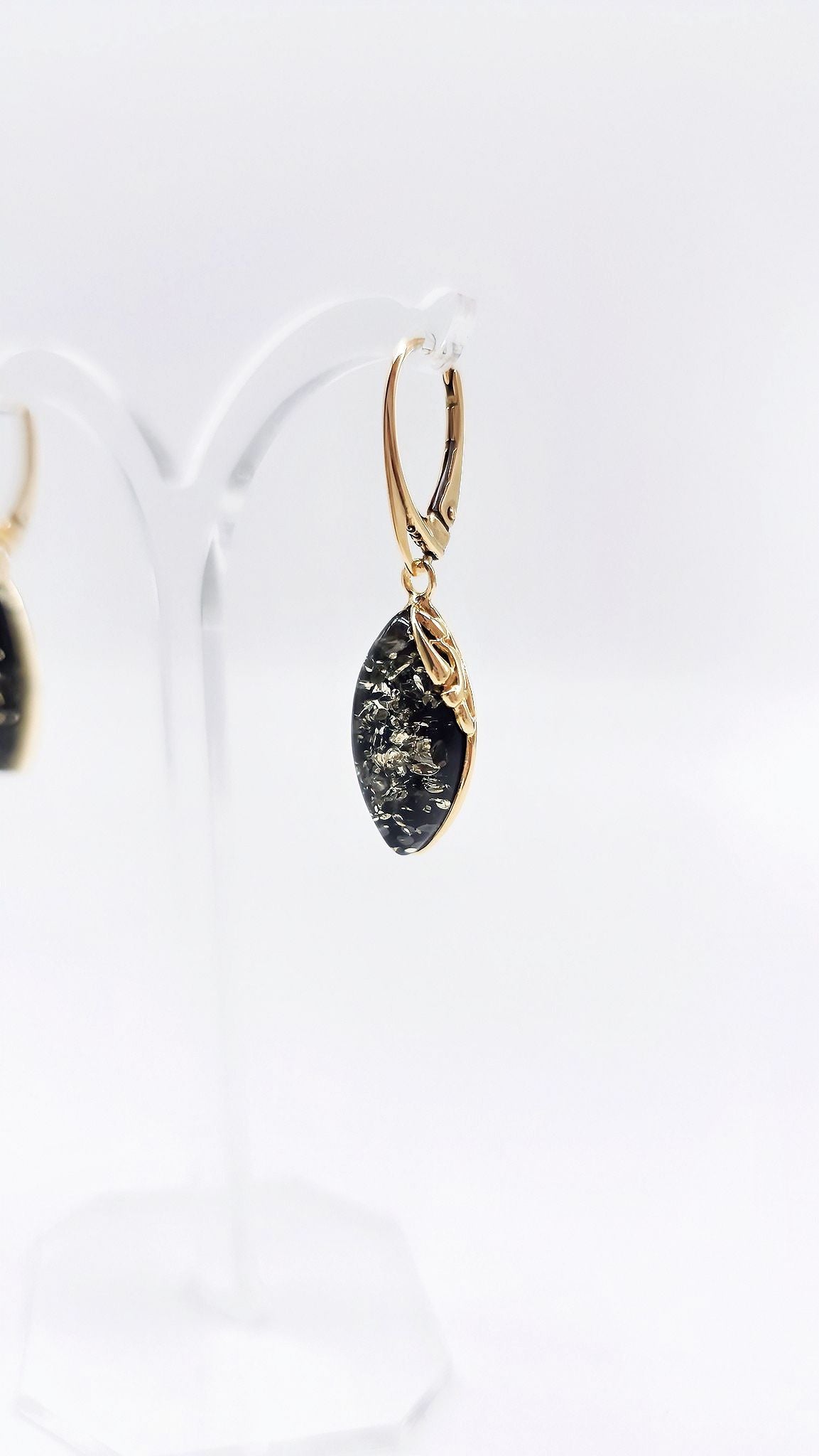Women's earrings with amber & gold-plated silver