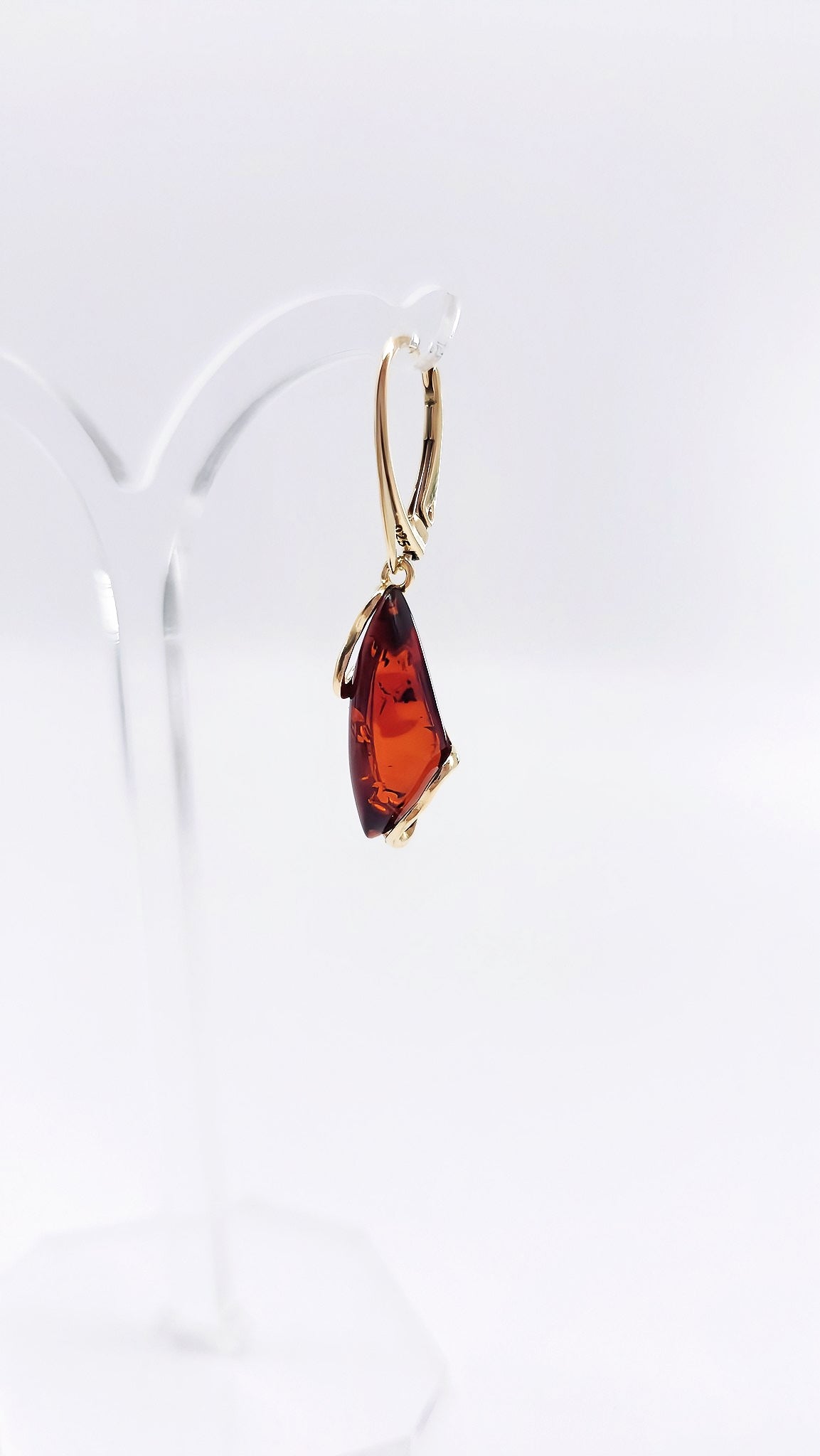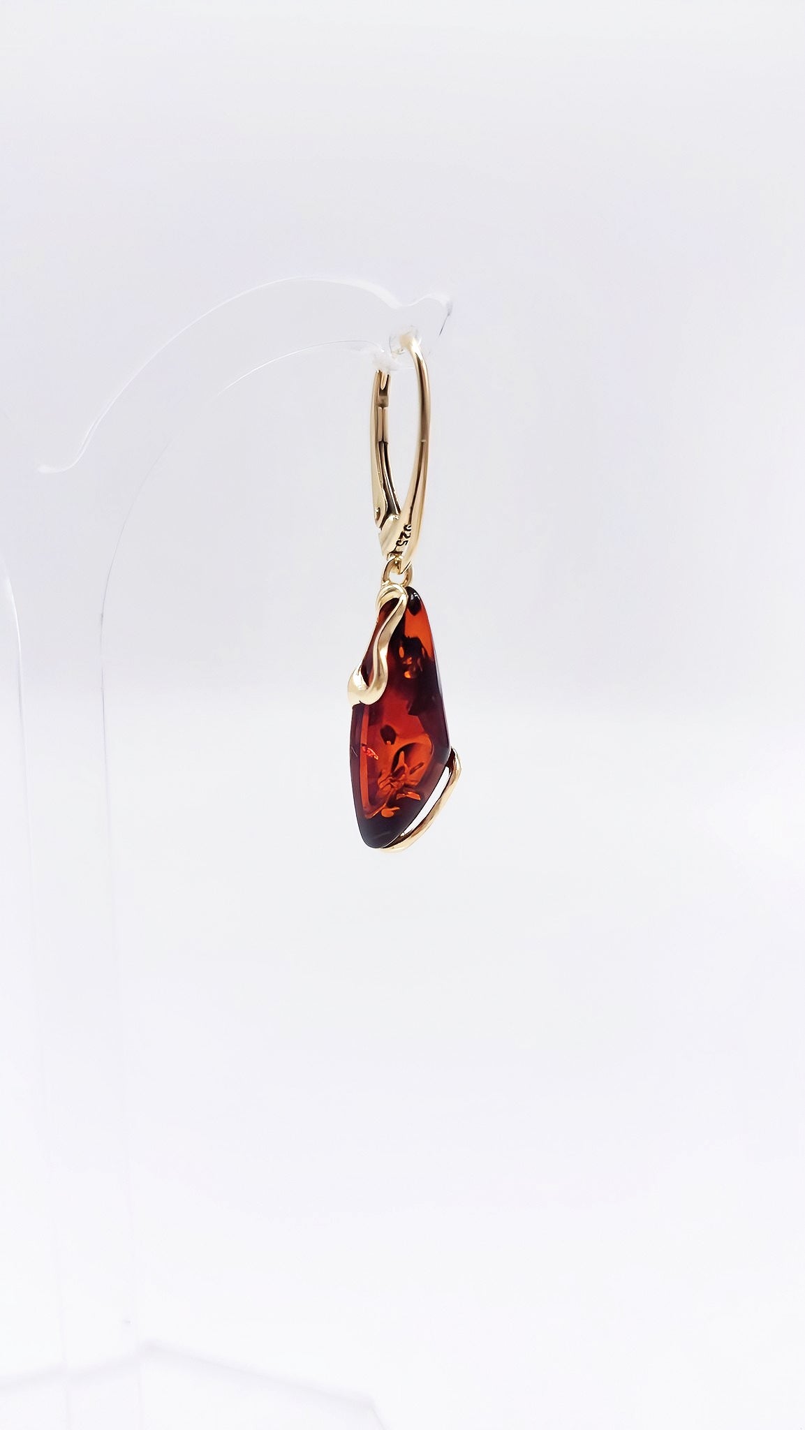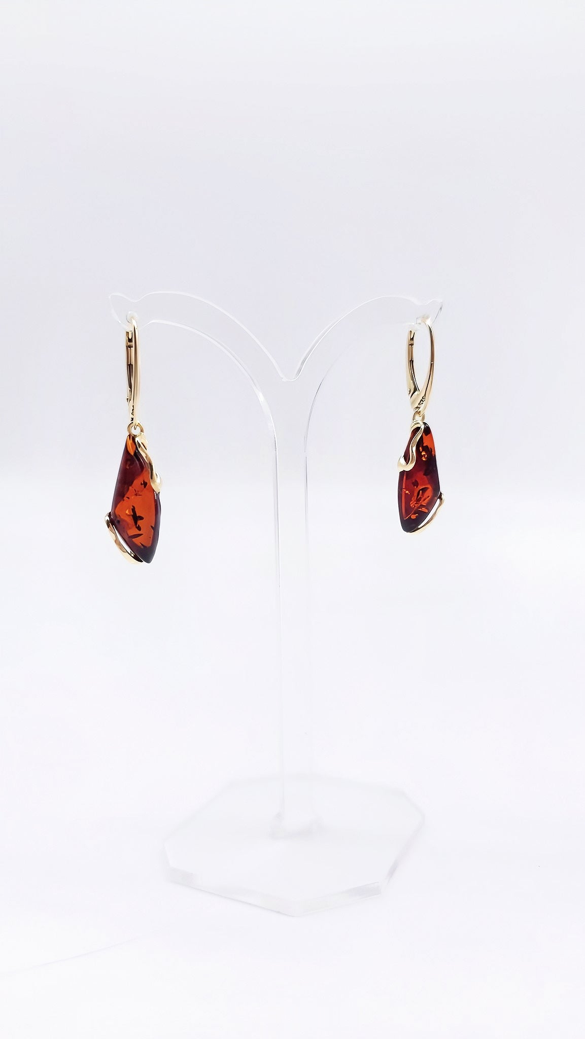 These elegant amber earrings with gold-plated details combine natural beauty with luxurious design. The warm shimmering genuine amber is framed by a stylish gold-plated 925 sterling silver setting that perfectly complements its natural luster. Measuring 4 cm long and 0.8 cm wide, these earrings are a stylish accessory for women who appreciate simple elegance. Ideal as a gift for special occasions such as birthdays, anniversaries, or elegant evening events.
