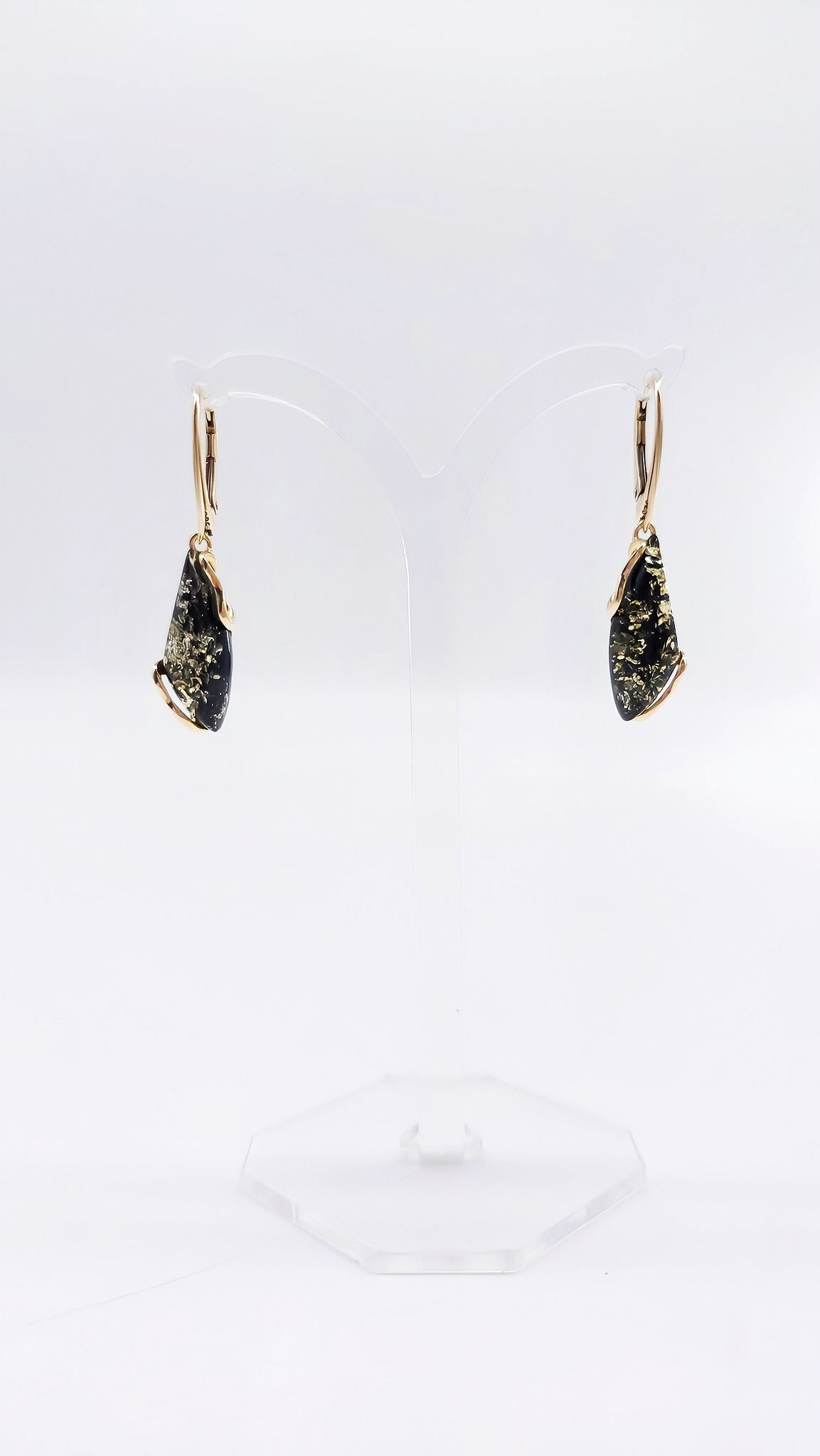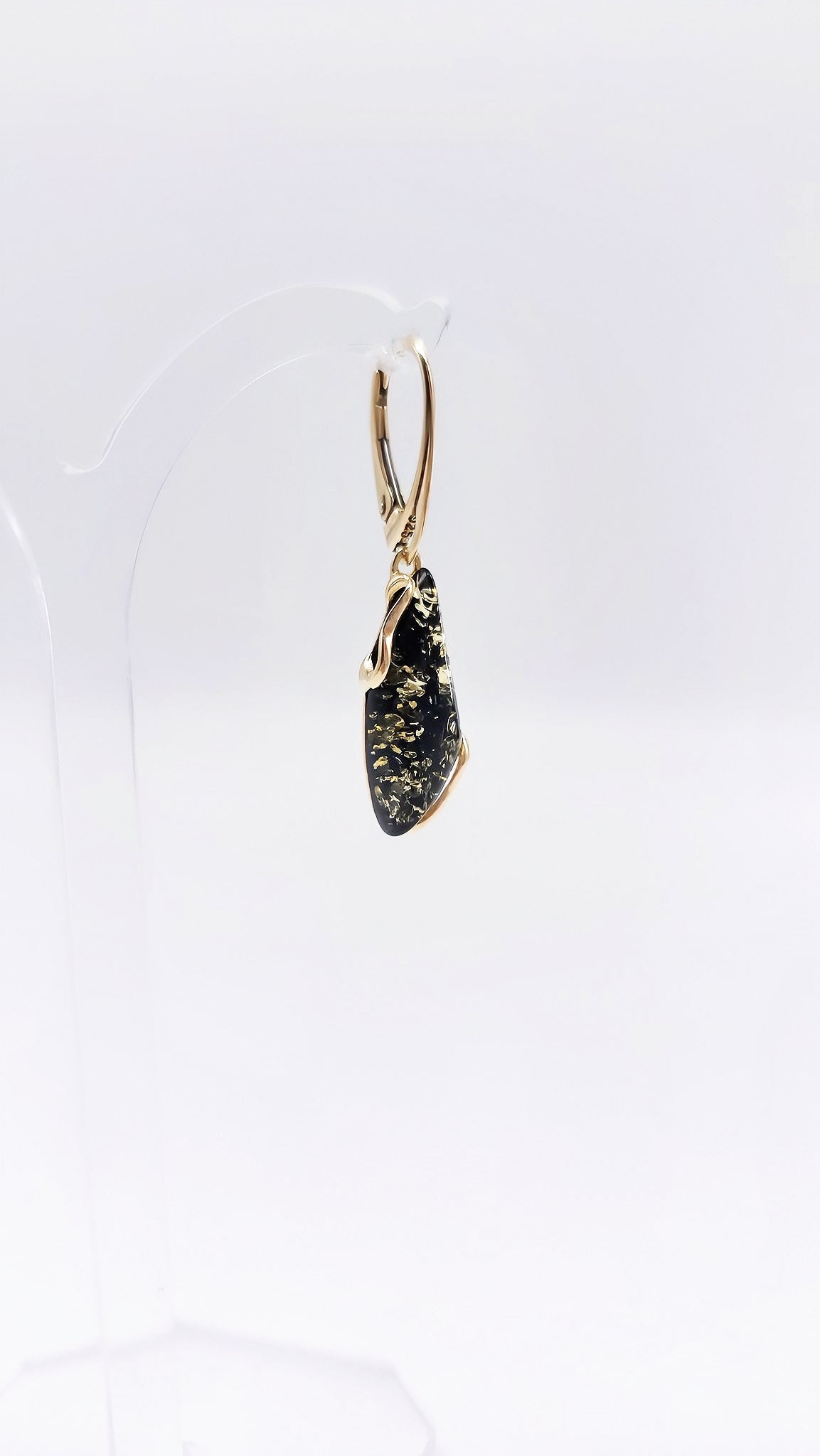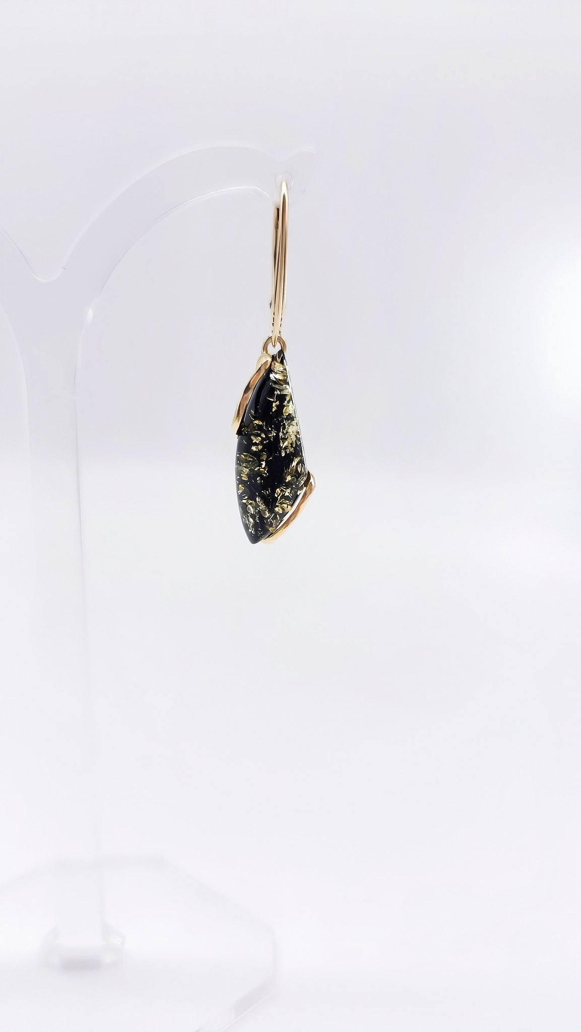 These elegant amber earrings with gold-plated details combine natural beauty with luxurious design. The warm shimmering genuine amber is framed by a stylish gold-plated 925 sterling silver setting that perfectly complements its natural luster. Measuring 4 cm long and 0.8 cm wide, these earrings are a stylish accessory for women who appreciate simple elegance. Ideal as a gift for special occasions such as birthdays, anniversaries, or elegant evening events.
