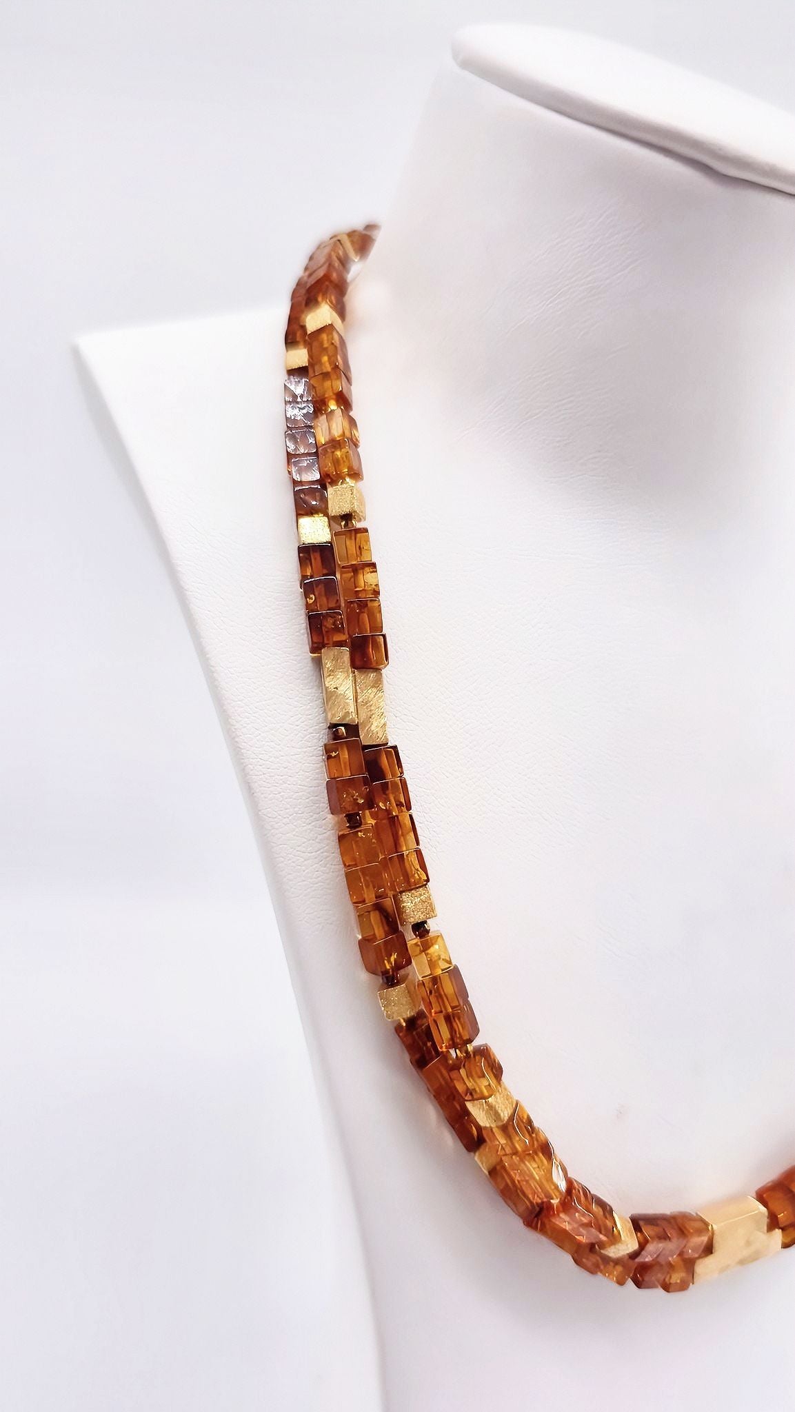 This elegant necklace combines genuine amber cubes with gold-plated 925 sterling silver to create an exceptional piece of jewelry. The natural amber stones shimmer in warm honey tones and add stylish elegance to any outfit. Thanks to the practical lobster clasp, the length can be individually adjusted (42 cm + 6 cm extension), ensuring the necklace fits perfectly to every wearer.