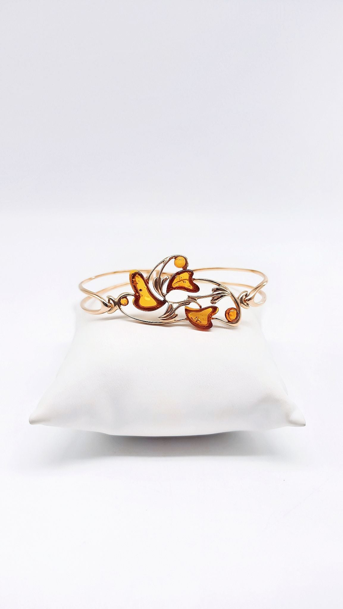 This elegant bracelet combines timeless elegance with natural beauty. Crafted from gold-plated 925 sterling silver, it is adorned with finely crafted amber elements. The warm honey tones of genuine amber give the bracelet a special radiance. With a circumference of 18 cm and a width of 2.5 cm, it's perfect for stylish looks.