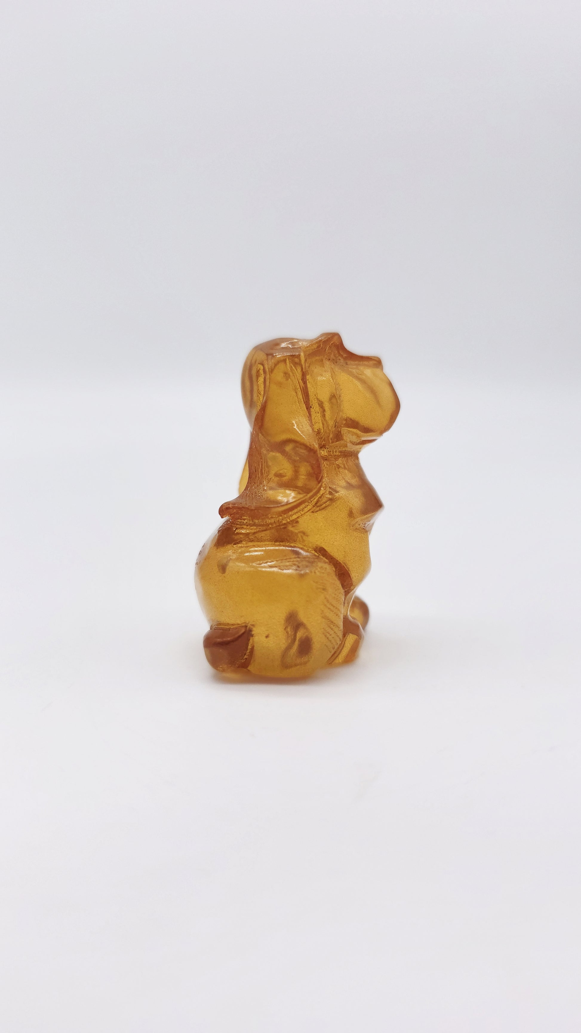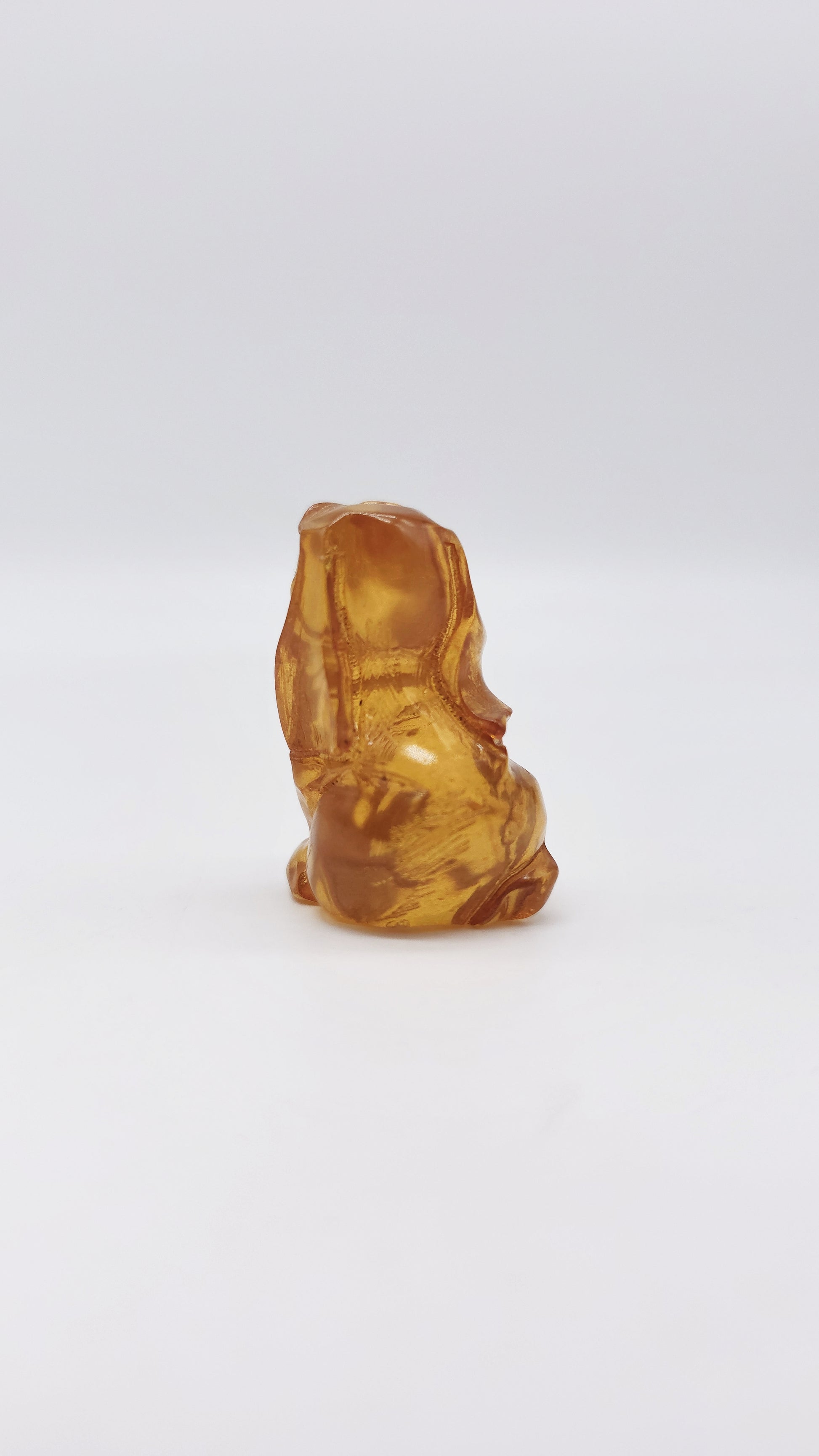This handcrafted amber figurine in the shape of a rabbit is an artfully designed unique piece made from genuine Baltic amber . Measuring 3.5 cm x 2.5 cm x 2 cm and with a unique natural amber color, the rabbit symbolizes fertility, prosperity, and good luck . In many cultures, the rabbit is a symbol of speed, adaptability, and harmony , which is why this figurine is a meaningful talisman for success, love, and family happiness . This elegant amber animal figurine is ideal as a gift for special people, as a protective amulet, or as a decorative collector's item . Order your hand-carved amber figurine of a rabbit now and bring home a meaningful symbol of good luck.