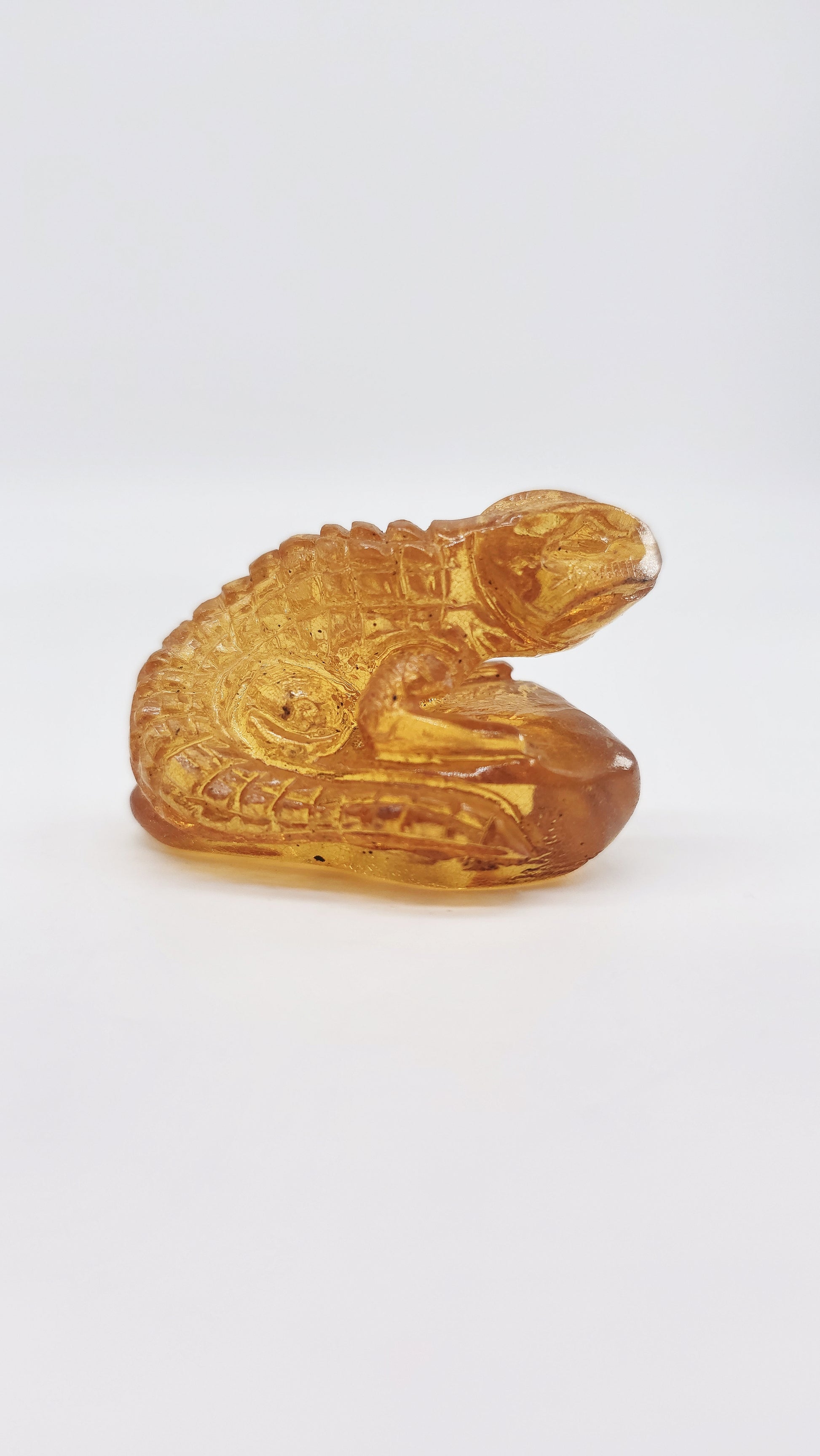 This handcrafted amber figurine in the shape of a lizard is a unique work of art made from genuine Baltic amber . Measuring 3 cm x 4.5 cm x 2.5 cm and featuring a beautiful natural amber color, the lizard symbolizes adaptability, renewal, and wisdom . In many cultures, it stands for regeneration, protection, and intuitive perception , which is why this figurine is a meaningful talisman for people undergoing change or seeking new energy . This precious amber animal figurine is perfect as an amulet, spiritual protection, or decorative collectible . Order your hand-carved amber lizard figurine now and bring home a powerful symbol of flexibility and renewal.