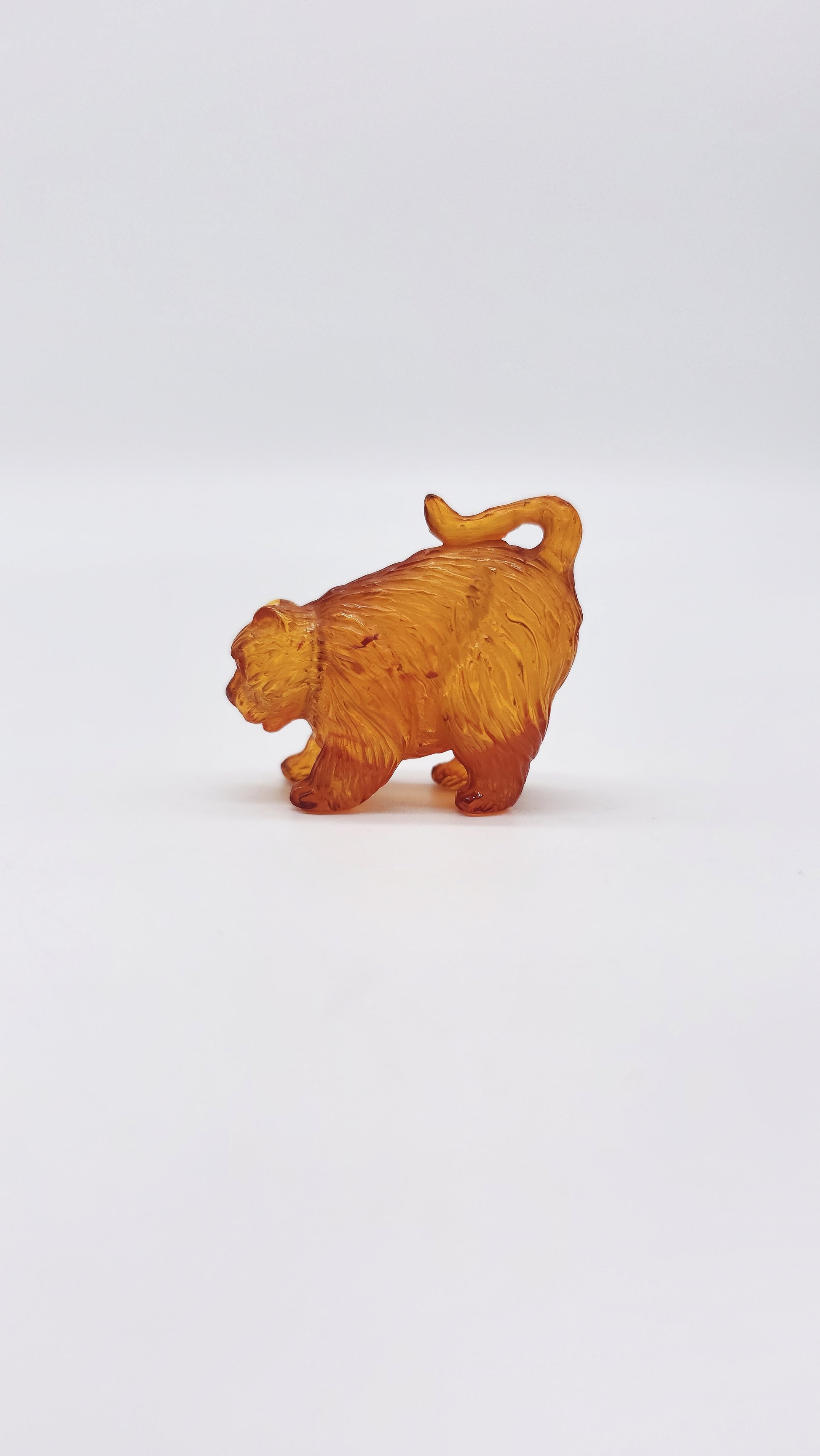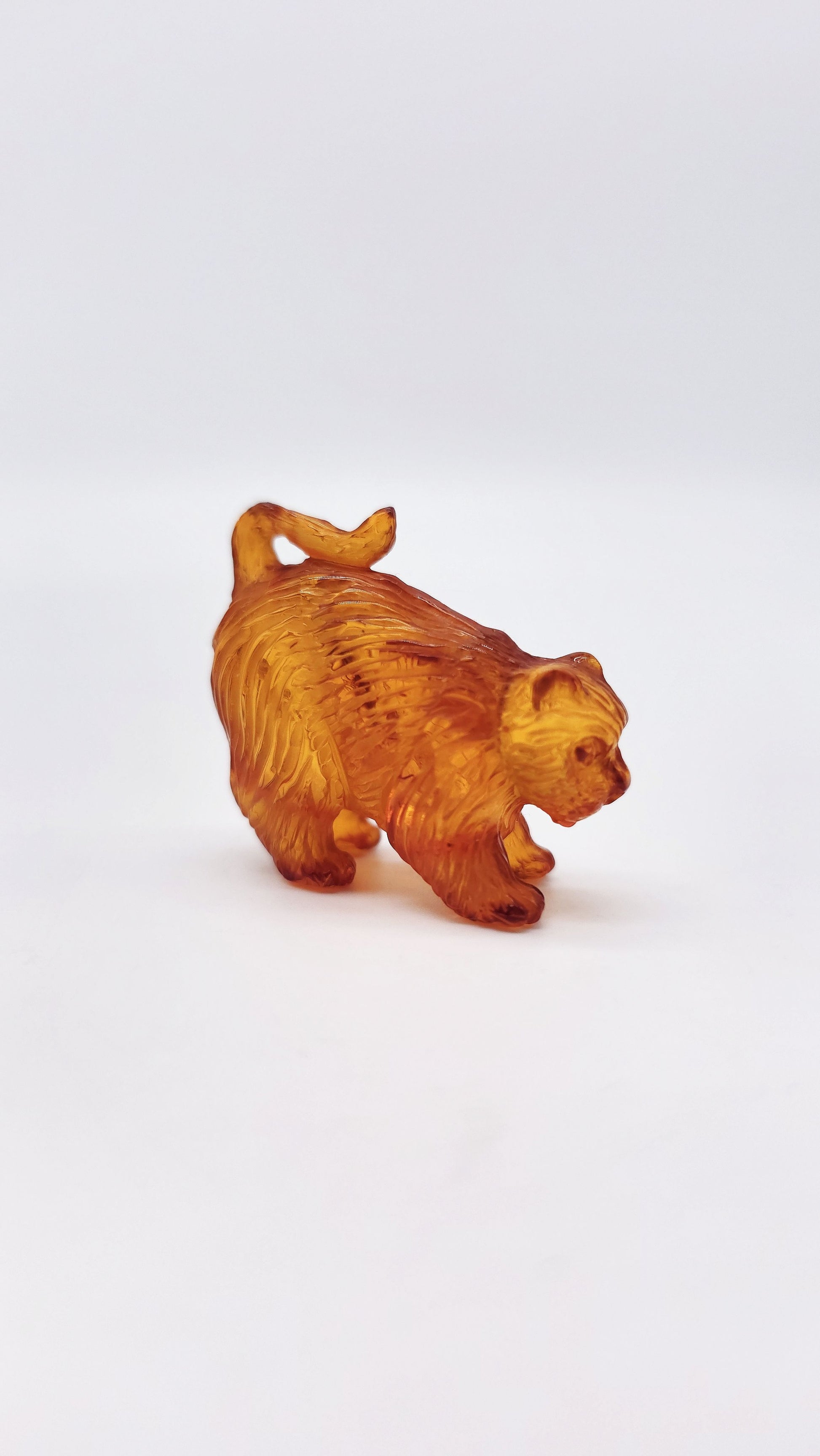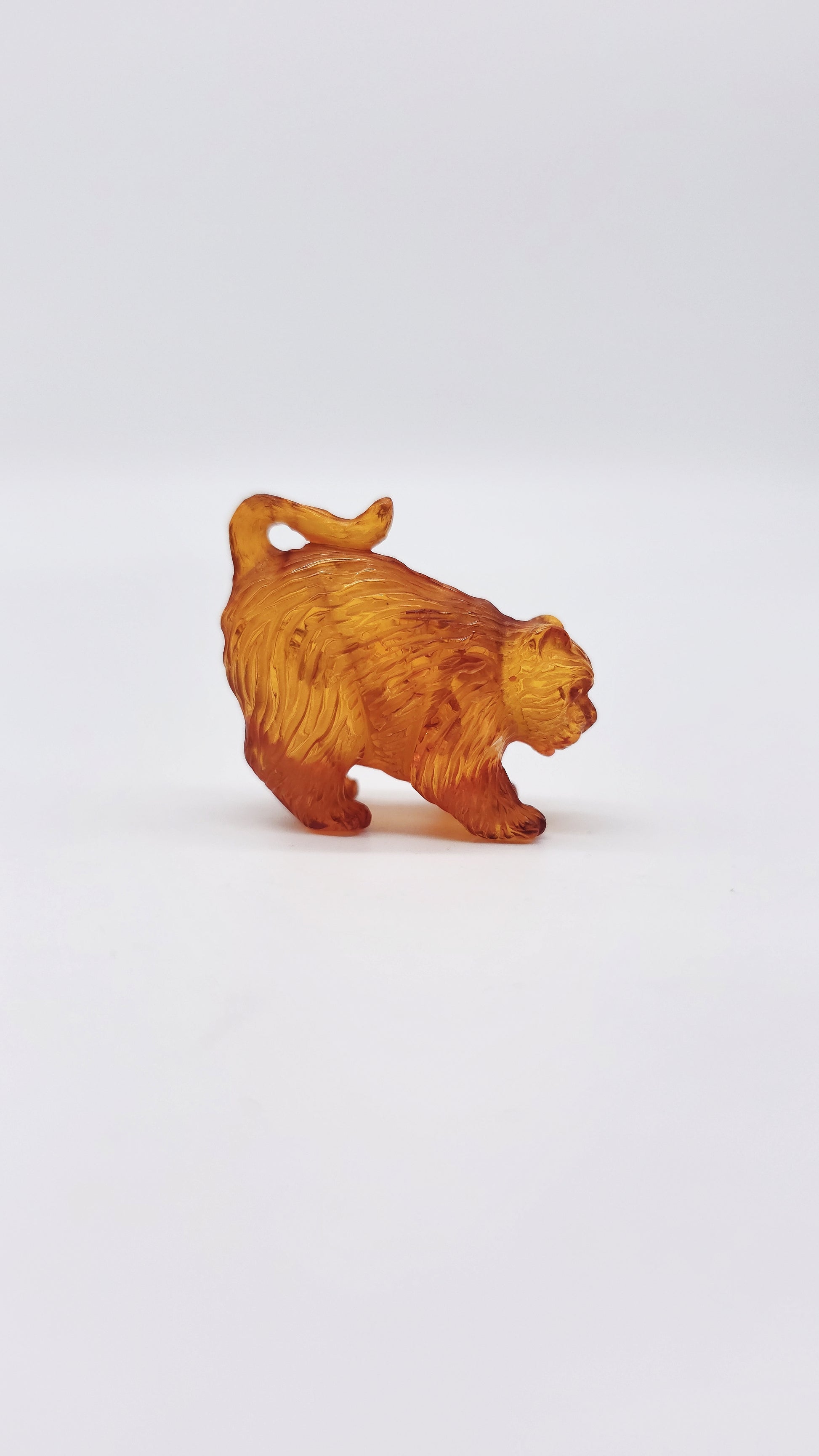 This handcrafted amber figurine in the shape of a cat is a unique work of art made from genuine Baltic amber . Measuring 2.5 cm x 3.5 cm x 1.8 cm and with a warm natural amber color, the cat symbolizes freedom, independence, protection and intuition . In many cultures, cats are attributed mystical power and the ability to ward off negative energies , which is why this figurine is a meaningful talisman for protection and harmony in the home . This noble amber animal figurine is perfect as a gift for cat lovers, as a spiritual amulet or as a decorative collectible . Order your hand-carved amber cat figurine now and bring home a meaningful symbol of good luck.