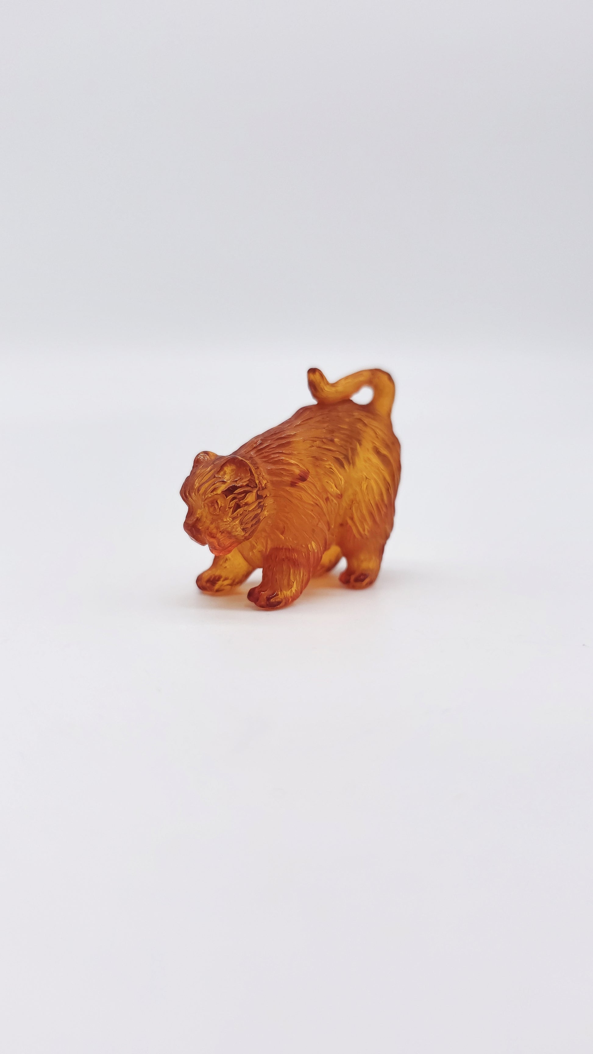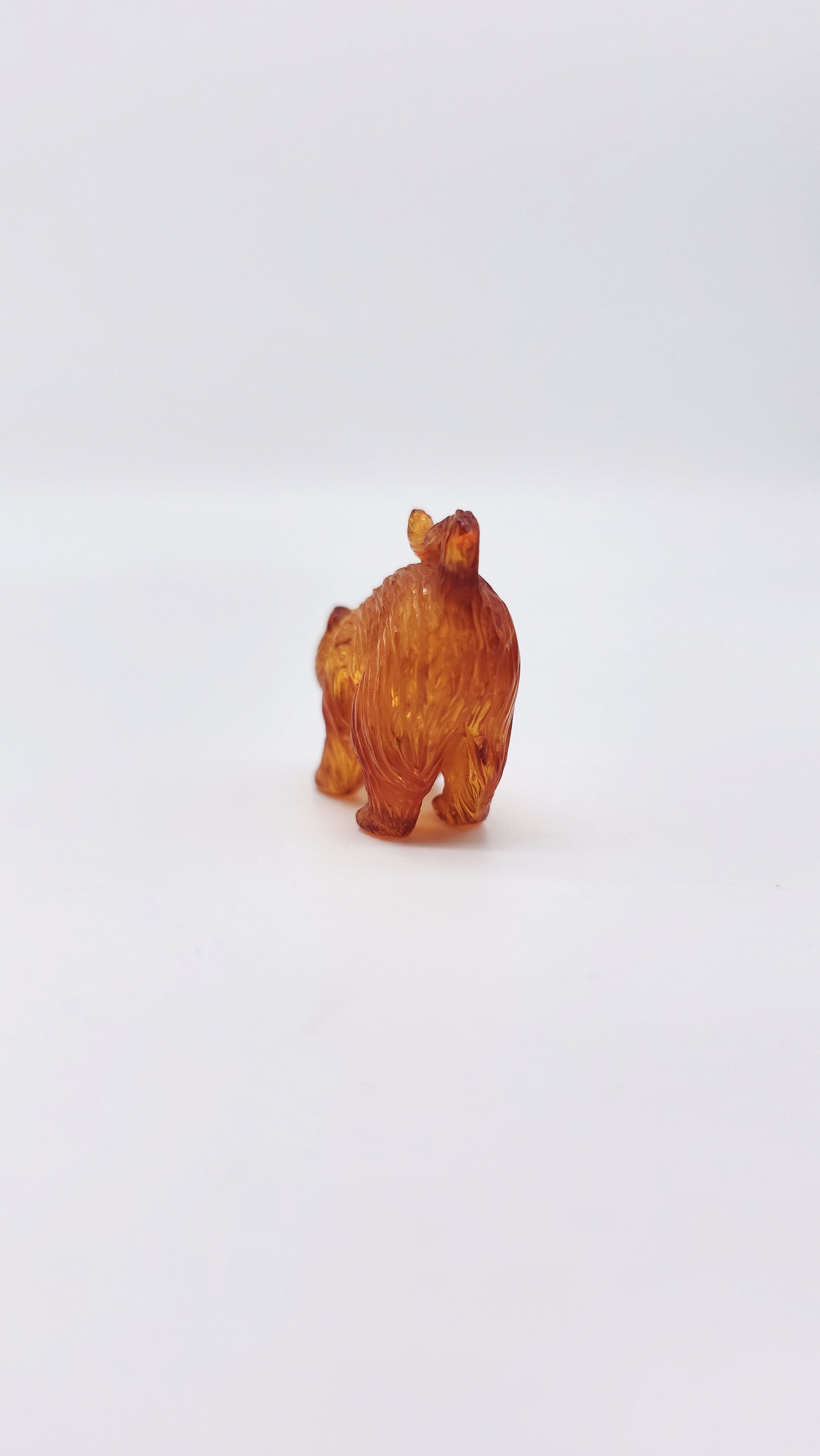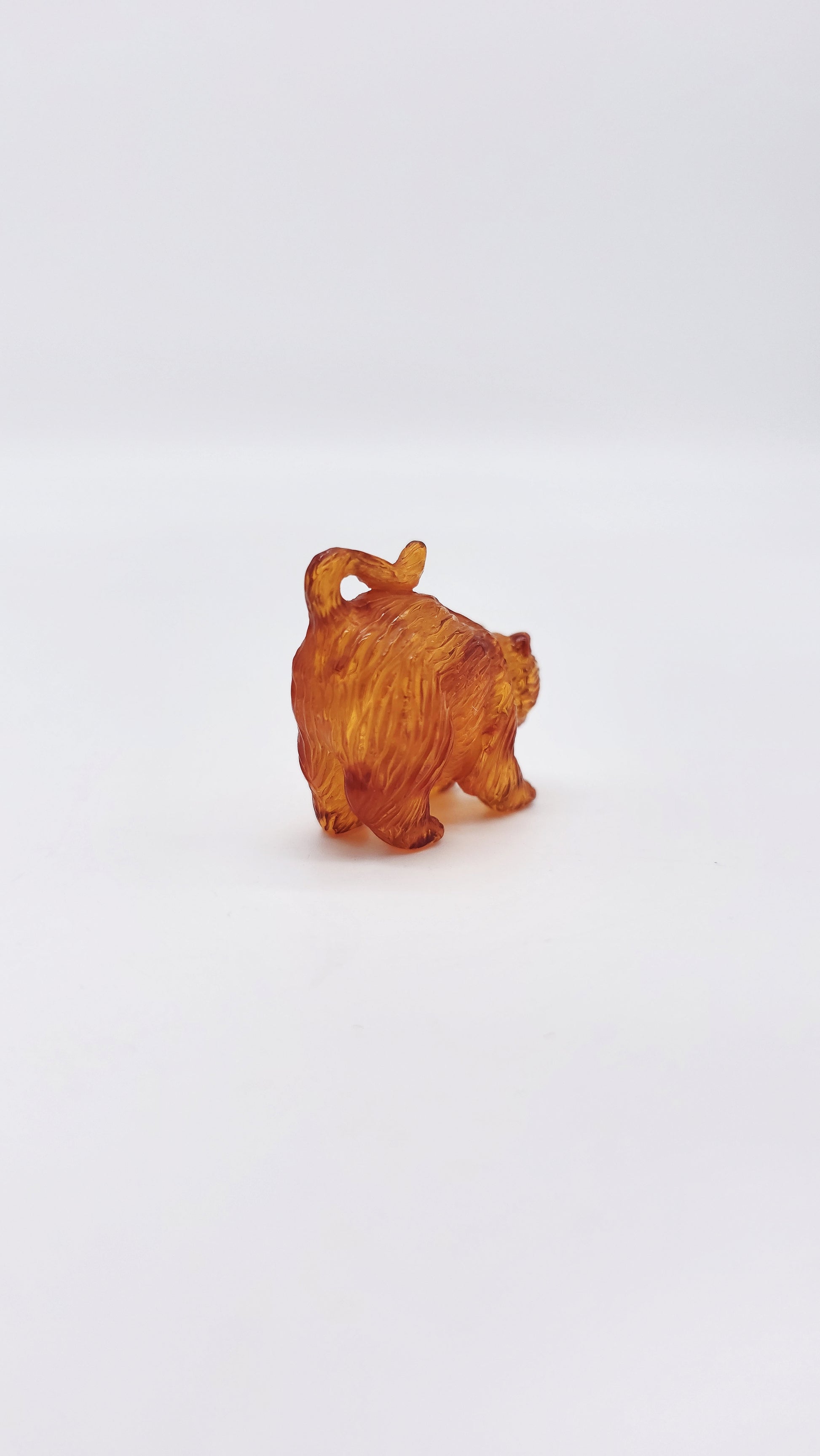 This handcrafted amber figurine in the shape of a cat is a unique work of art made from genuine Baltic amber . Measuring 2.5 cm x 3.5 cm x 1.8 cm and with a warm natural amber color, the cat symbolizes freedom, independence, protection and intuition . In many cultures, cats are attributed mystical power and the ability to ward off negative energies , which is why this figurine is a meaningful talisman for protection and harmony in the home . This noble amber animal figurine is perfect as a gift for cat lovers, as a spiritual amulet or as a decorative collectible . Order your hand-carved amber cat figurine now and bring home a meaningful symbol of good luck.