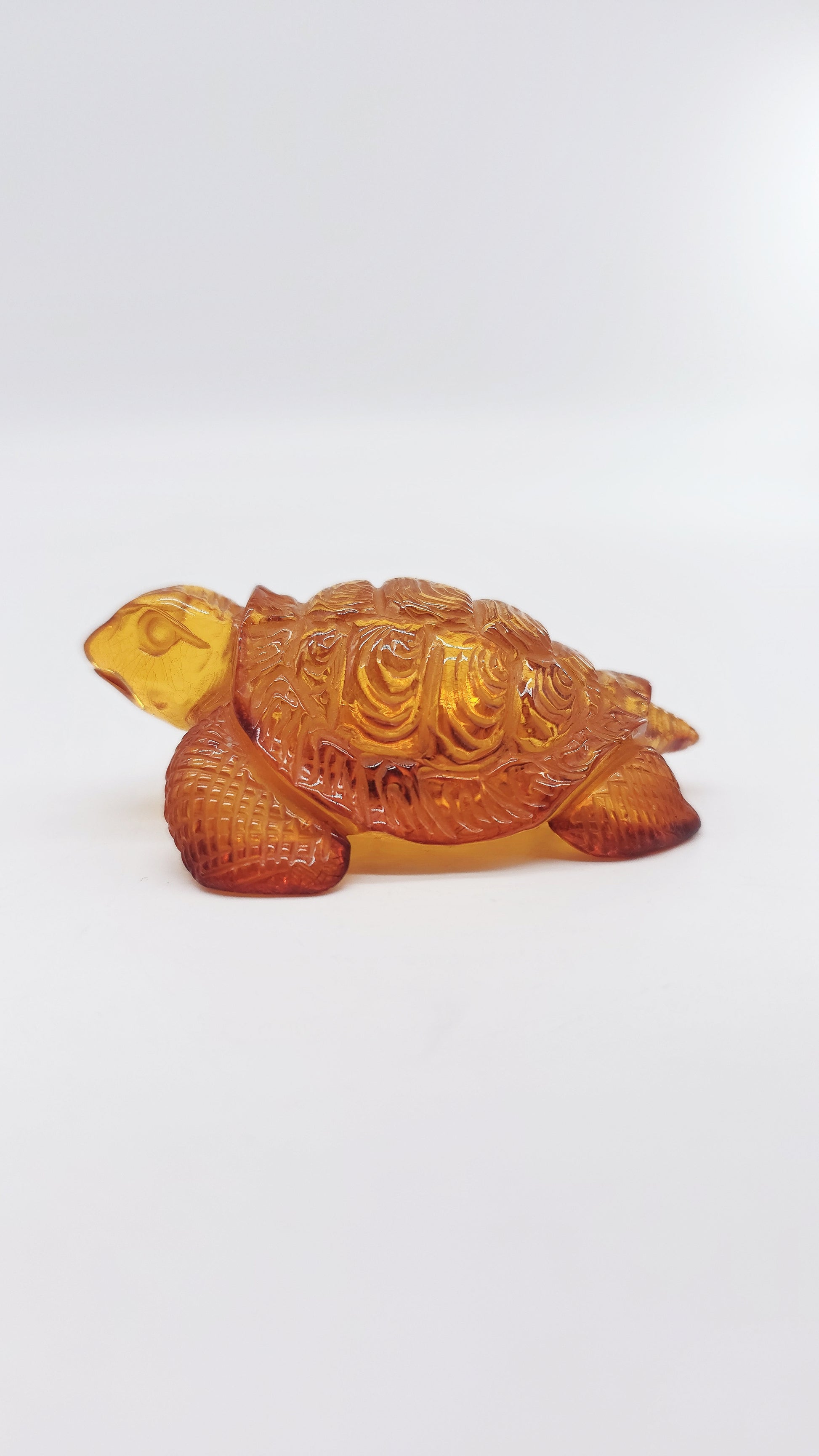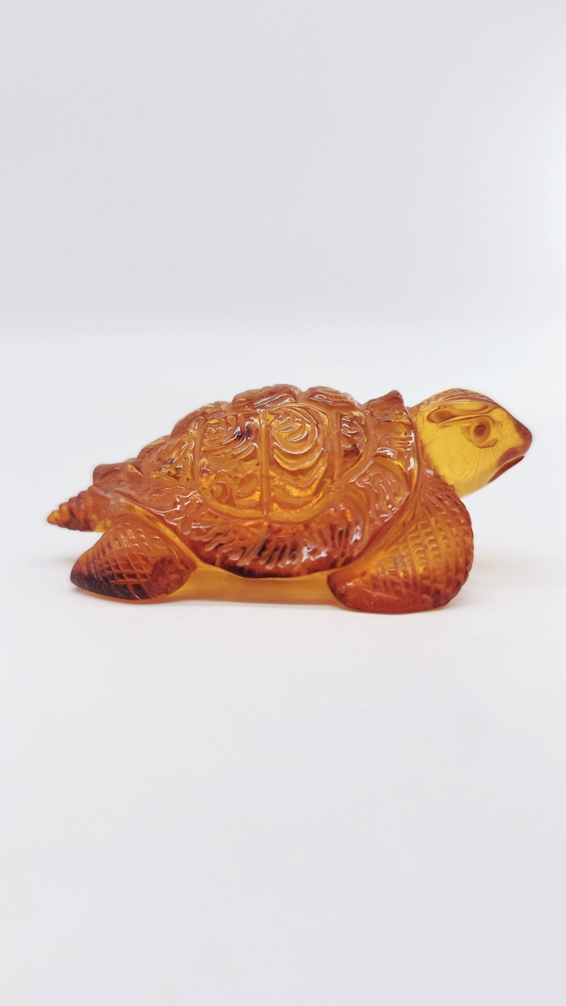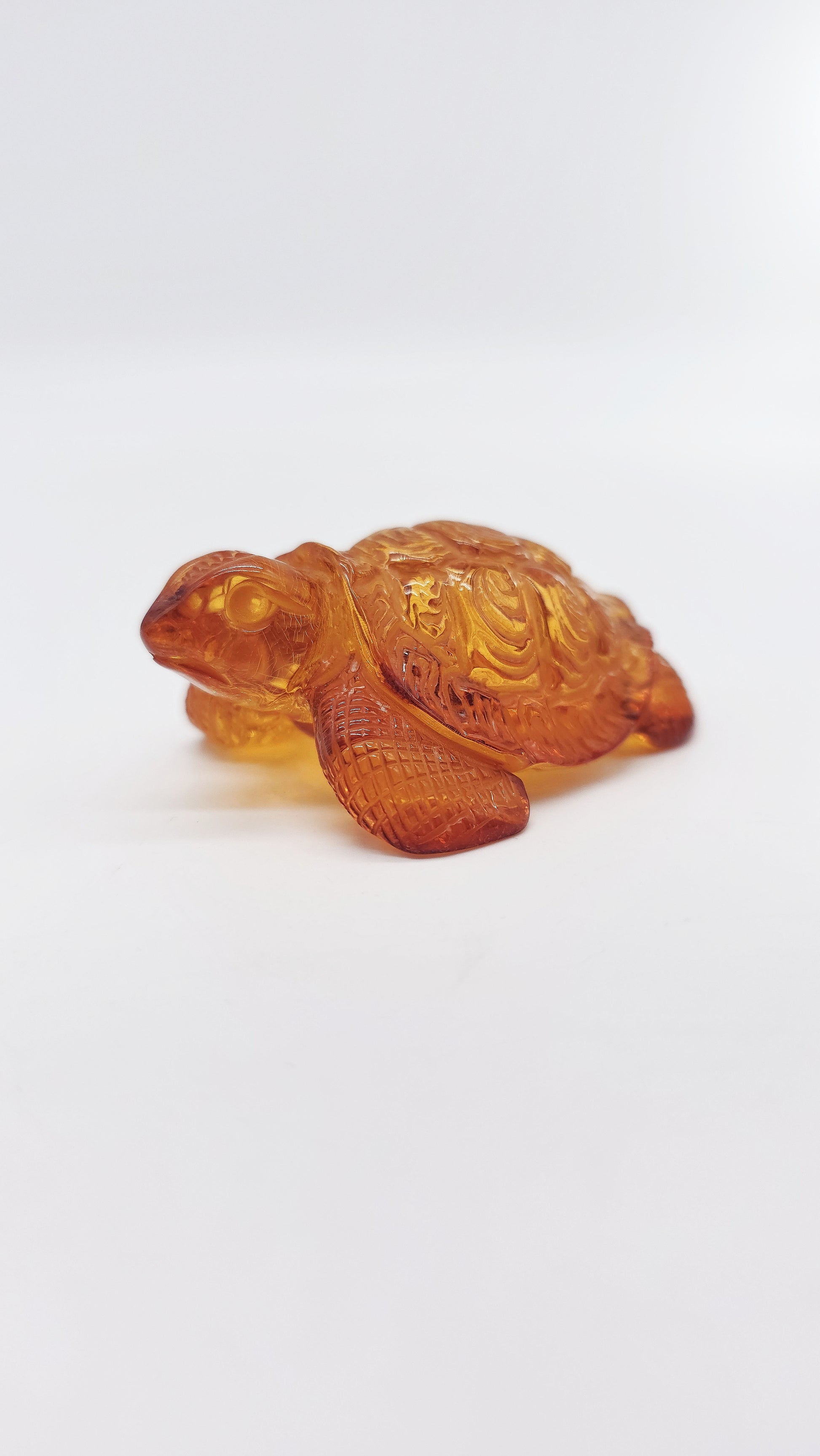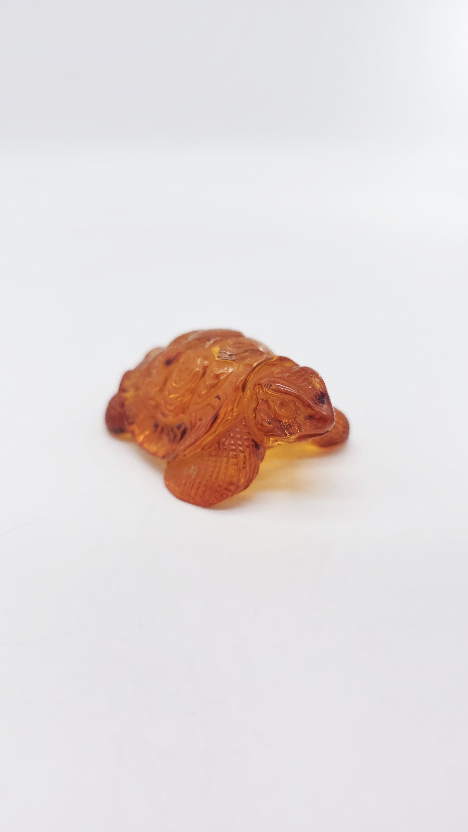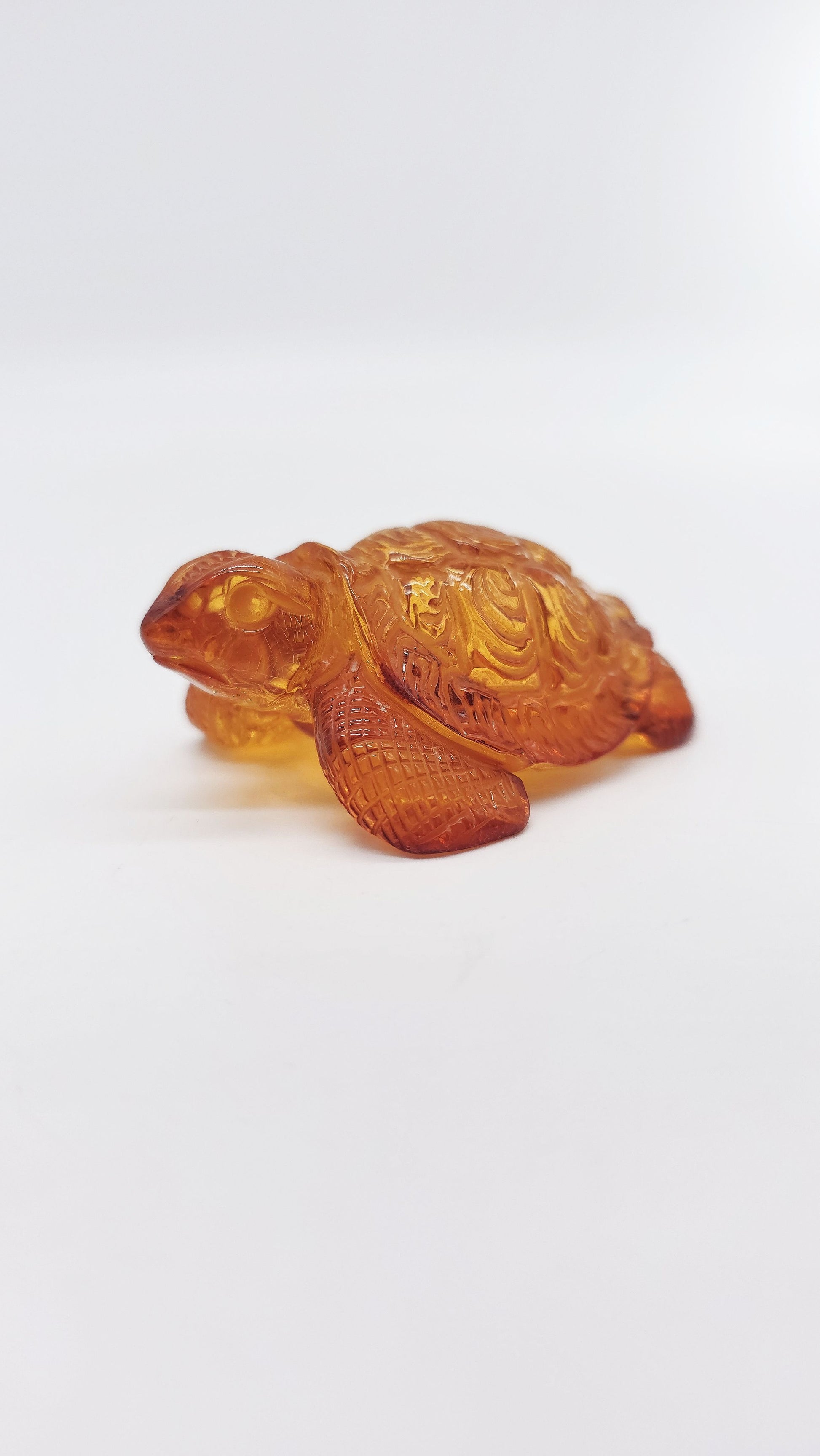 This handcrafted amber figurine in the shape of a turtle is a beautiful work of art made from genuine Baltic amber . Measuring 7 cm x 4.5 cm x 2.5 cm and with a natural warm amber color, the turtle symbolizes longevity, wisdom and protection . In many cultures it stands for patience, stability and constancy , while its shell is a symbol of security and resilience . This noble amber animal figurine is a meaningful talisman for people who strive for harmony, balance and success . Perfect as a spiritual amulet, stylish decoration or unique collectible , this figurine brings profound symbolism into your home. Order your handcarved amber figurine turtle now and bring home a meaningful symbol of good luck.