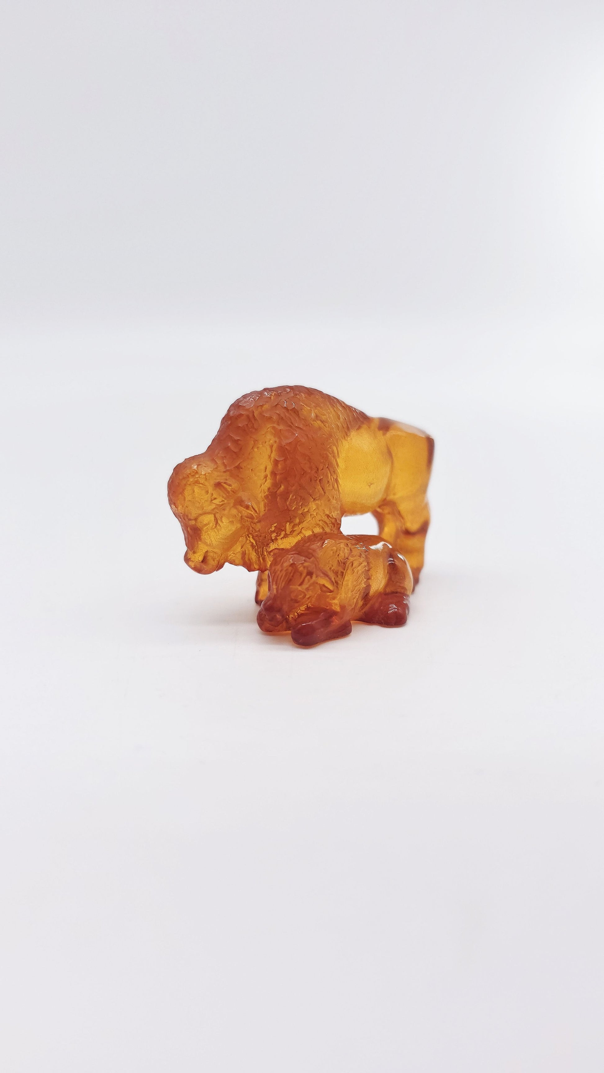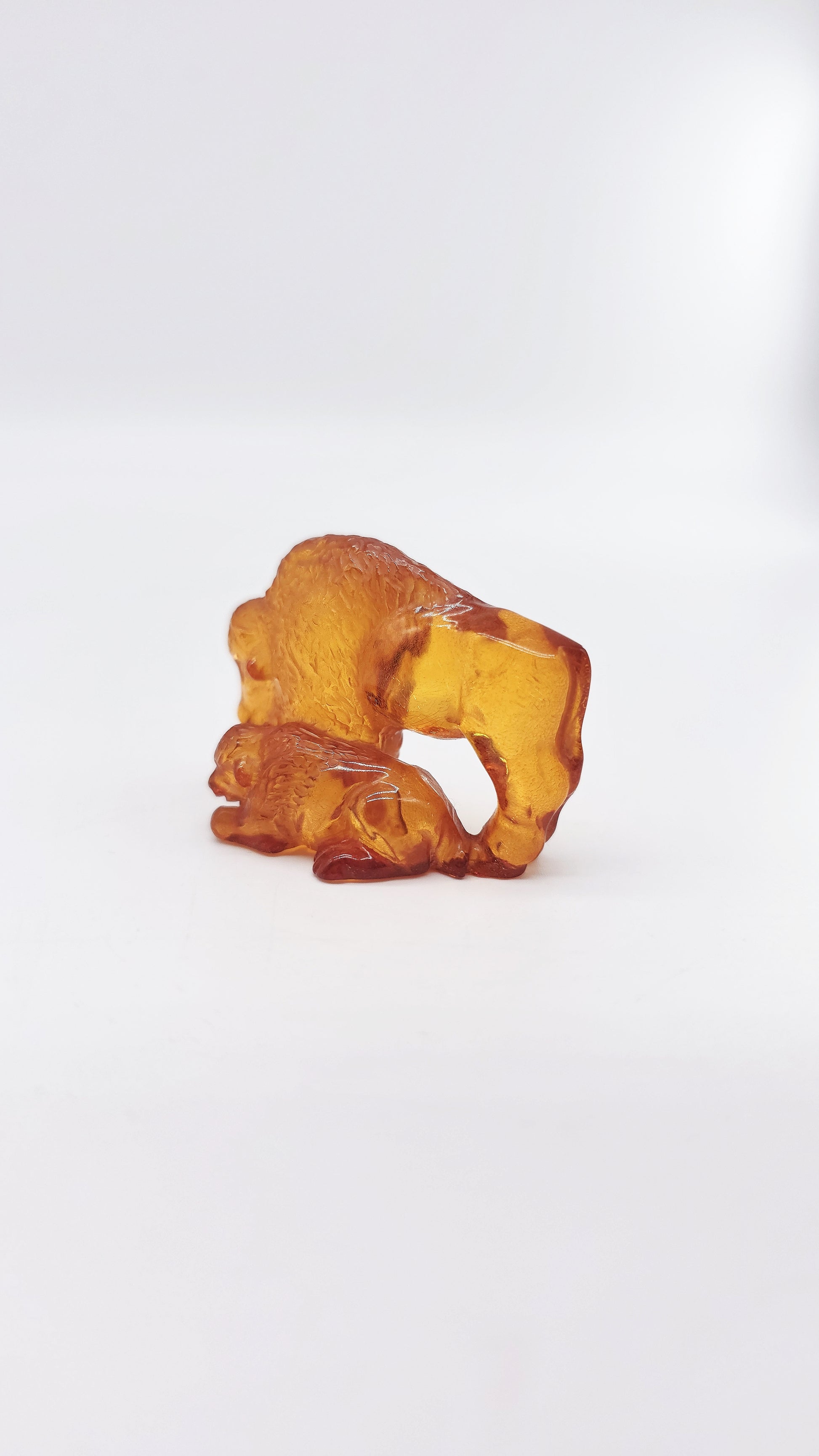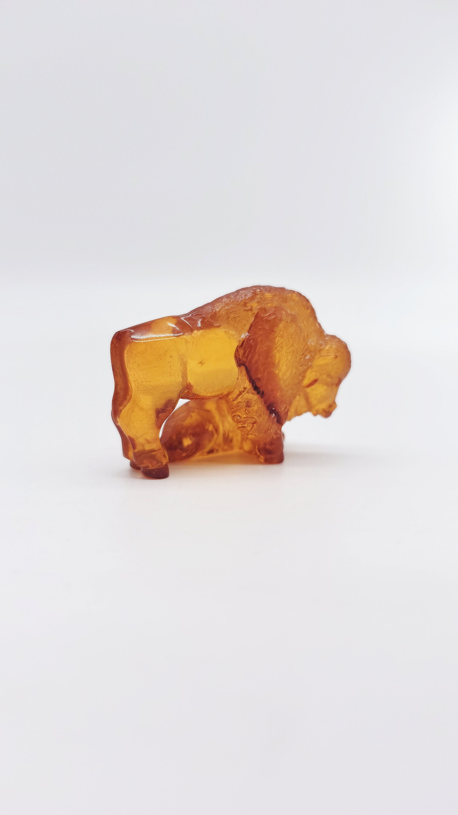 This detailed amber figurine featuring two bison – an adult and a calf – represents strength, protection, and family unity . Hand-carved from high-quality Baltic amber , it symbolizes resilience, prosperity, and a deep connection with nature . In many cultures, the bison is a symbol of perseverance, protection, and abundance . Measuring 4.5 cm x 2 cm x 3 cm, this figurine is perfect as a fine decoration, spiritual symbol, or special gift for nature lovers and family members .