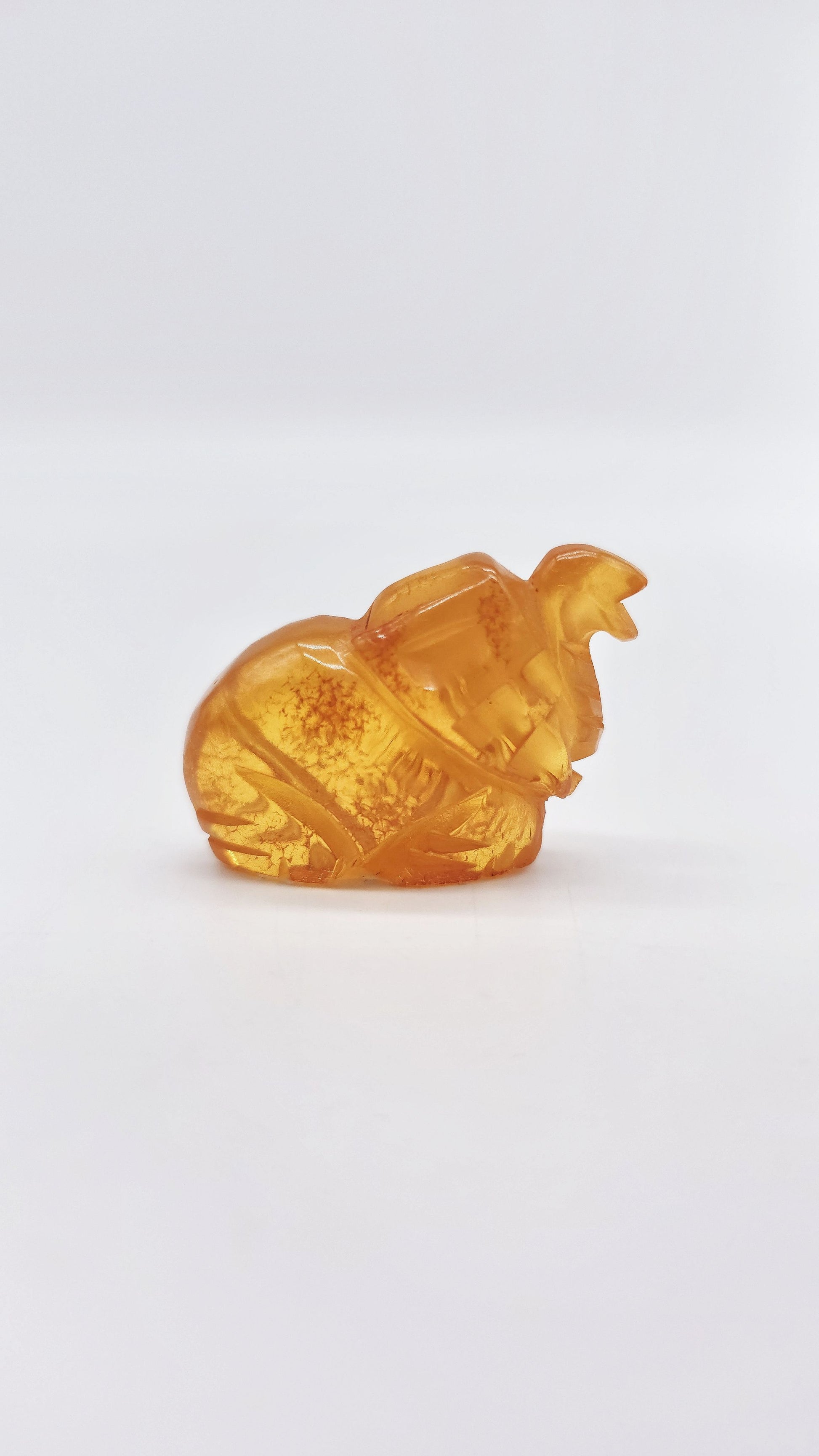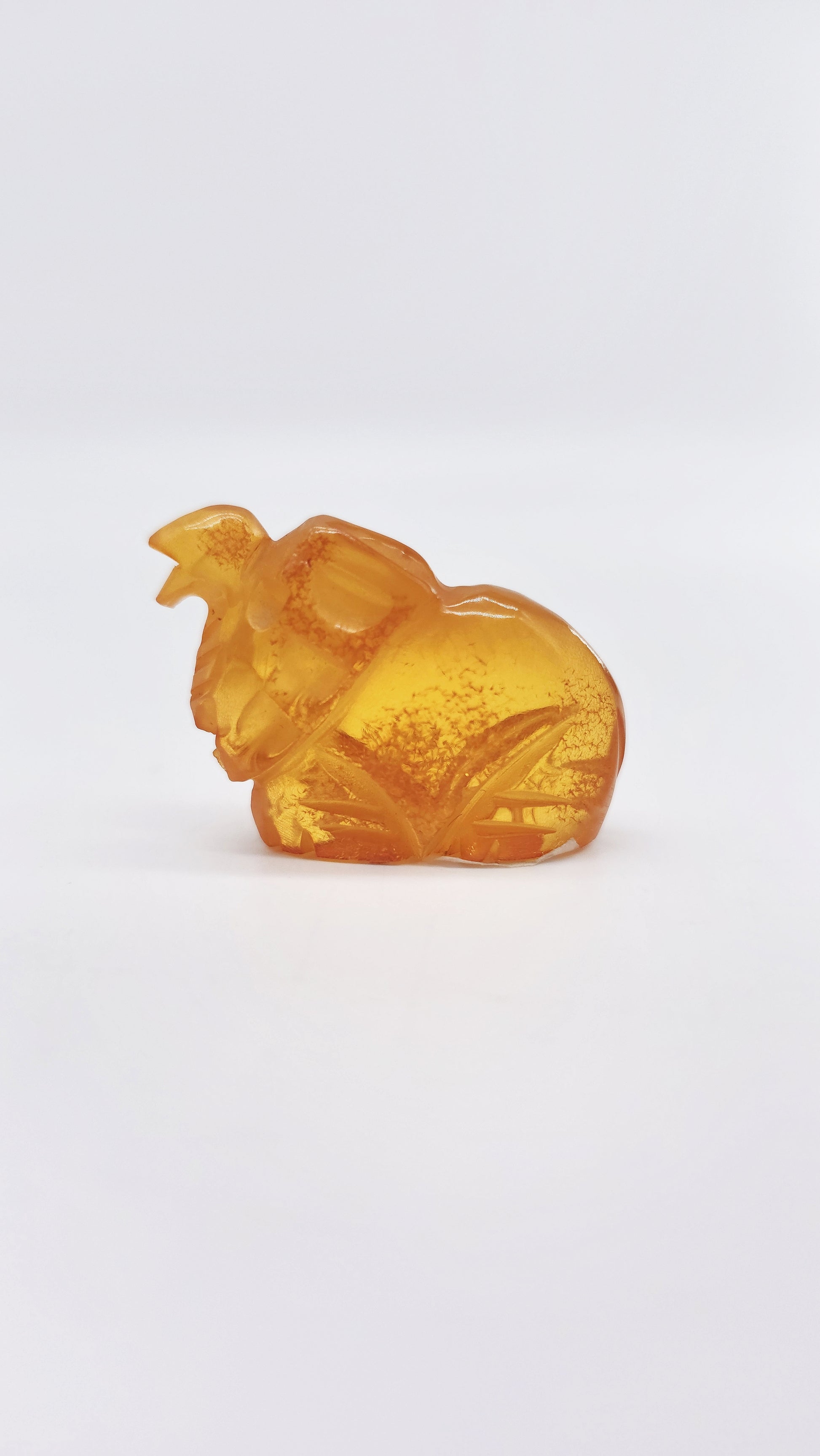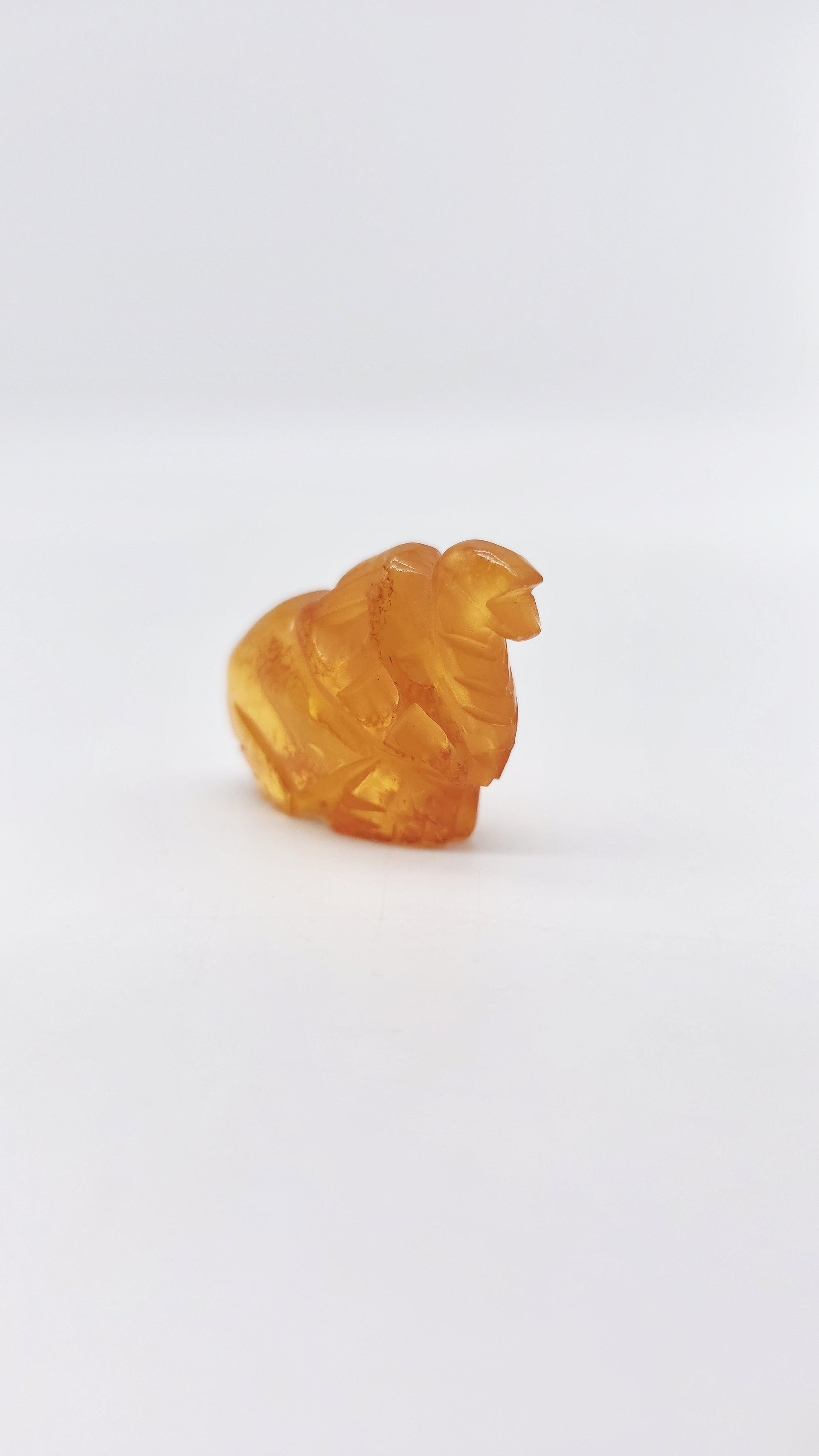 The warm amber color lends the figure a noble, natural aura. Measuring 4.5 cm x 1.5 cm x 2.5 cm, it's perfect as a lucky charm, home accessory, or special gift for collectors, lovers of spiritual art, or those seeking stability and protection in life.