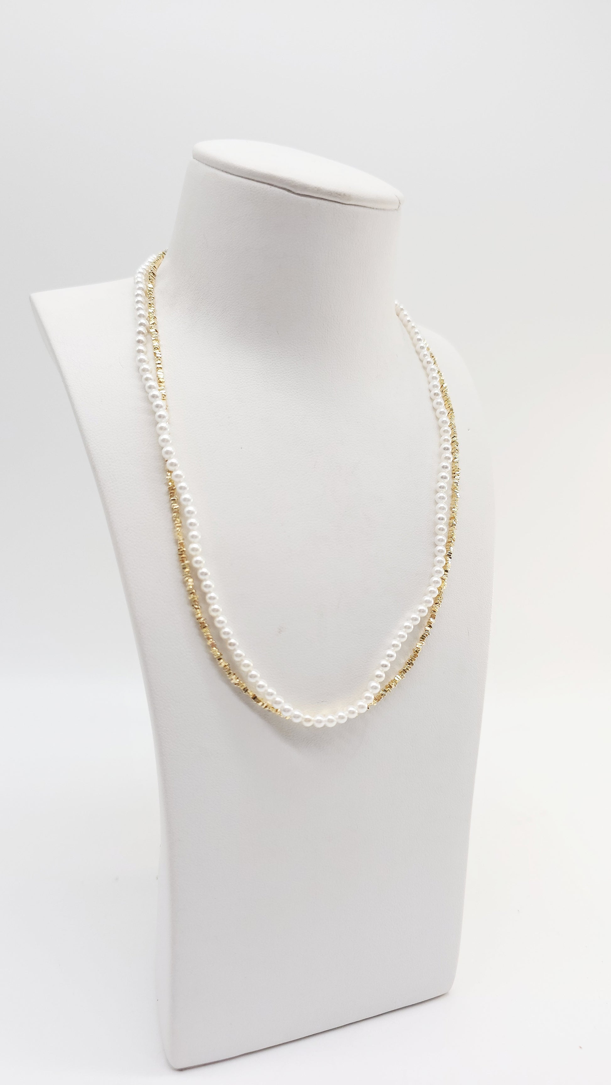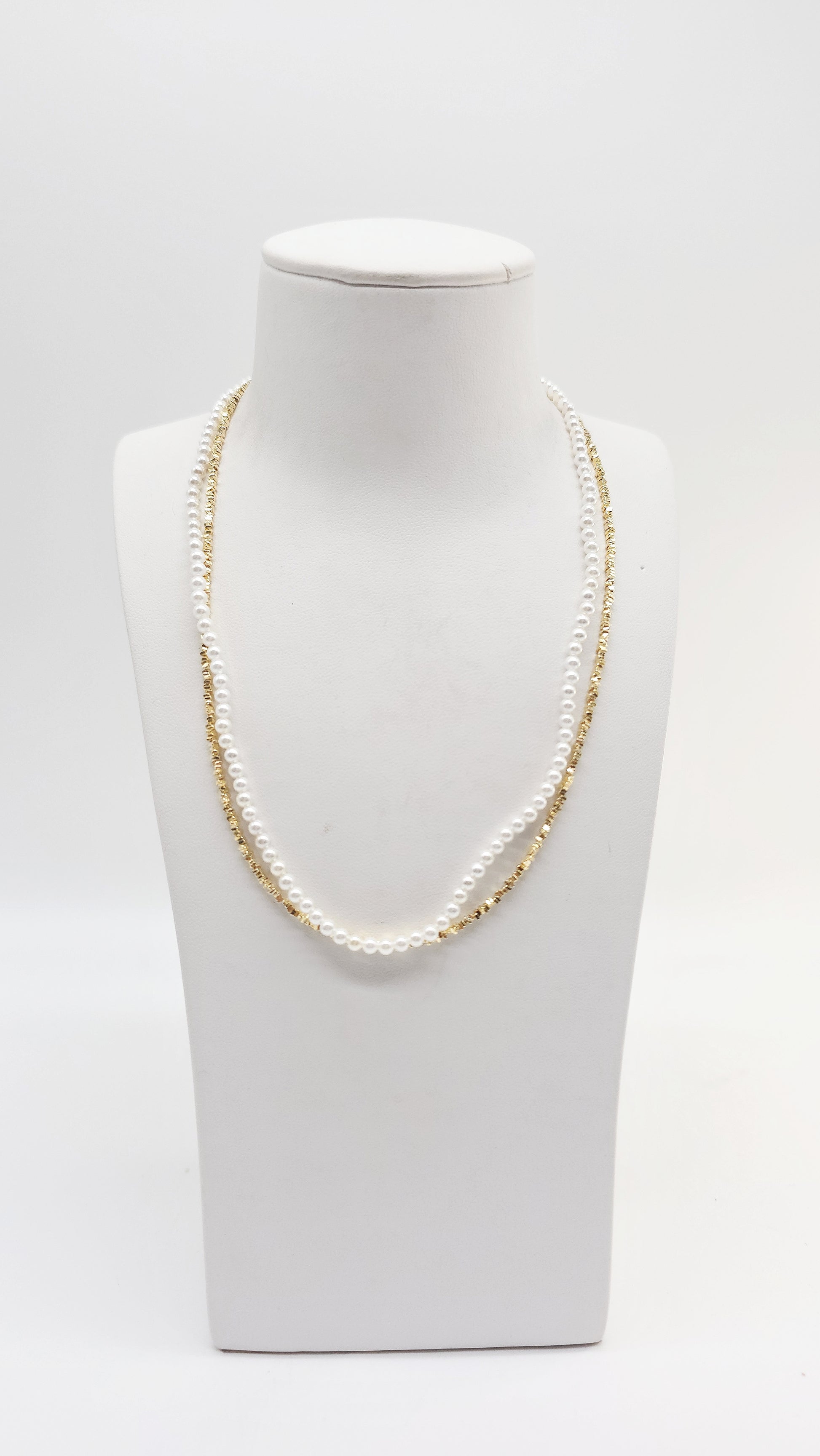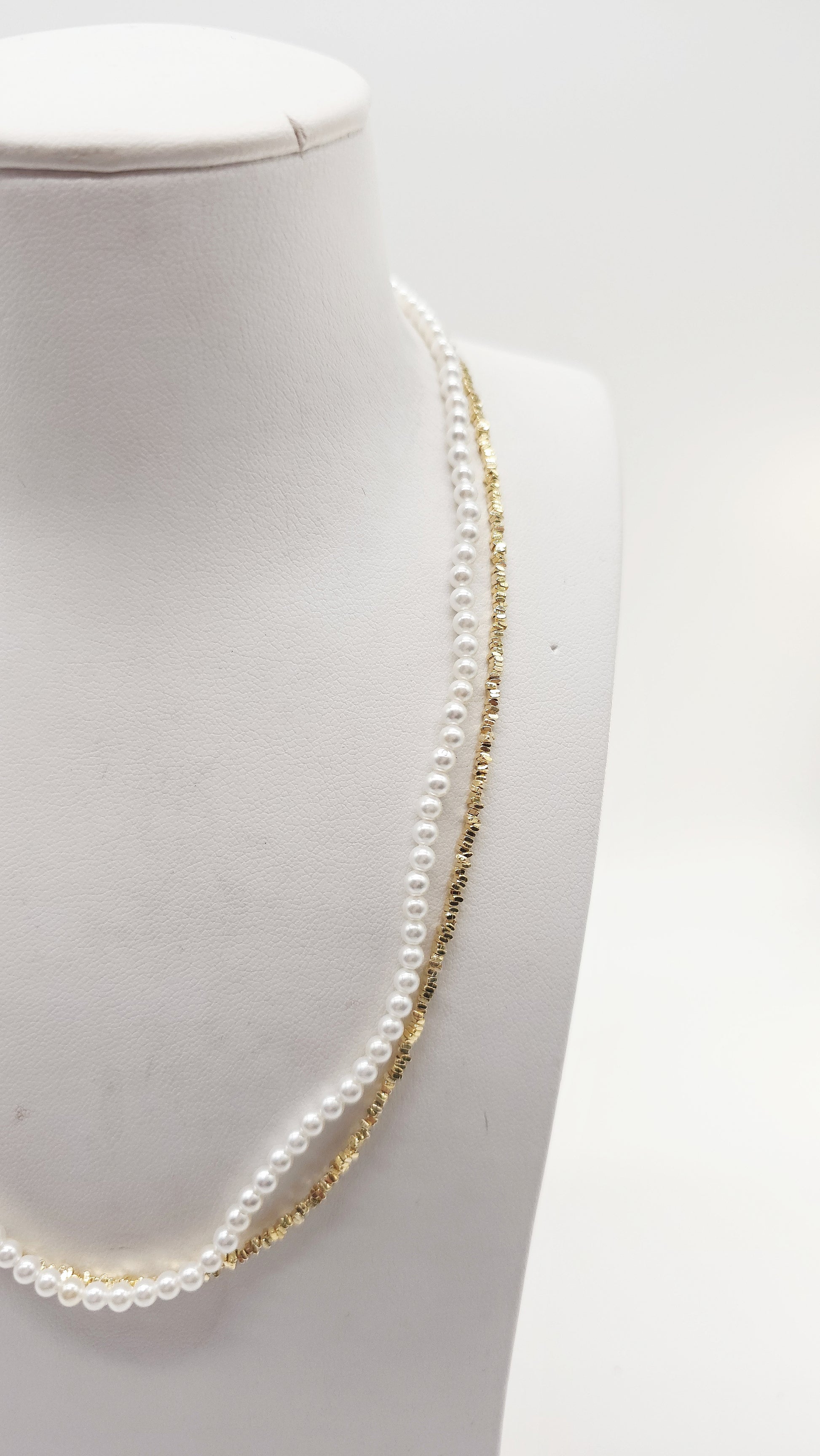 This high-quality gold-plated necklace made of 925 silver combines elegance and modern design. The double-row necklace combines delicate freshwater pearls with elegant gold-plated elements, creating a luxurious piece of jewelry for women. With a length of 42 cm + 3 cm extension, the necklace can be individually adjusted and goes perfectly with any outfit – whether for everyday wear or special occasions. Its stylish design makes it the perfect choice for jewelry lovers who appreciate fine gold jewelry with a touch of classic style. A wonderful gift for birthdays, anniversaries, or as an elegant everyday accessory!