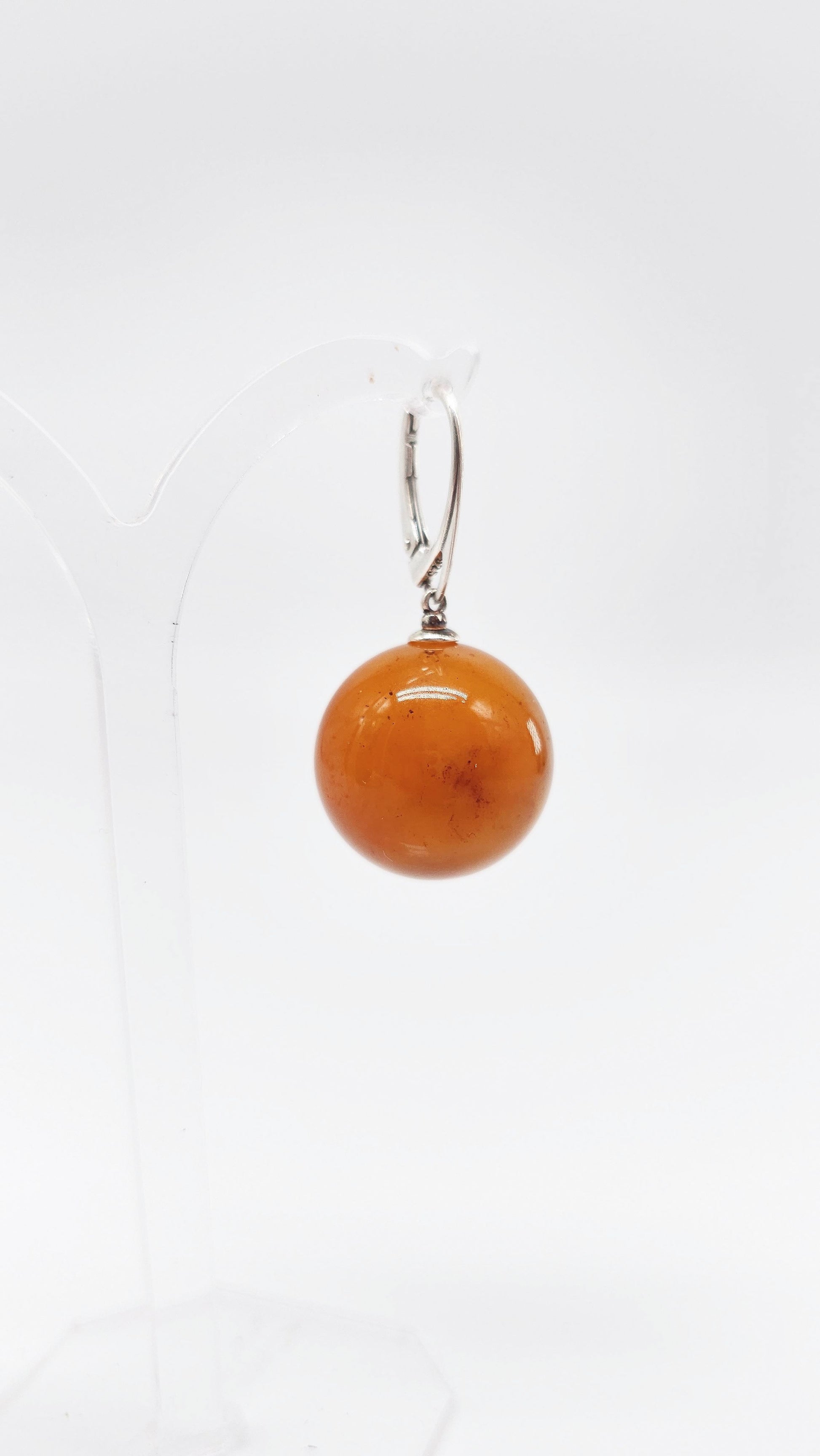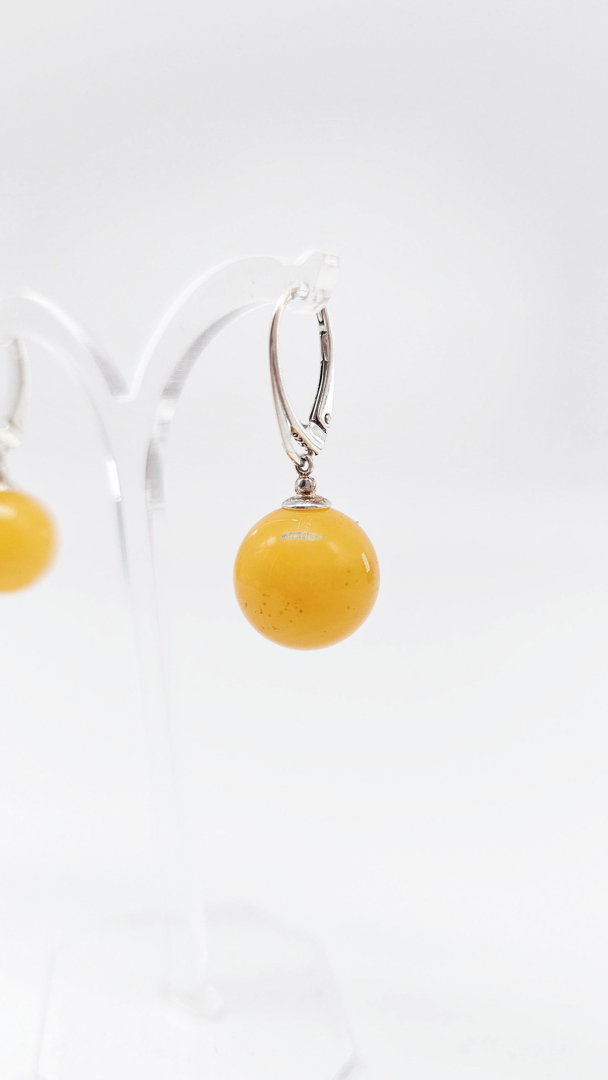 Amber ball earrings – 925 silver, 3 sizes available
