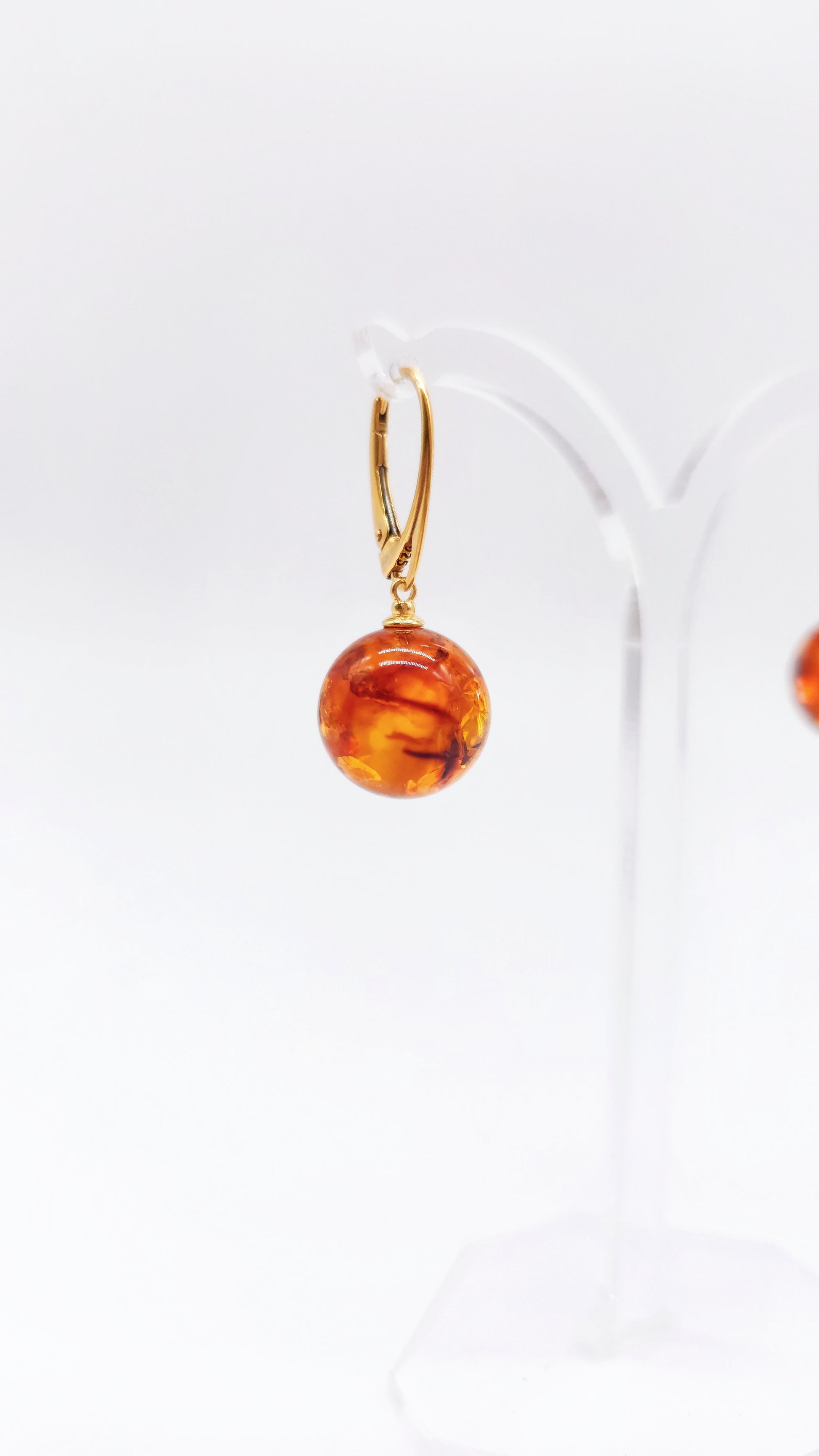 Natural amber earrings for women – gold-plated 24K 925 silver setting