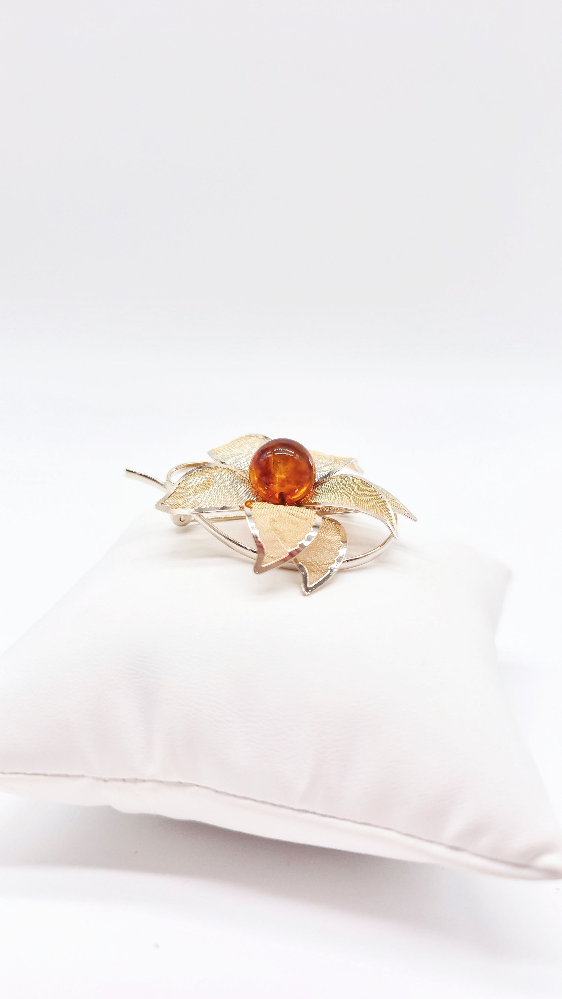 Add floral elegance to your jewelry collection with this beautiful amber flower-shaped brooch . Crafted from high-quality 925 sterling silver , exquisitely plated with 24-karat gold, this brooch combines timeless beauty with exclusive craftsmanship.