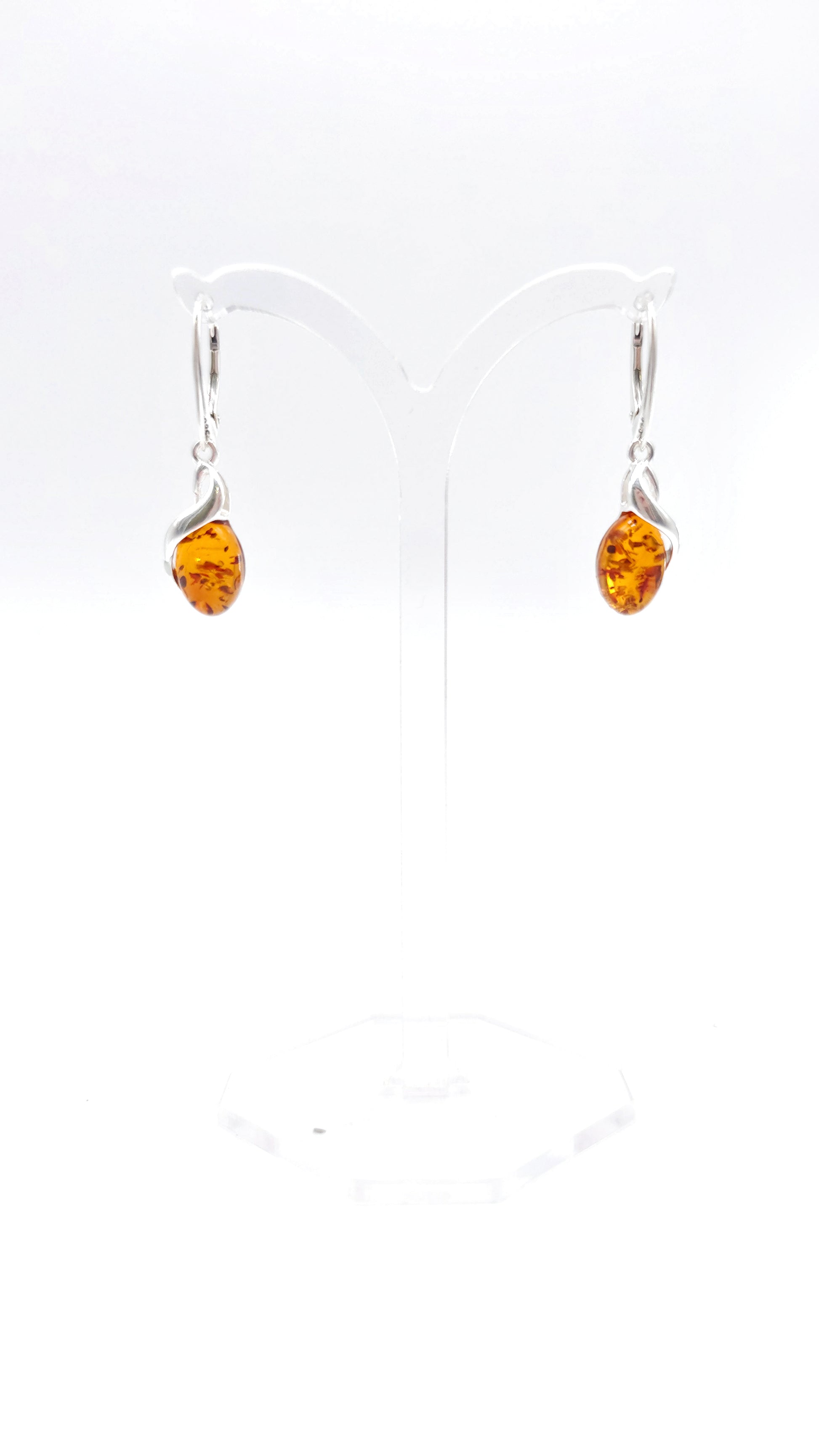 Women's earrings with amber in silver setting