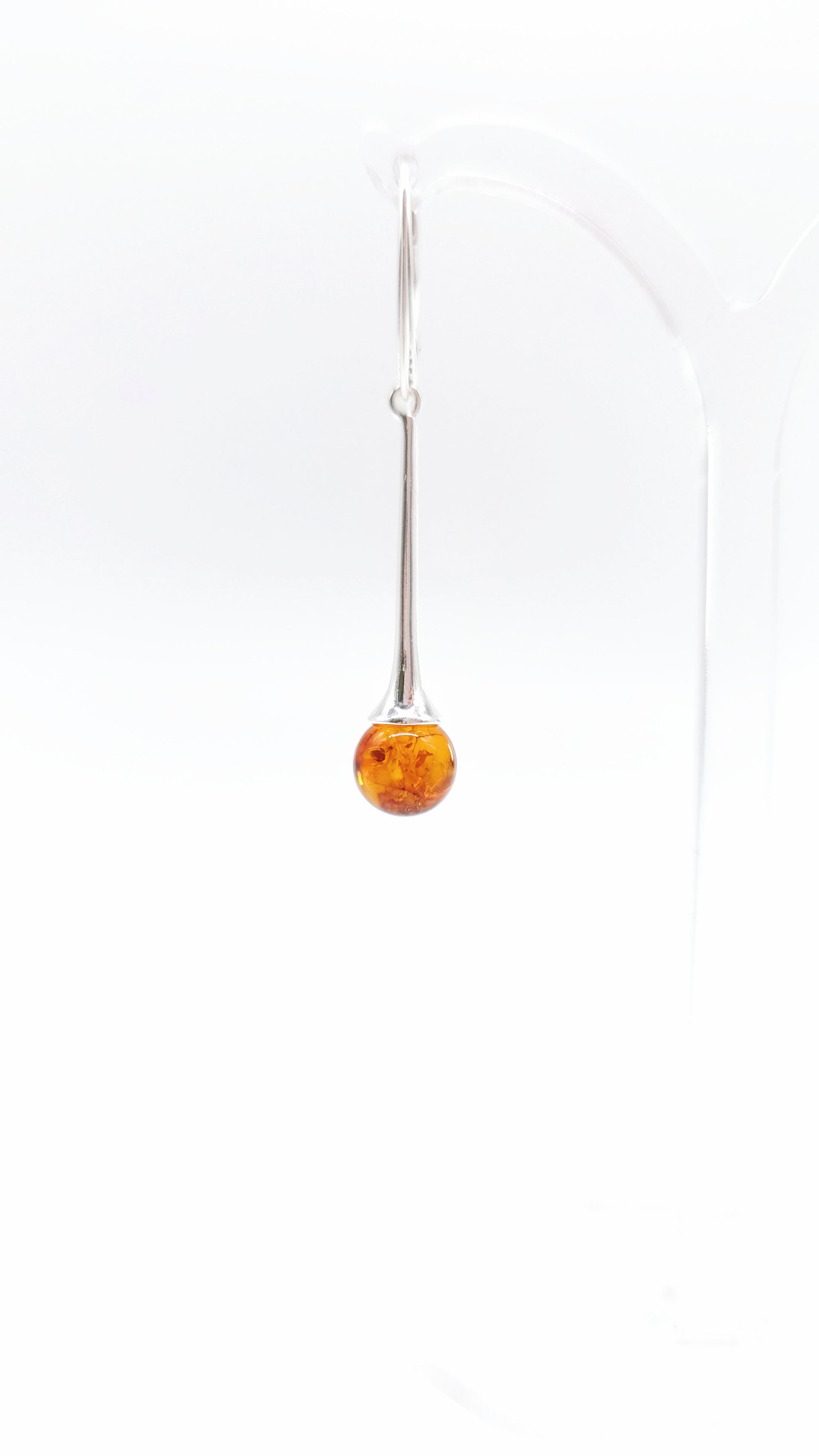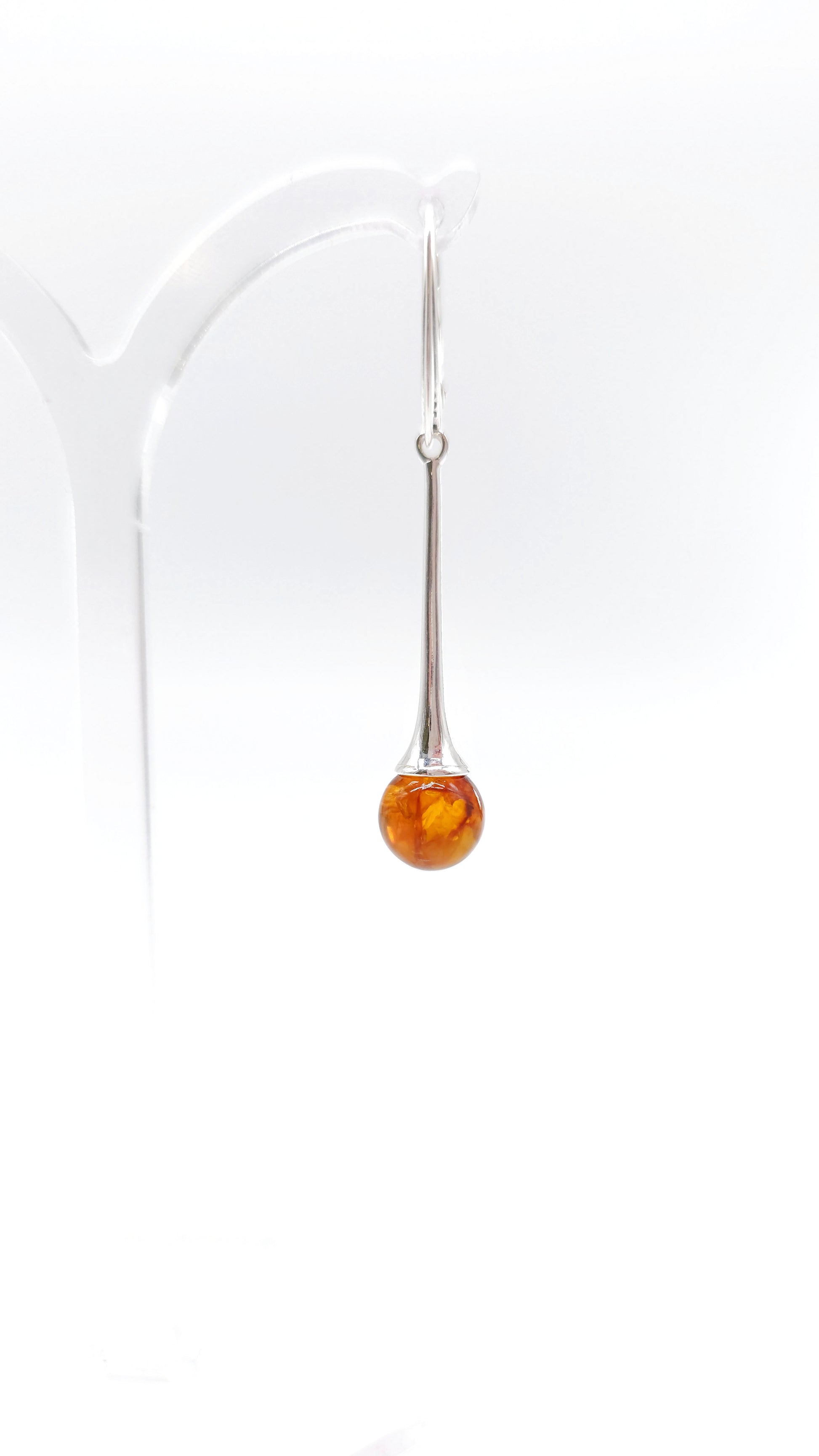 These amber silver earrings combine classic design with modern elegance. The drop-shaped design, with a gleaming amber bead at the end of the delicate silver band, flatters every face shape and ensures a stylish look—for everyday wear as well as for special occasions.