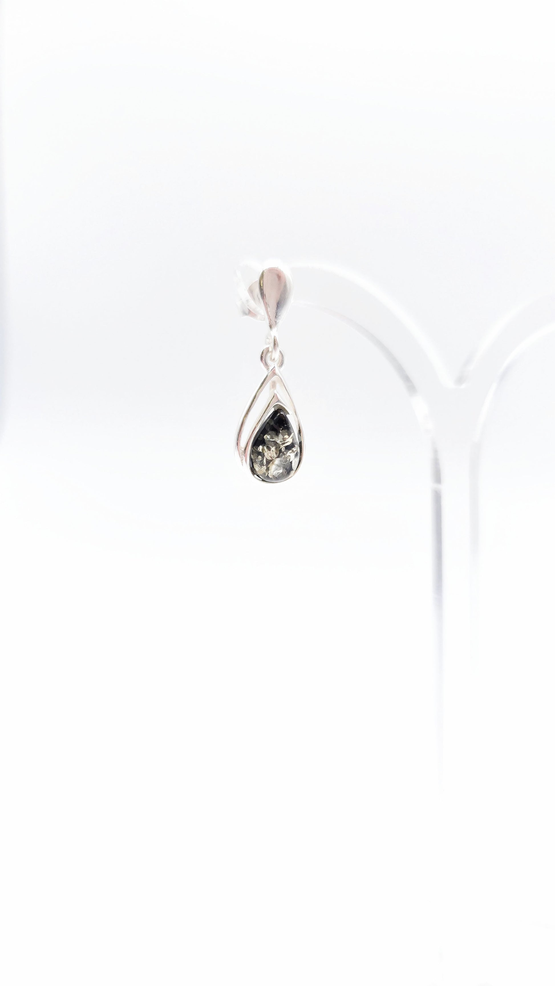 The drop-shaped amber inserts create a sophisticated and timeless look—perfect for everyday wear or special occasions. Each stone is a genuine natural product, making each pair of earrings unique.