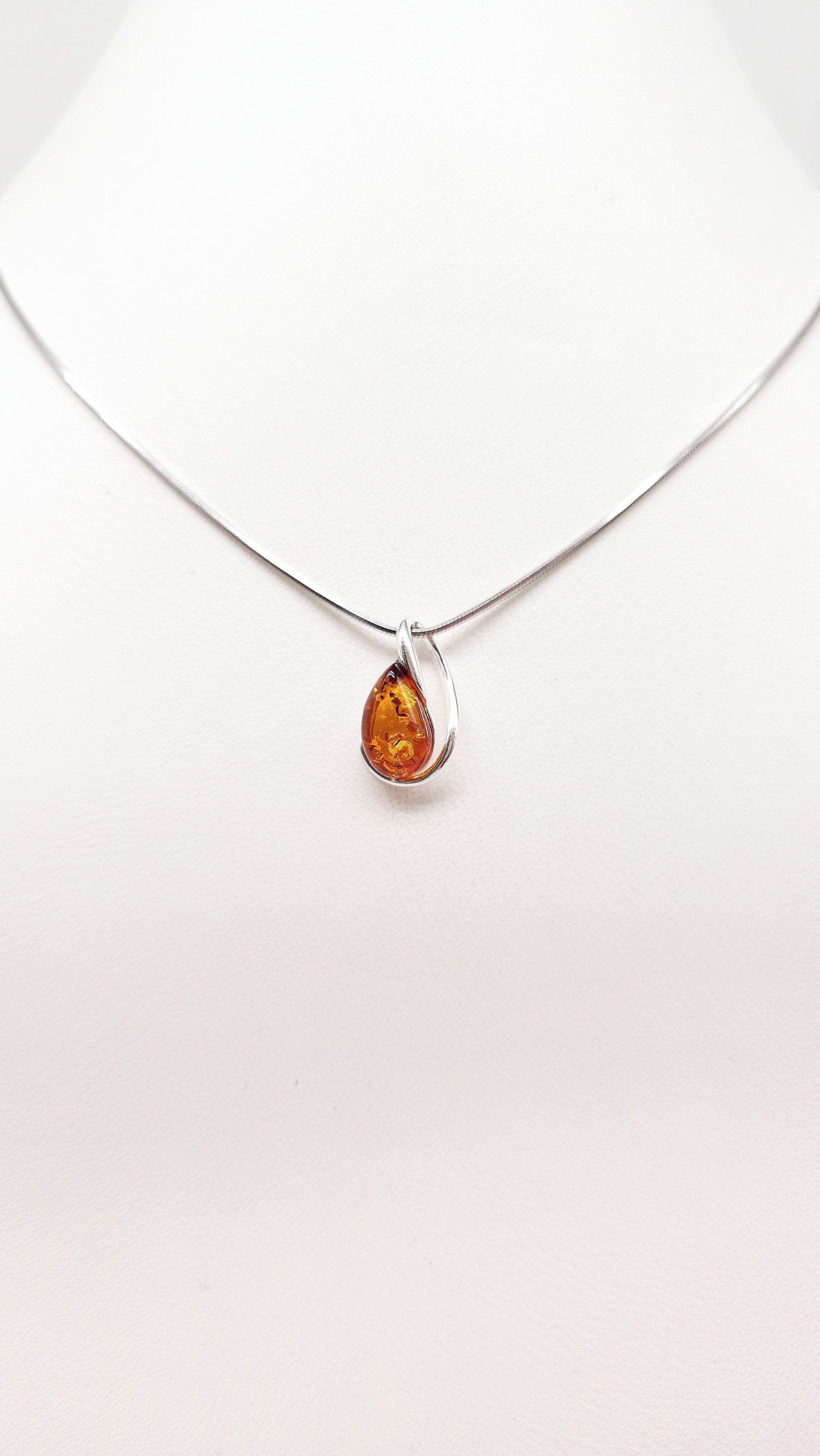 An elegant drop full of naturalness – this handcrafted pendant combines warm natural amber with a gently curved 925 sterling silver setting. Its harmonious shape makes it a stylish everyday companion and a tasteful gift for any occasion.
