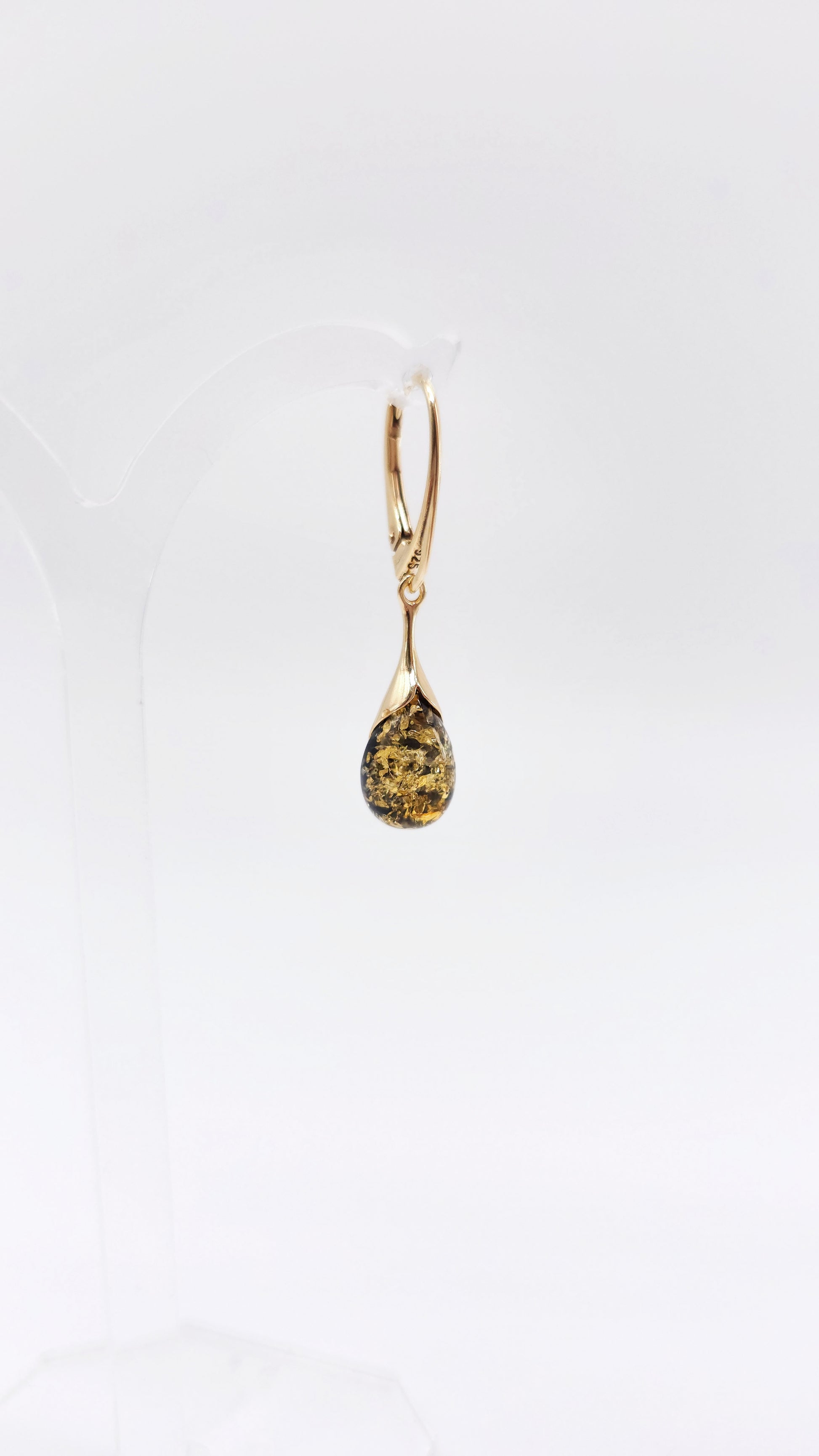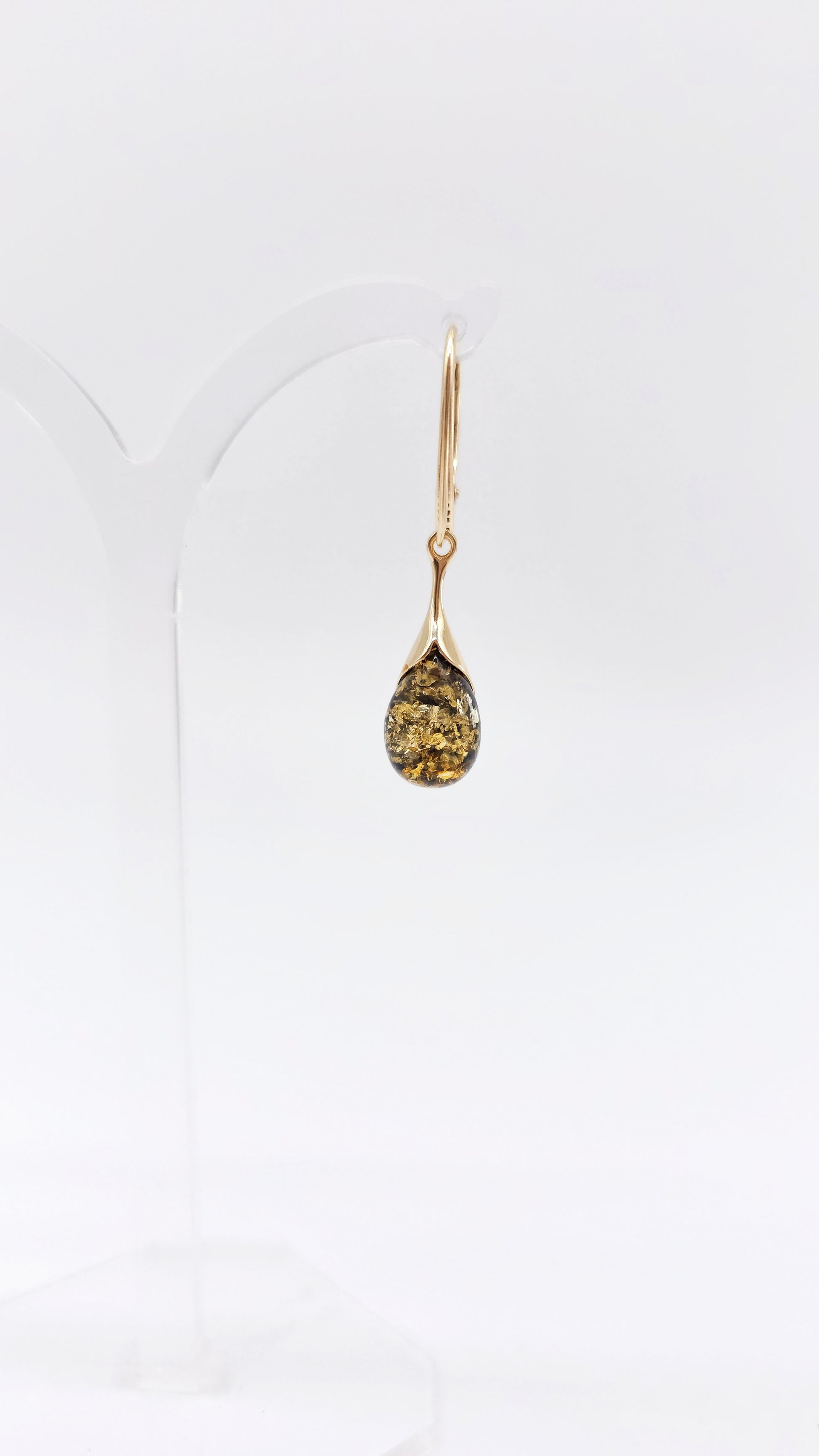 These elegant drop earrings made of genuine natural amber add a stylish touch – subtle yet effective. The finely cut green amber shimmers mysteriously and is held in an elegant setting of gold-plated 925 Sterling silver . The earrings are 3.5 cm long and 0.7 cm wide , making them the perfect accessory for everyday wear and any occasion. The drop shape symbolizes harmony, nature, and depth – a wonderful gift for women who combine naturalness with elegance. Whether as a birthday present, a surprise for a loved one, or a stylish statement for yourself – this piece of jewelry is guaranteed to be remembered. Handcrafted with love, each pair is unique and an expression of the finest craftsmanship.