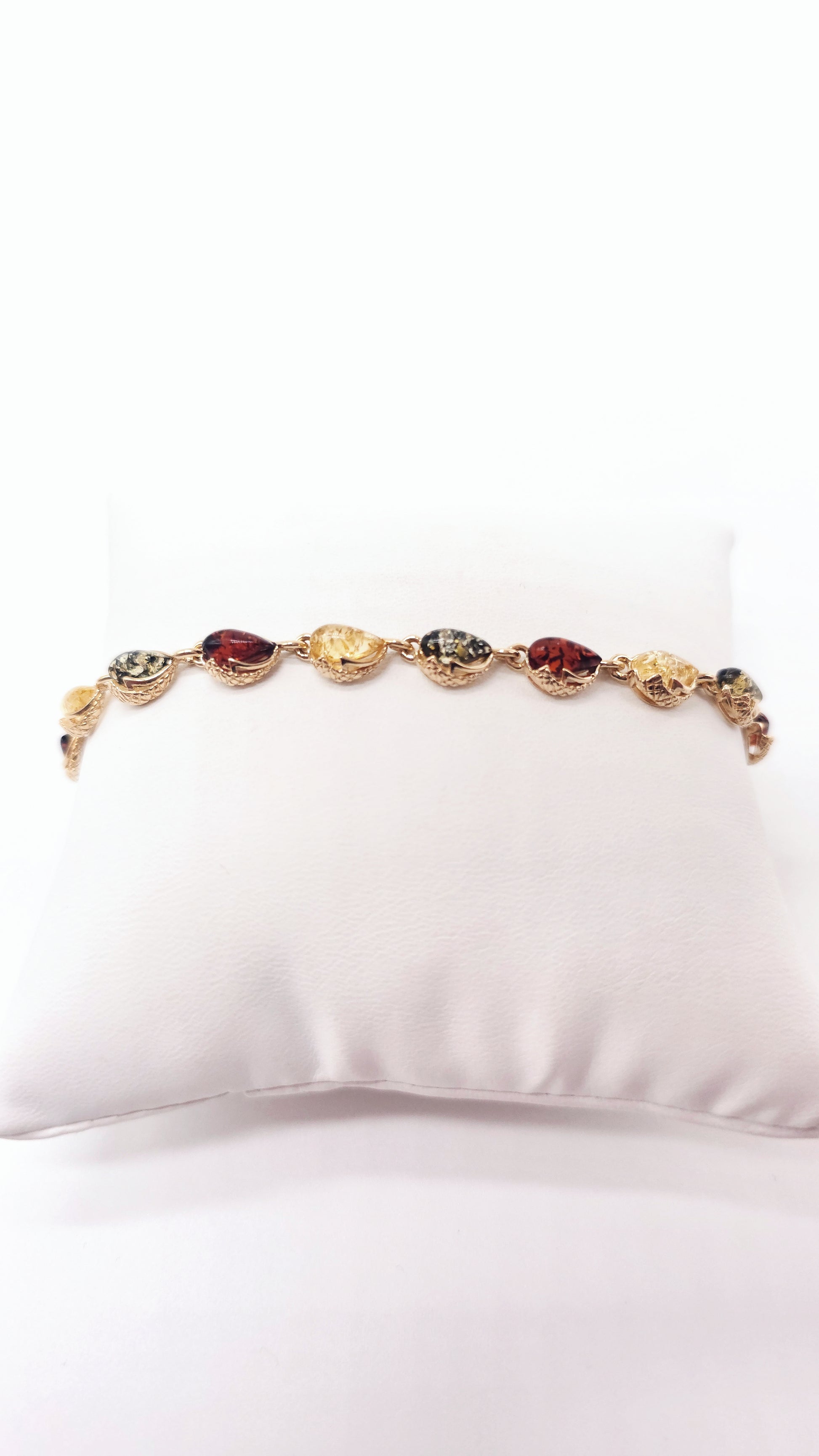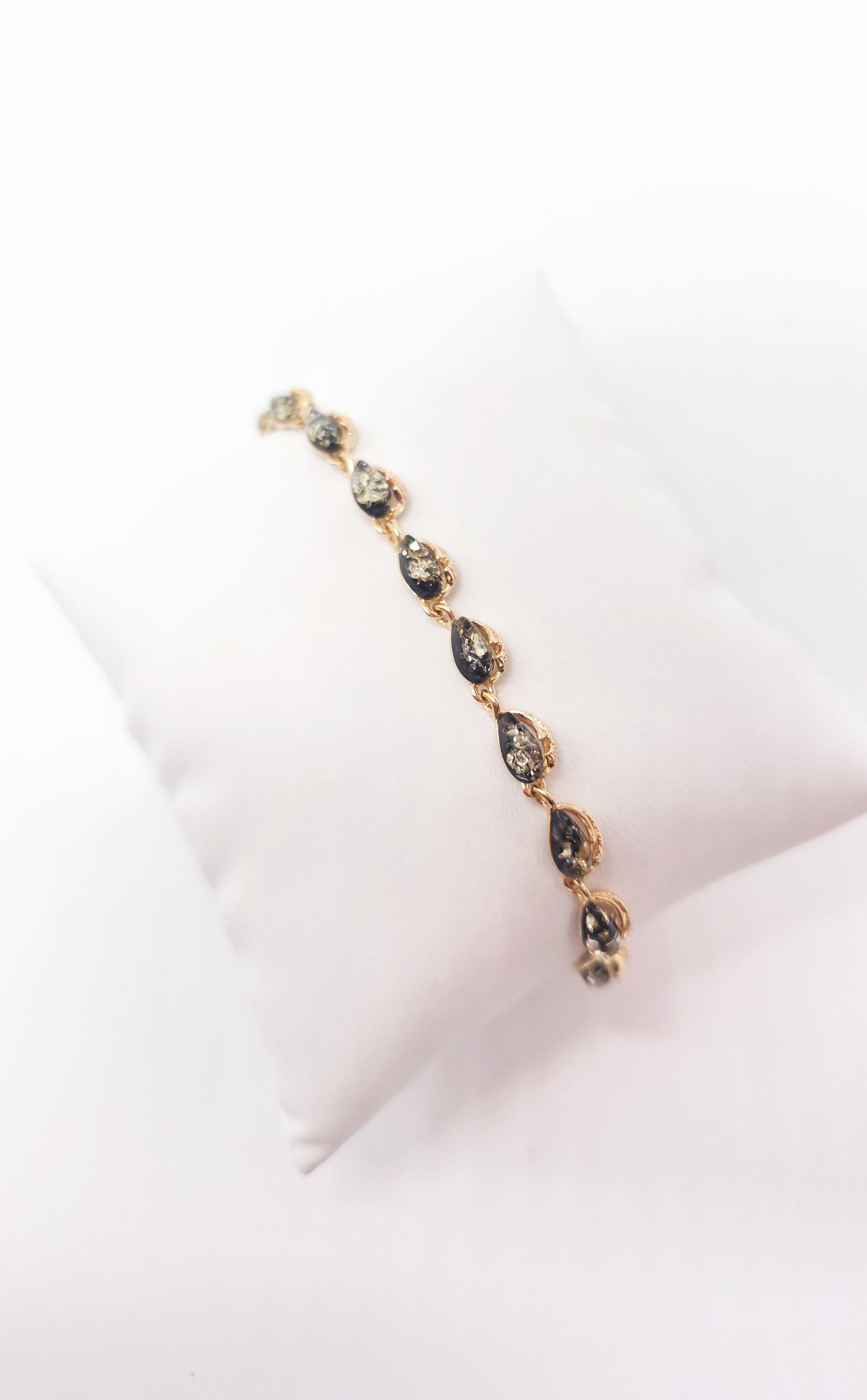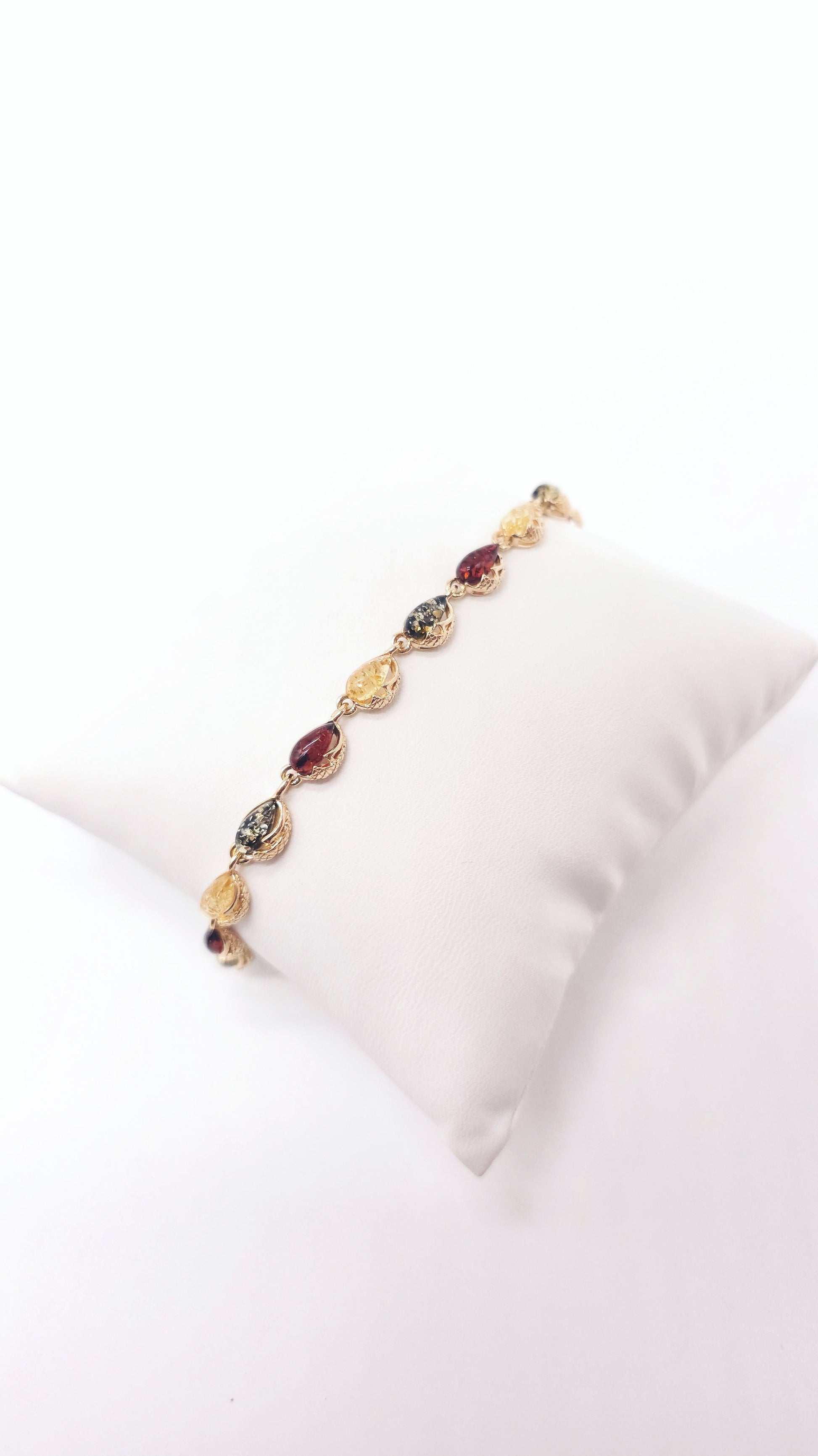 This delicate bracelet made of gold-plated 925 sterling silver is a true highlight for style-conscious women. The delicate green natural amber stones in a drop-shaped setting lend the piece an elegant lightness. Each stone is unique and shimmers with its own unique depth.