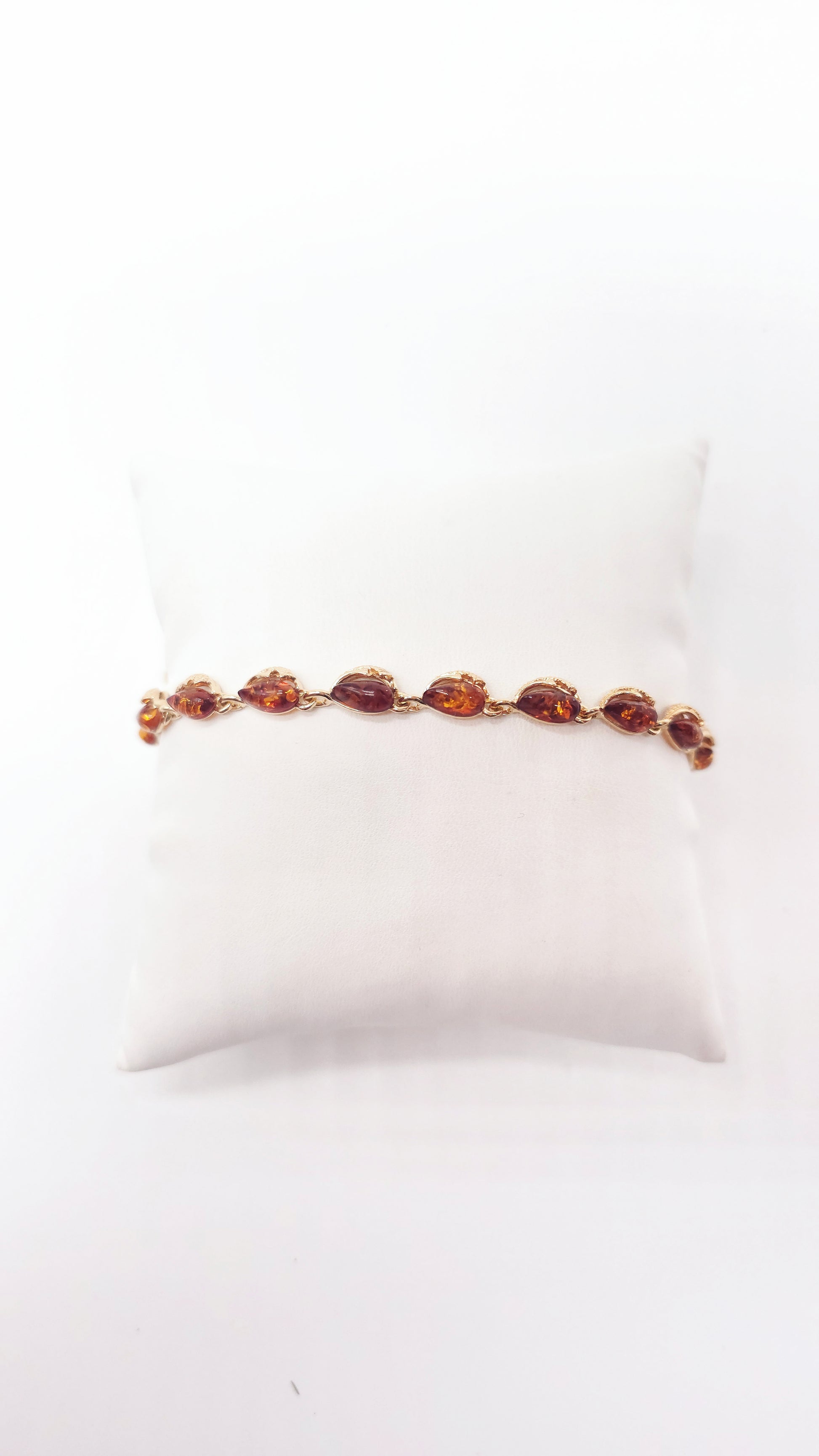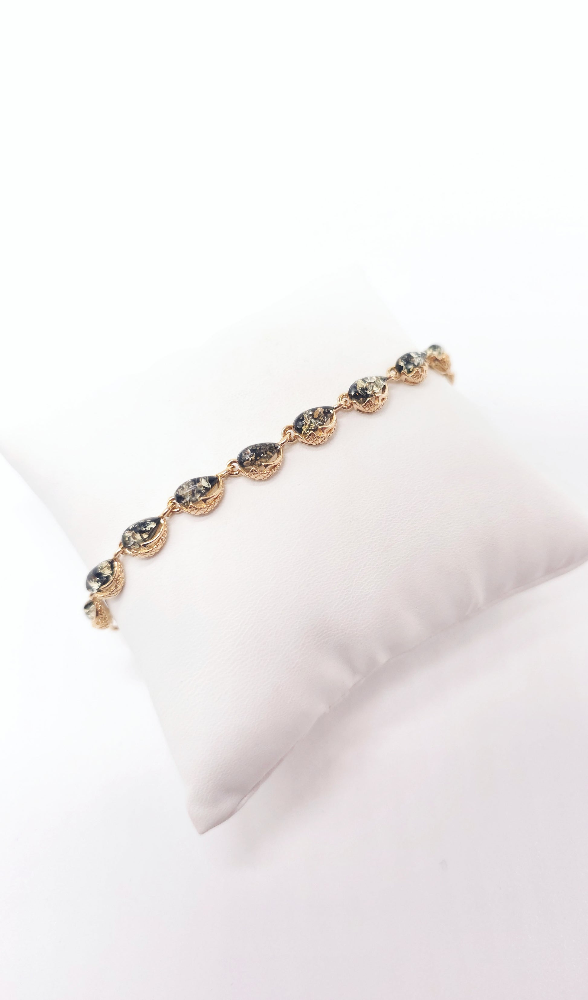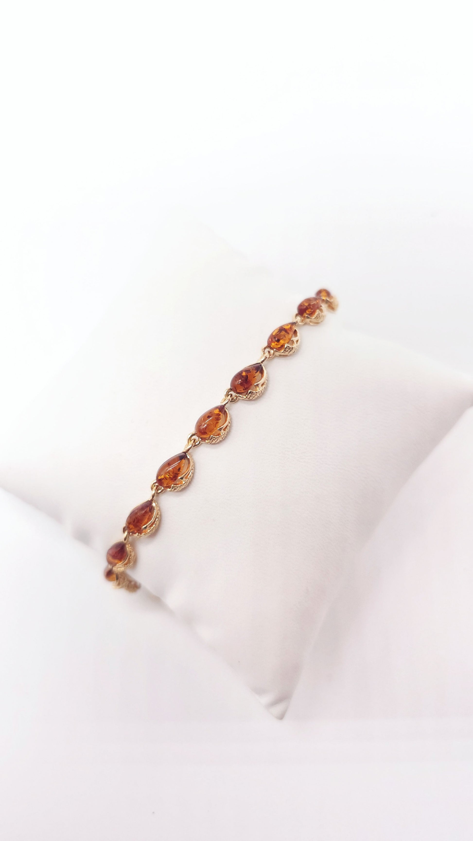 This delicate bracelet made of gold-plated 925 sterling silver is a true highlight for style-conscious women. The delicate green natural amber stones in a drop-shaped setting lend the piece an elegant lightness. Each stone is unique and shimmers with its own unique depth.