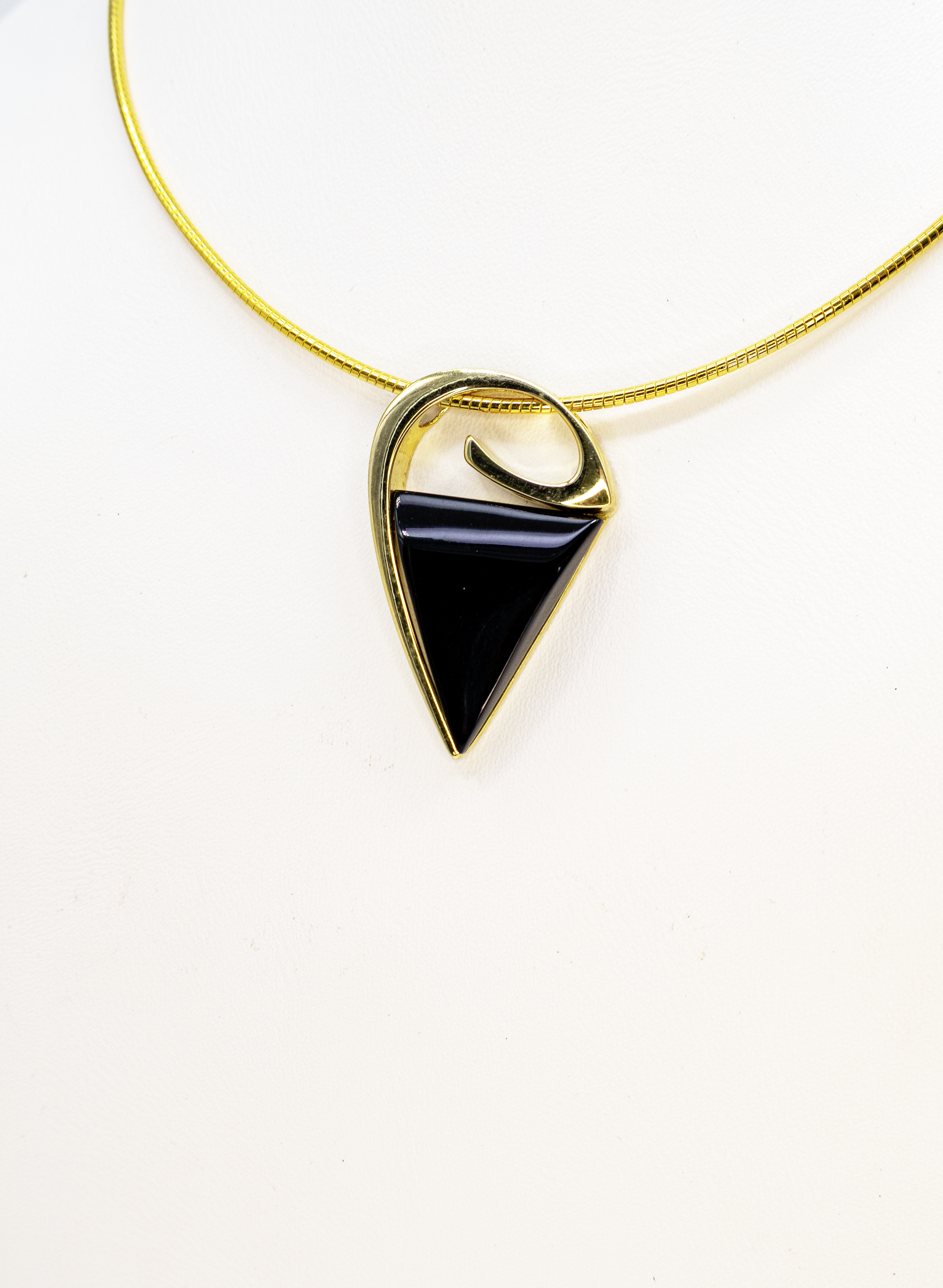 An extraordinary piece of jewelry for those who appreciate something special: This gold-plated pendant with genuine amber combines modern design with classic elegance. The amber is set in a striking triangular element (approx. 4.6 × 3 cm) , which is artfully framed by the curved gold-plated line. Together with the 45 cm long gold-plated chain, it creates a harmonious overall look that instantly enhances any outfit.
