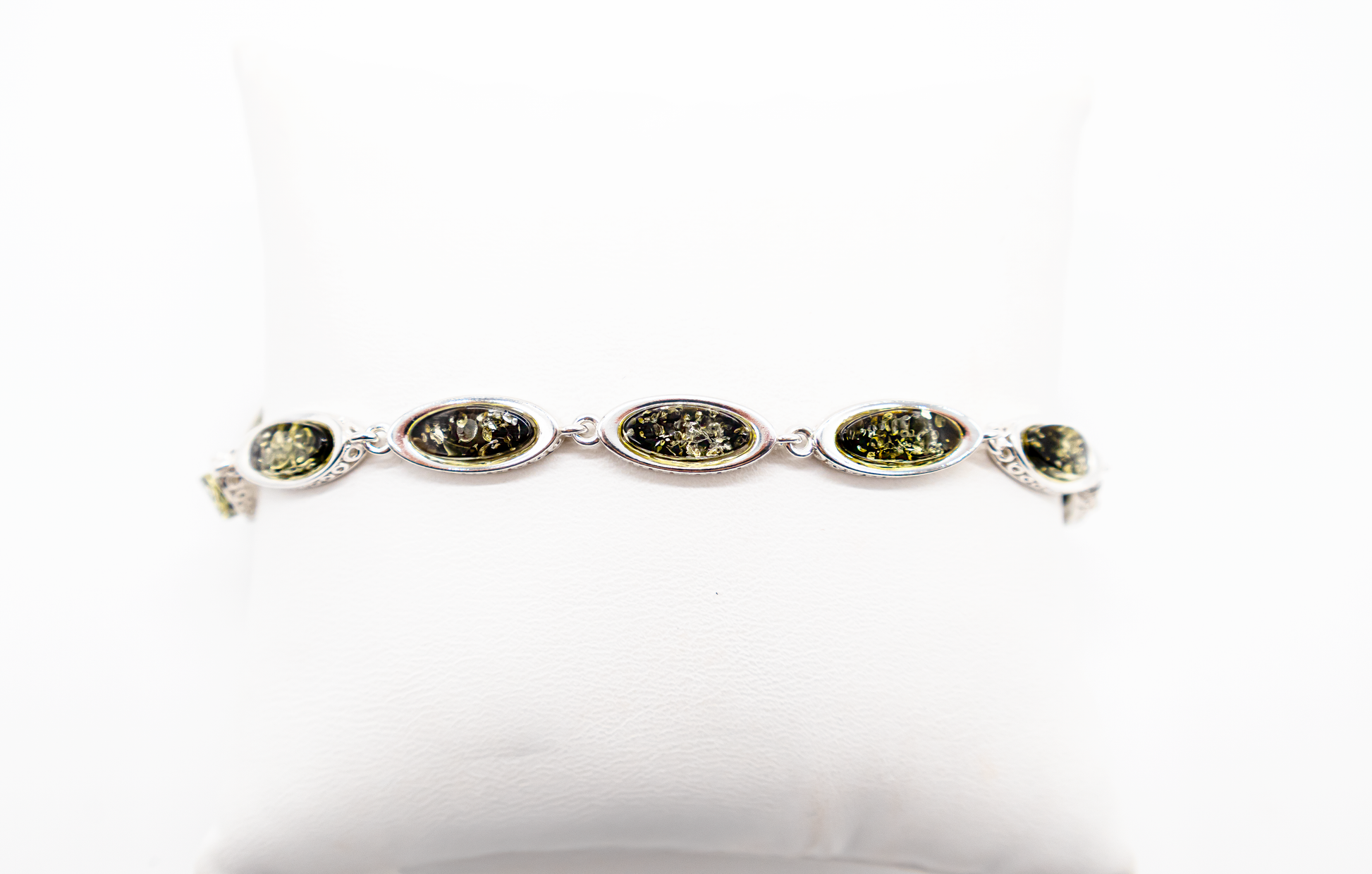 Silver bracelet with green amber – a unique piece made of 925 silver