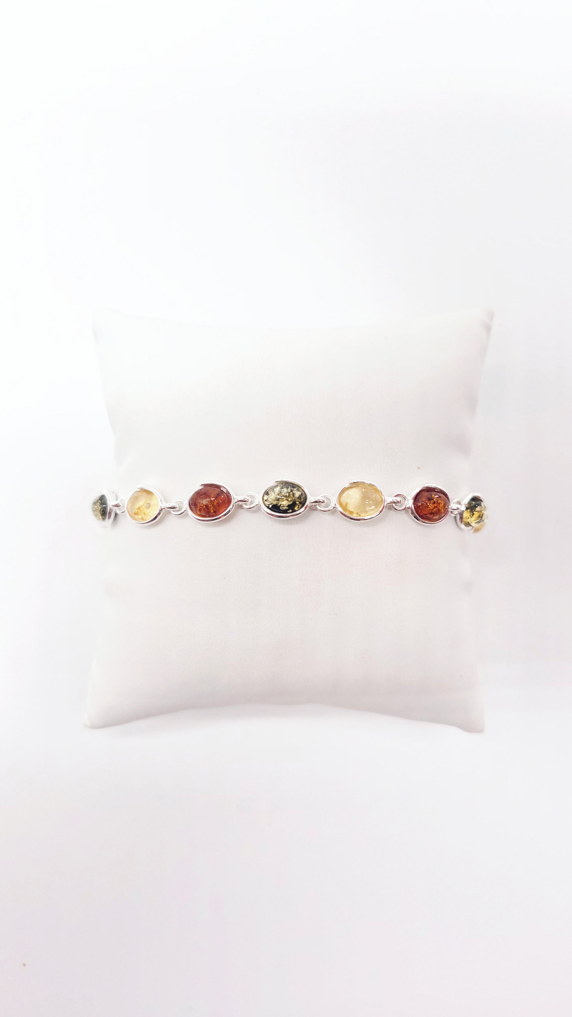 Colorful amber bracelet real silver 17 cm