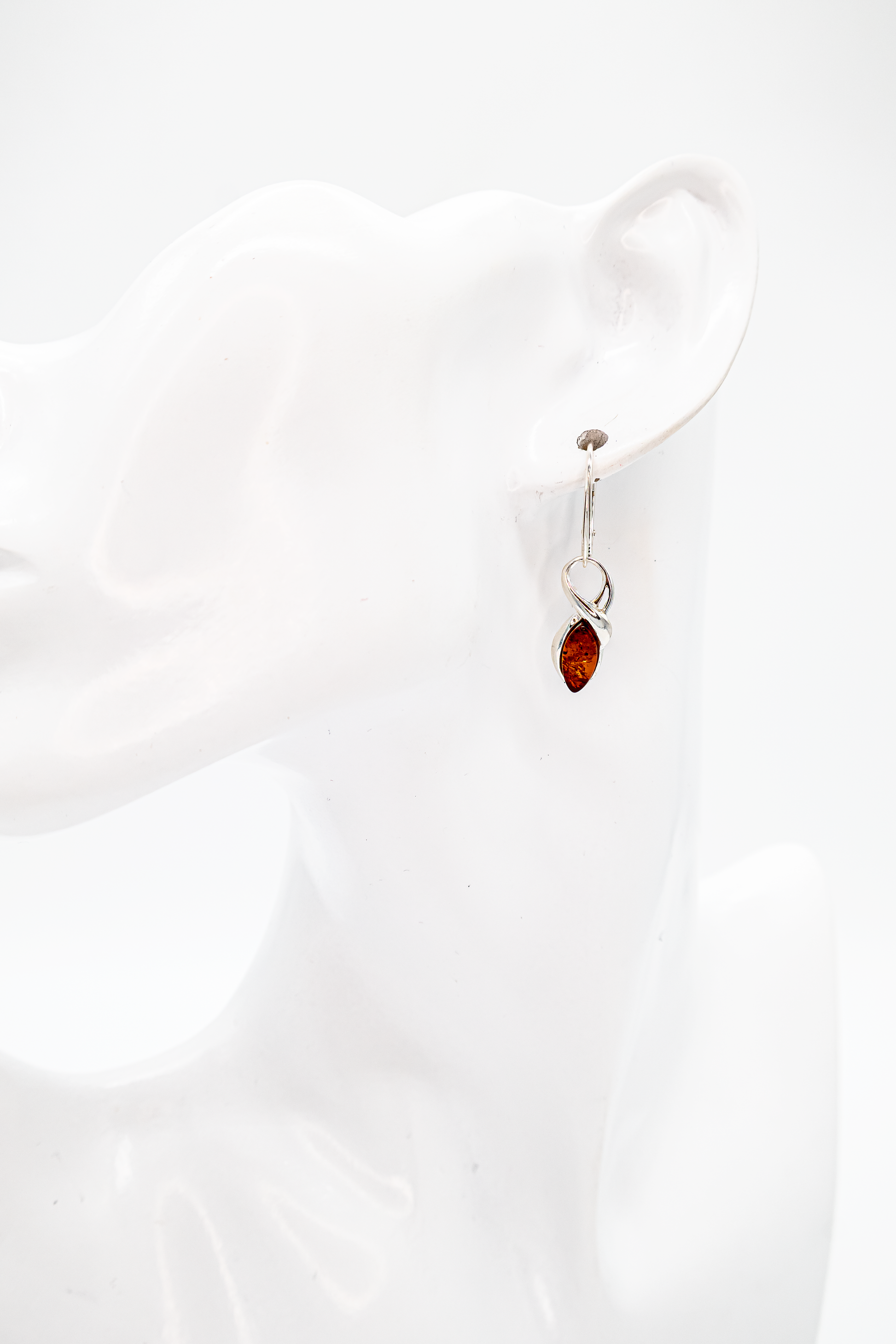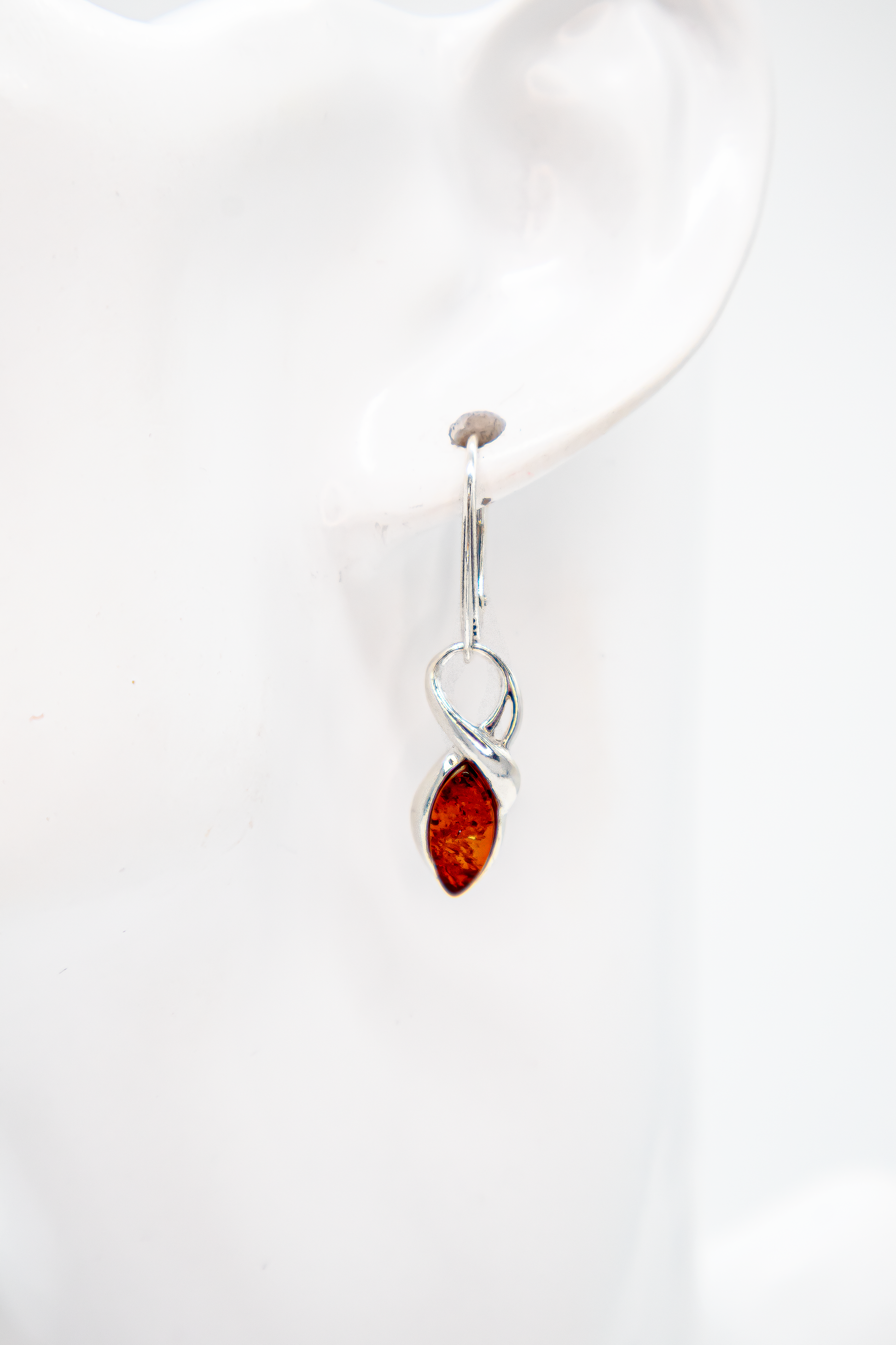Handmade amber earrings with curved silver settings – elegant, light, and timelessly beautiful.