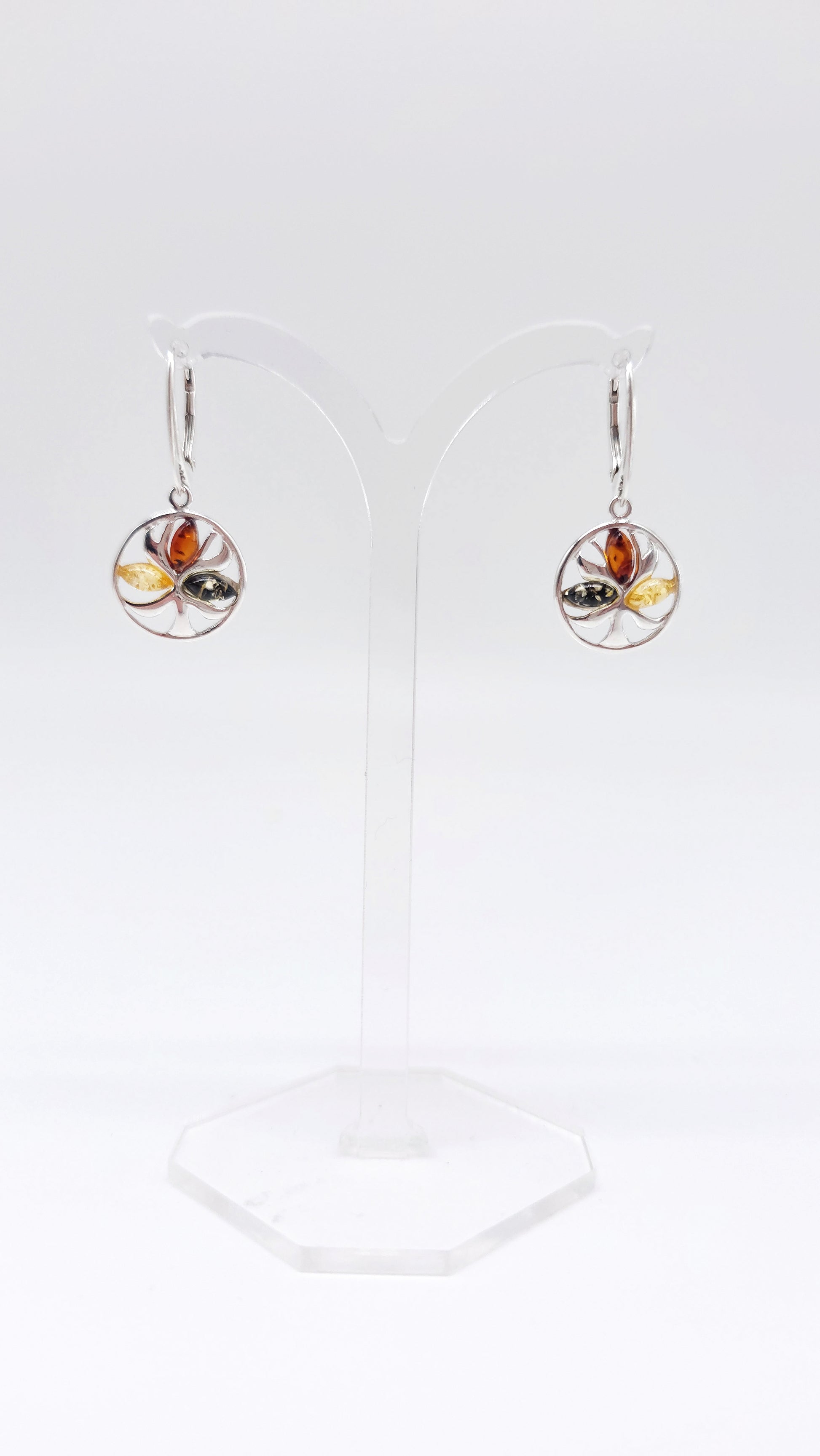 The combination of colorful amber stones and filigree silver work makes these earrings an eye-catcher.
