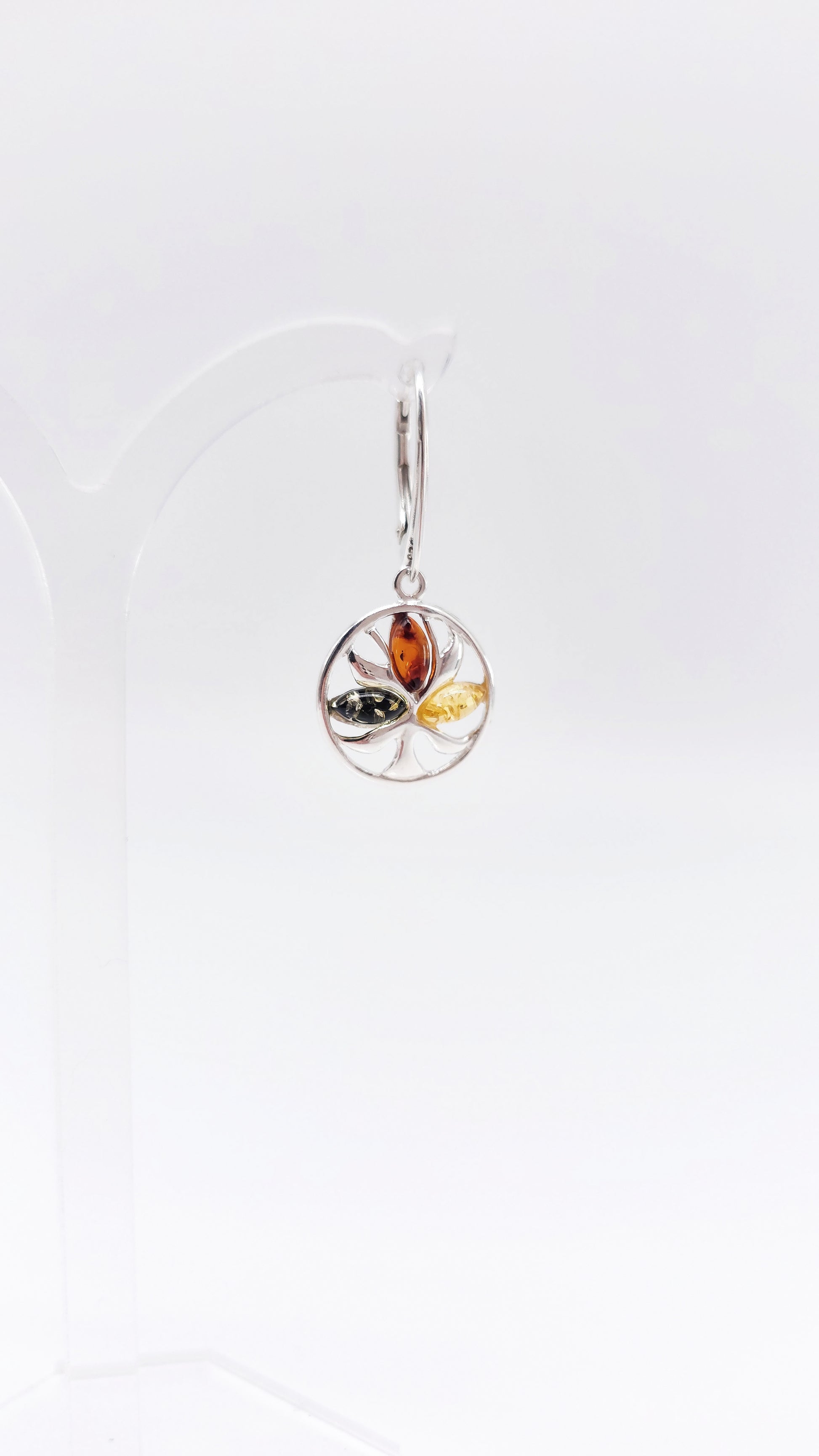 These stylish 925 silver earrings captivate with their unique design and colorful amber stones in warm tones. Measuring 3.3 cm long and 1 cm wide , these handmade earrings add an elegant touch to any outfit. The harmoniously combined amber colors make each pair a unique piece of jewelry. Ideal for women who appreciate timeless style and quality craftsmanship, or as a gift for special occasions – order conveniently online now and spread joy.