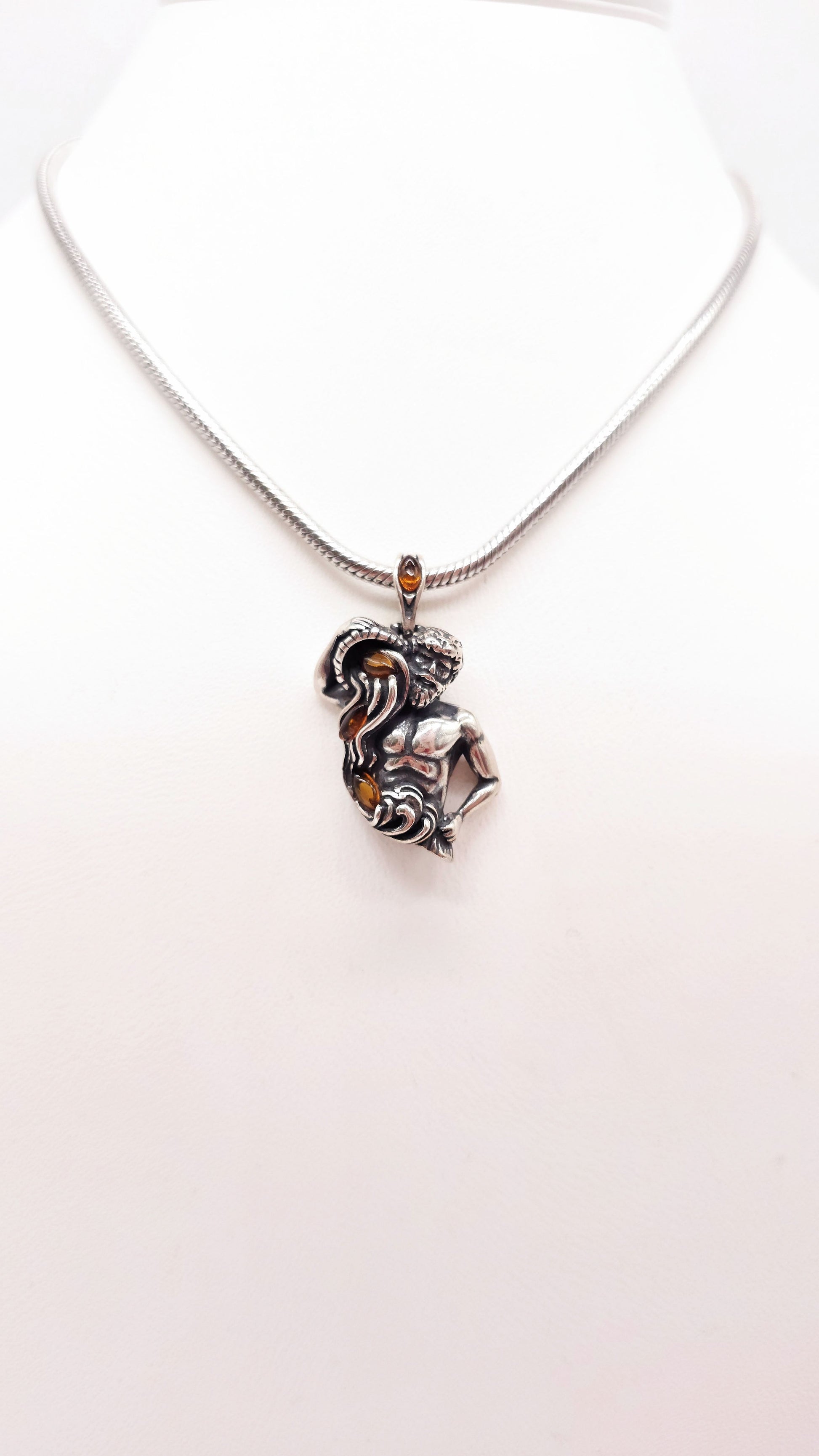 The warm, natural glow of the amber harmonizes beautifully with the dark silver, emphasizing the creative and freedom-loving nature of Aquarius. Whether as a special gift or to complement your own astrological style, this handcrafted pendant is unique and full of personality.