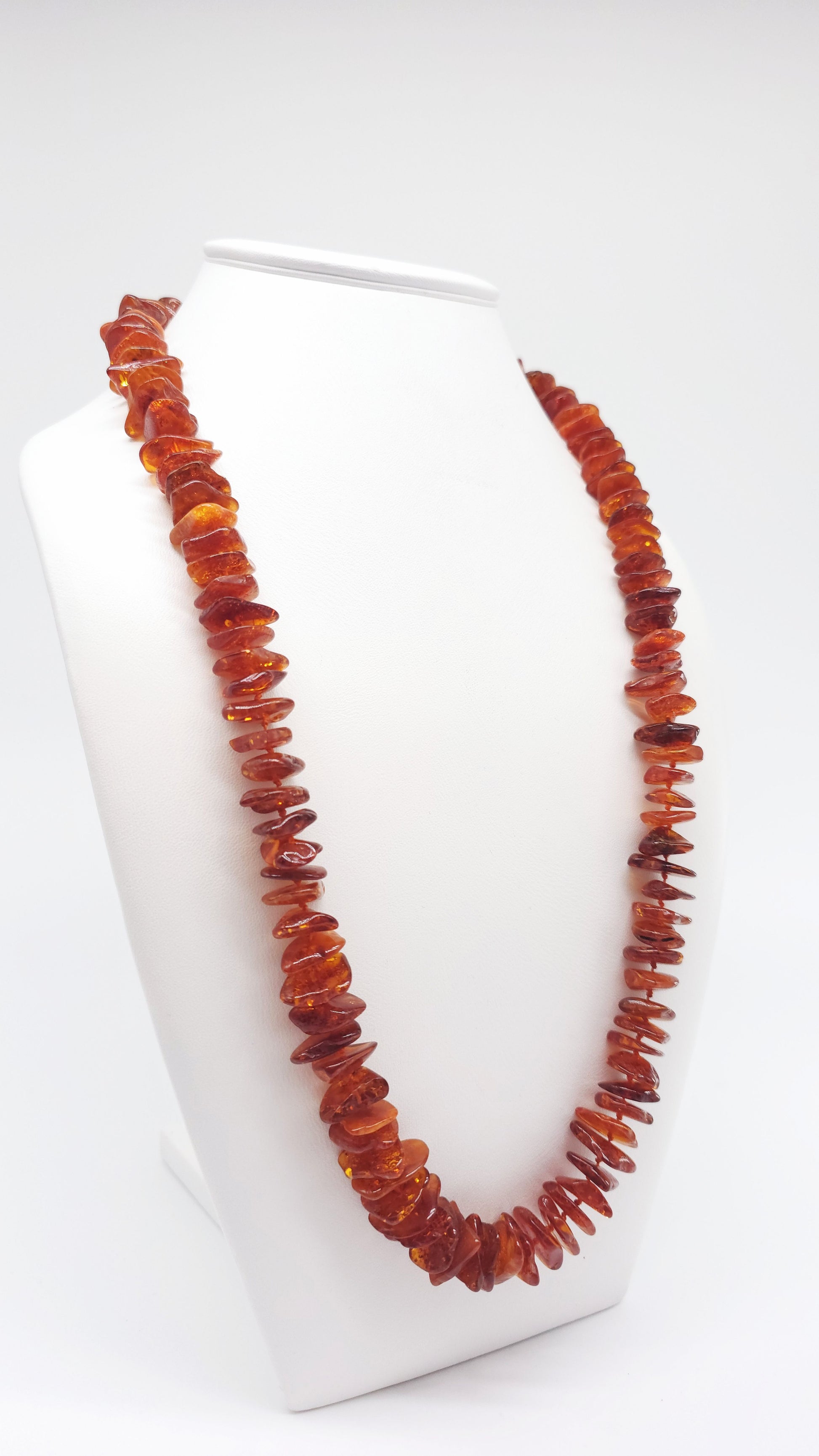This 72 cm long amber necklace is truly unique—handcrafted from genuine natural amber with a beautiful interplay of colors in cognac and honey tones. The irregularly cut stones give the necklace a natural dynamic and a pleasant feel. Thanks to the screw clasp, the necklace can be worn securely and easily. Whether as a stylish everyday piece or as a gift for Christmas, Mother's Day, or a birthday—this necklace is an expression of both naturalness and elegance.