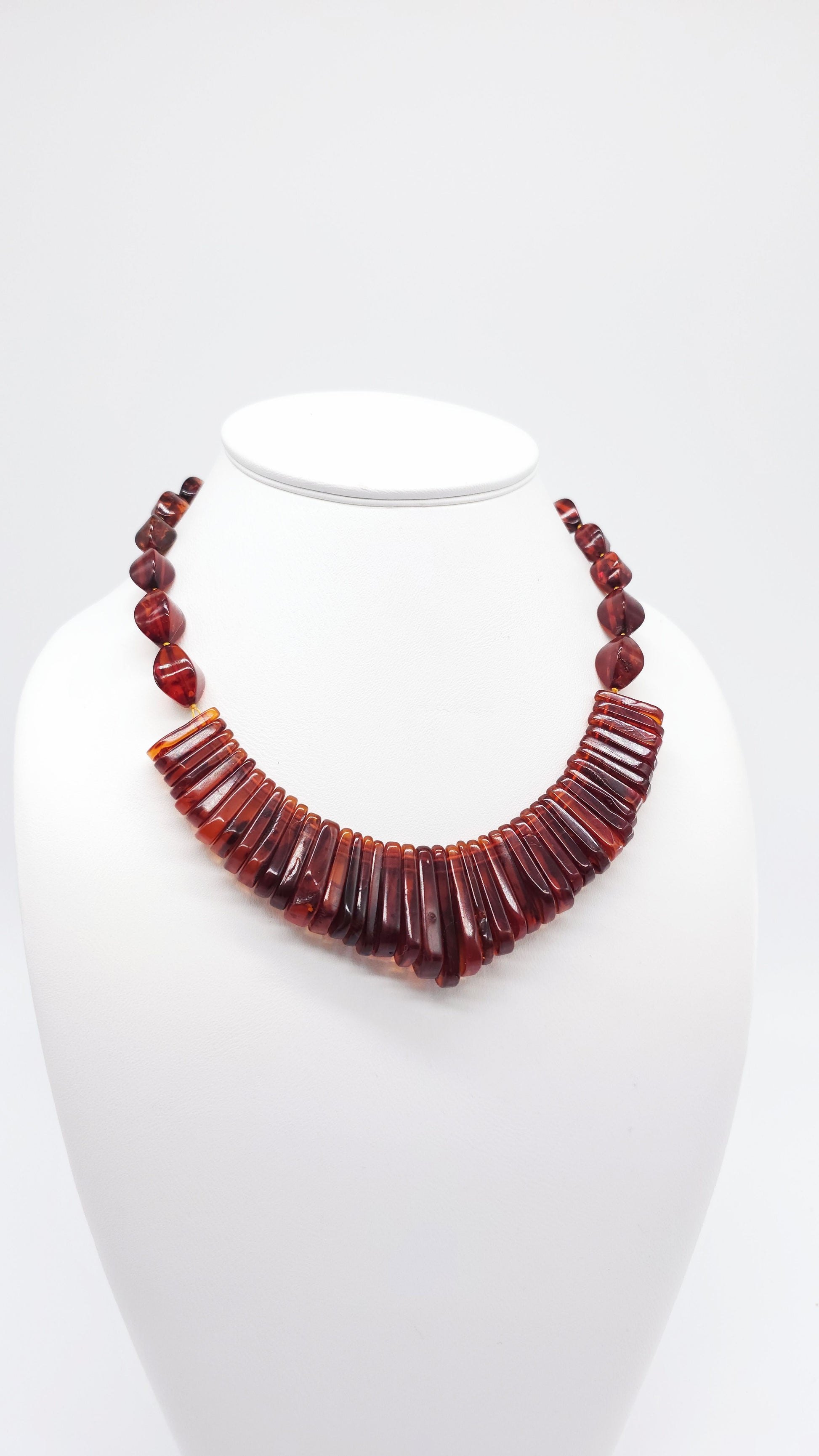 Amber necklace unique – handmade in dark red