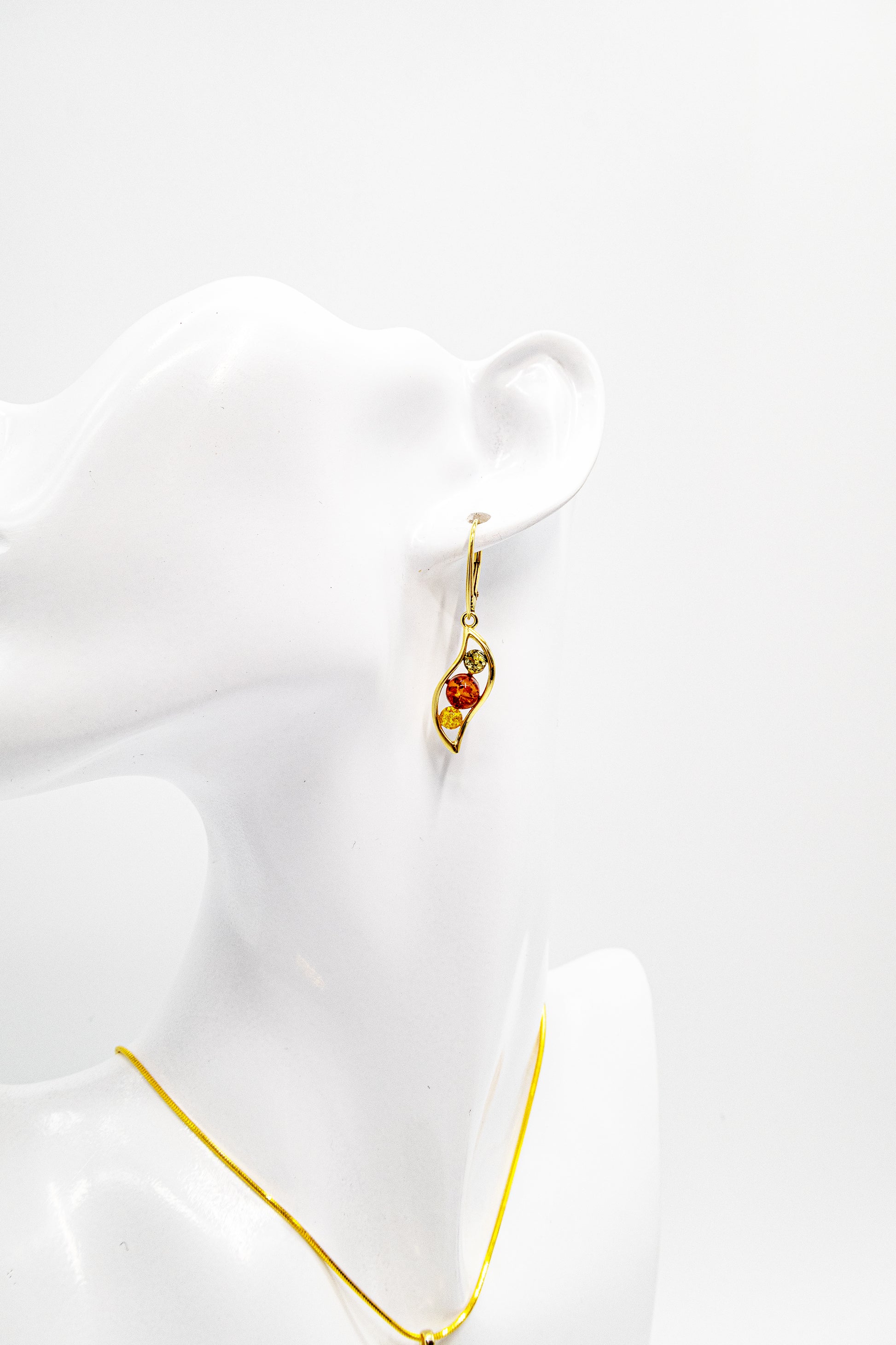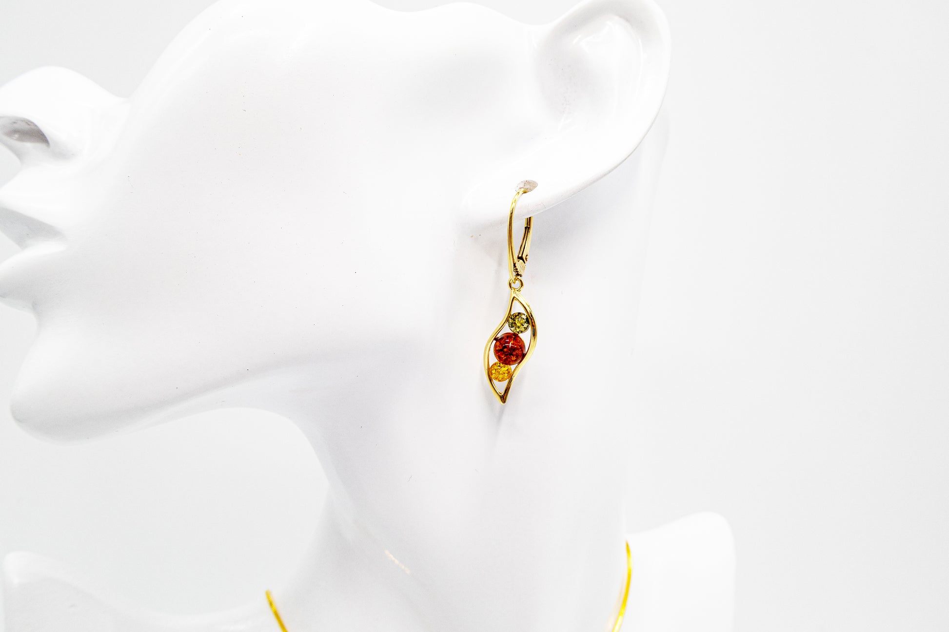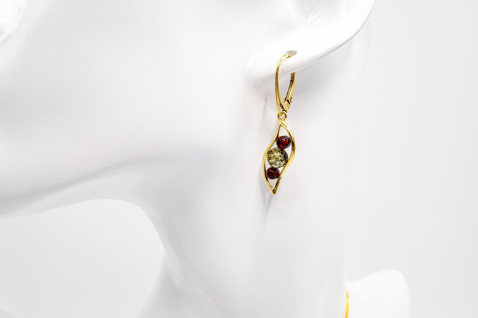 Tricolor amber earrings in a curved 24K gold-plated silver setting – an elegant highlight for every occasion.