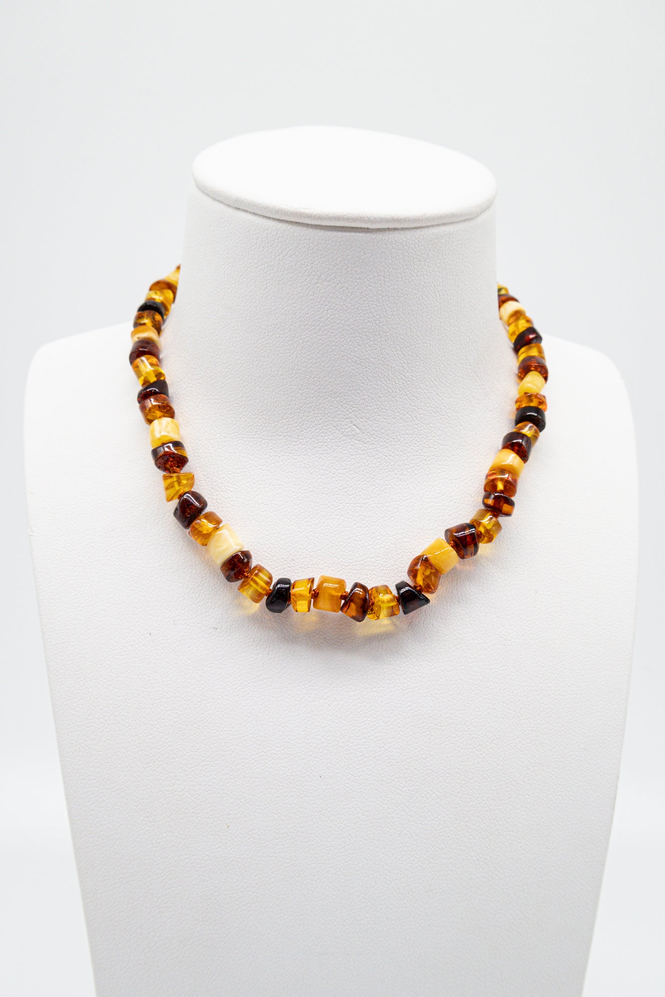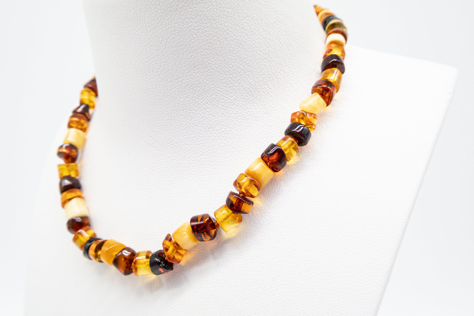 This handmade children's necklace made of genuine natural amber combines safety, quality, and a child-friendly design. With its colorful amber beads—ranging from honey yellow to cognac to dark brown—it's not only an eye-catcher, but also a natural piece of jewelry with symbolic significance.