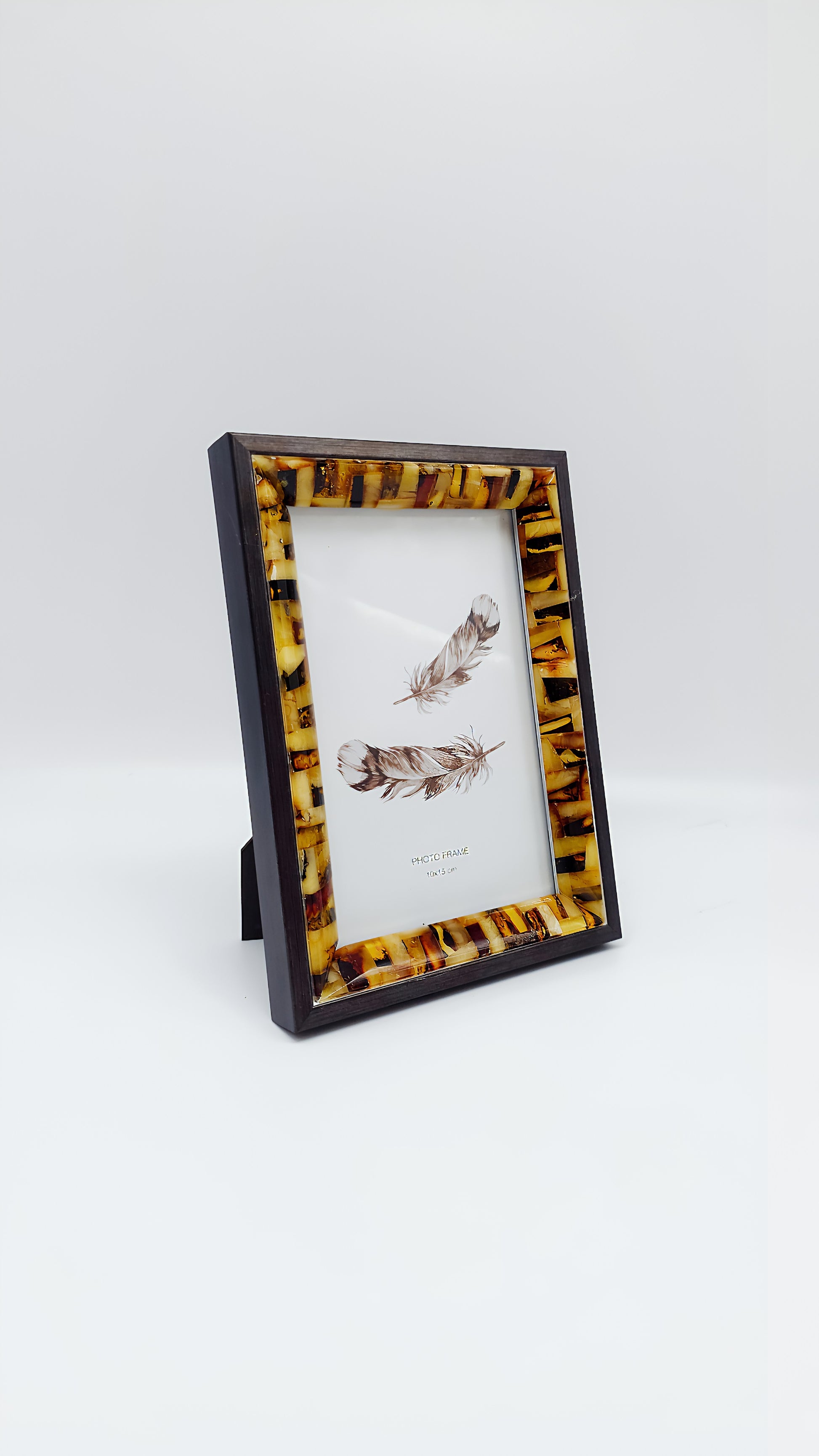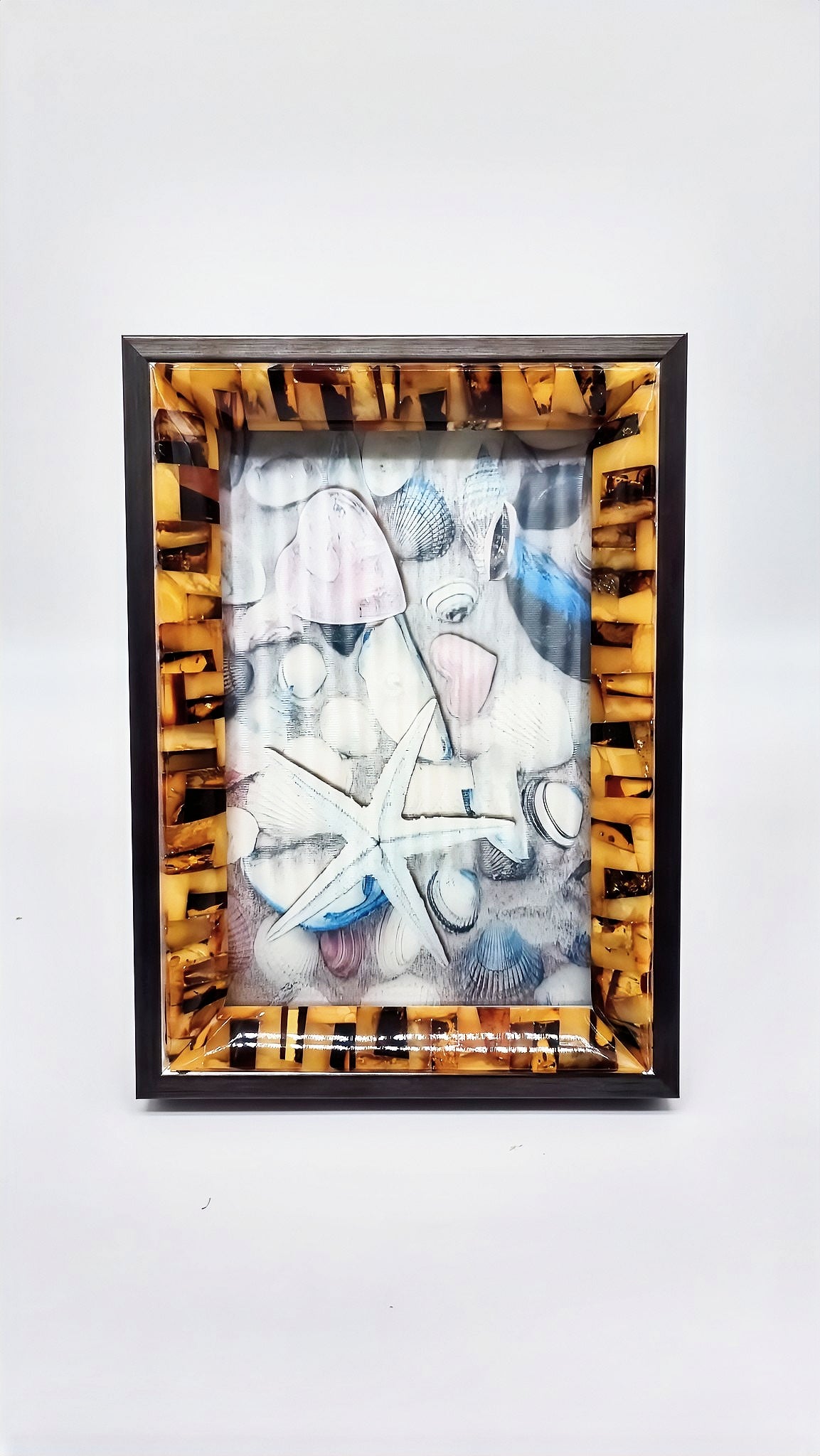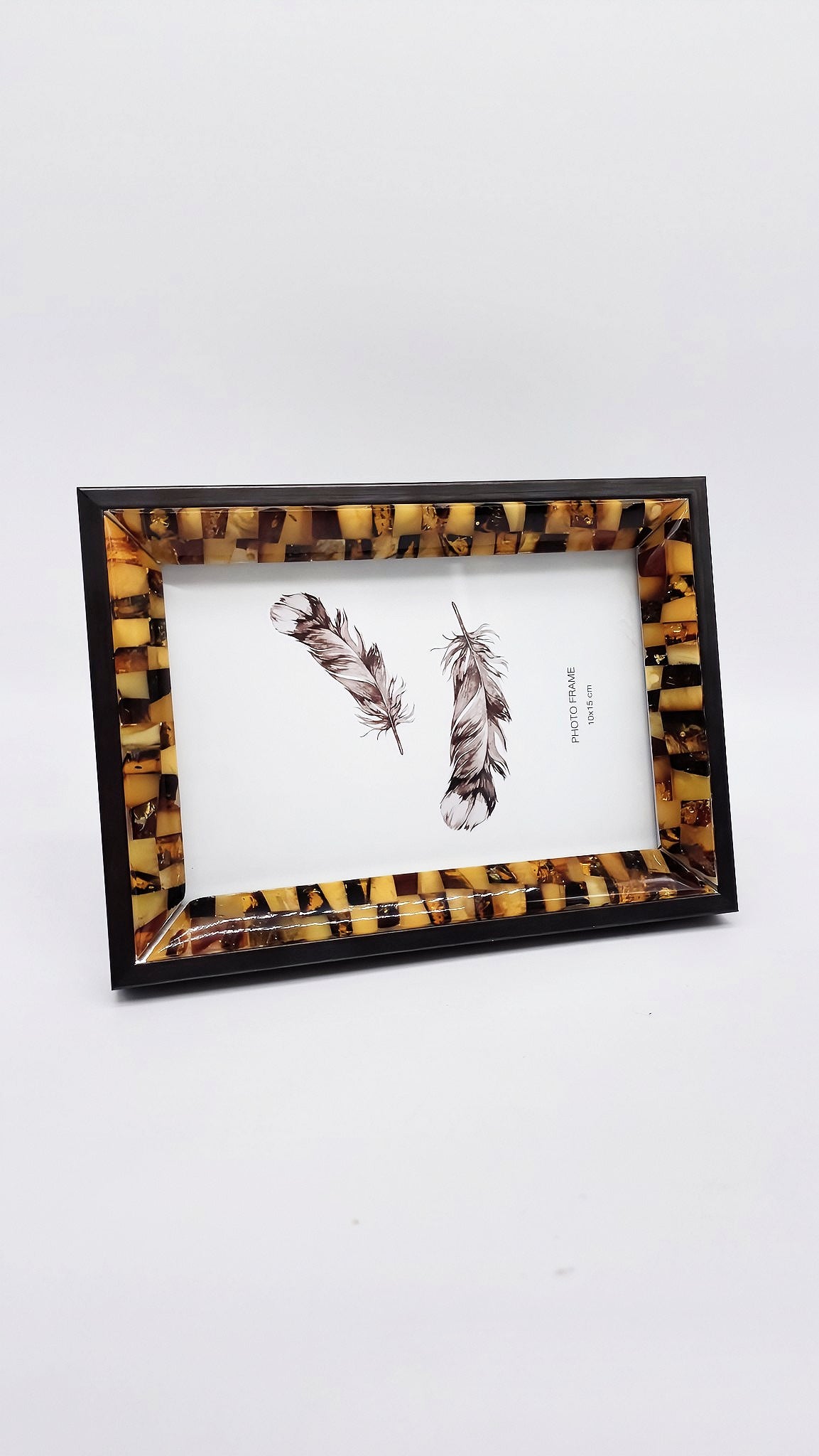 This handmade photo frame with genuine amber is an elegant accessory for your most precious memories .