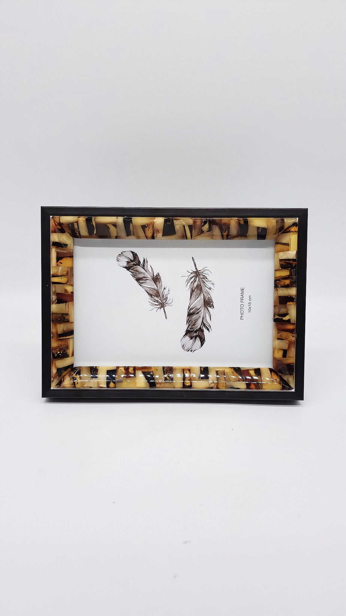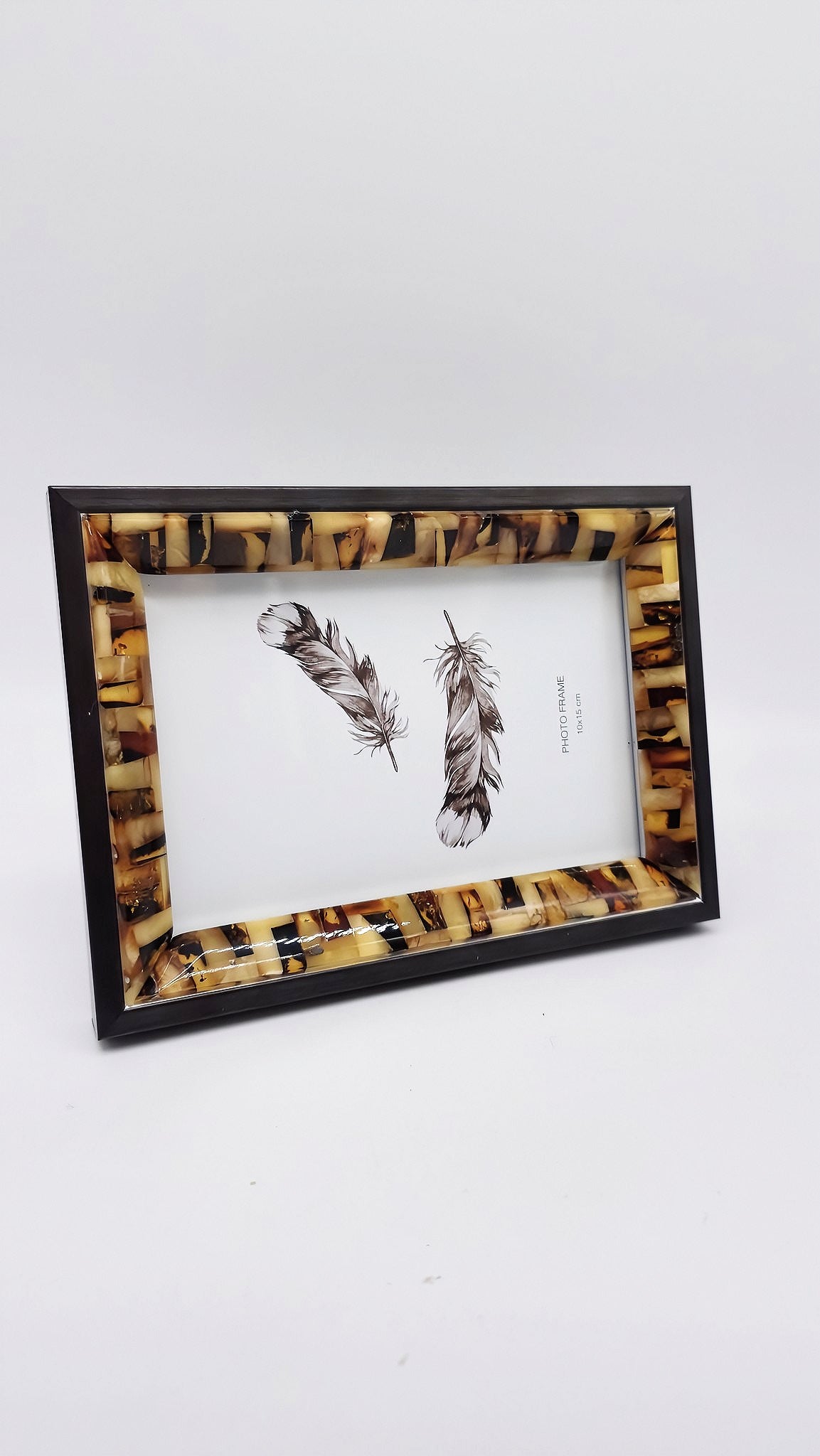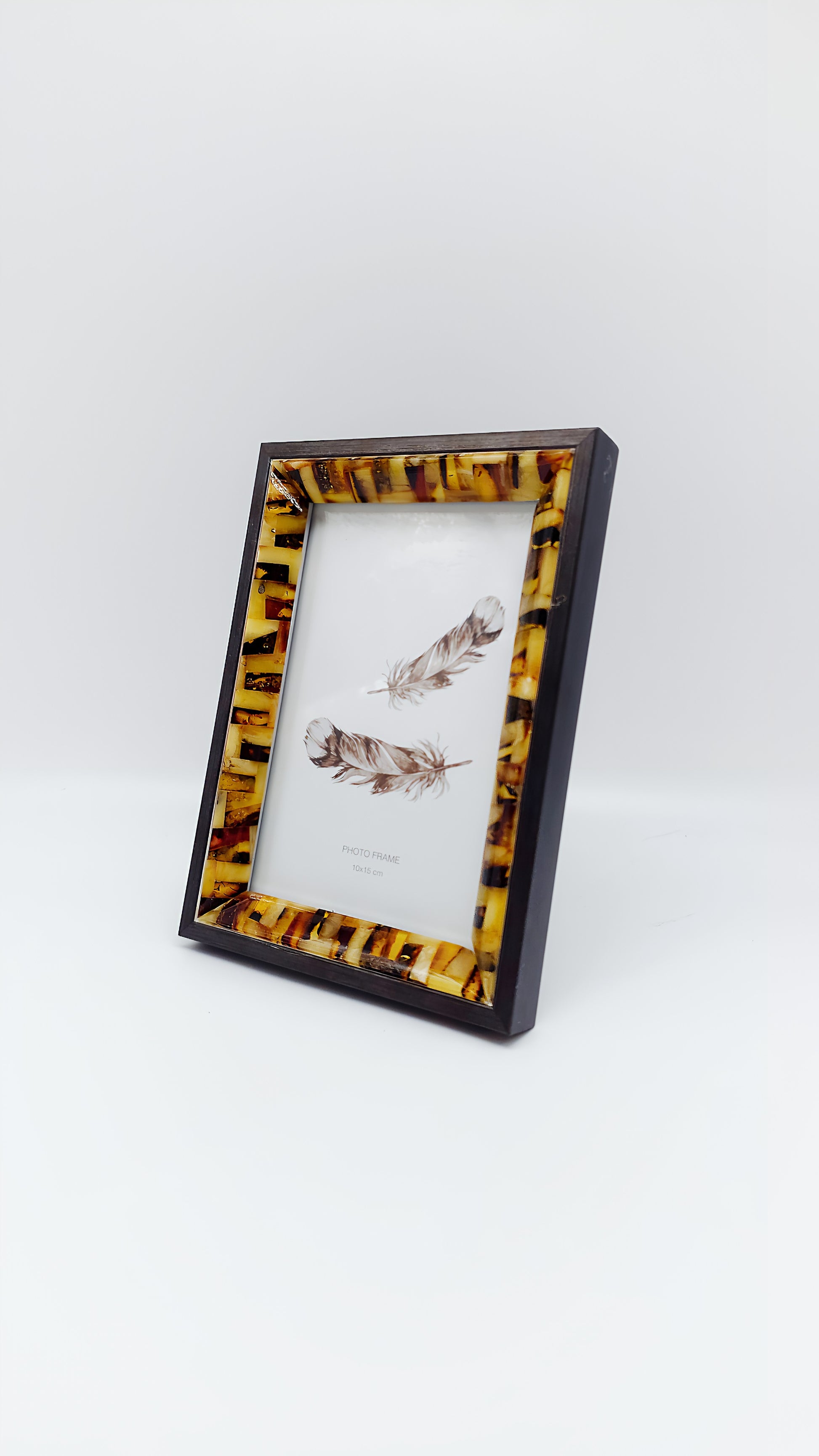 This handmade photo frame with genuine amber is an elegant accessory for your most precious memories .