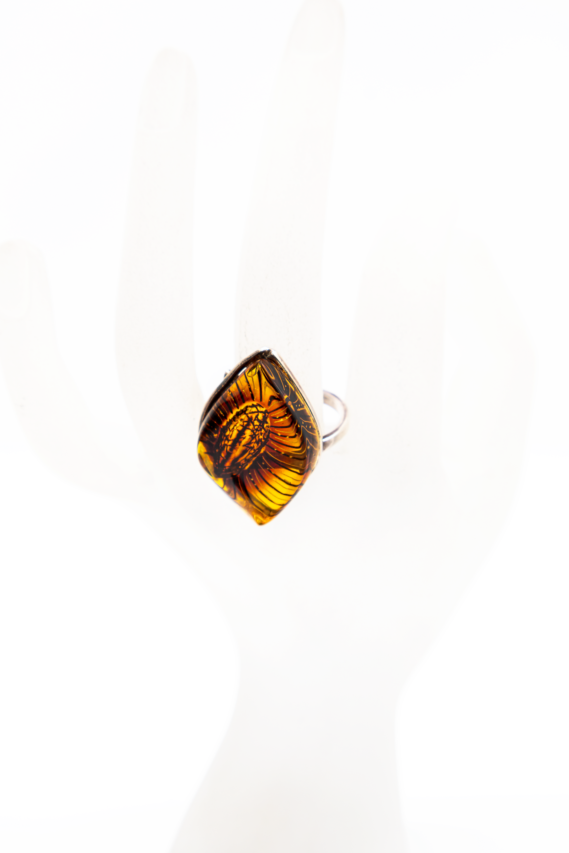 Weil er ein echtes Statement-Stück ist. Seine seltene Form, die außergewöhnliche Bernsteinzeichnung und die kräftige Präsenz machen ihn zu einem Schmuckstück für Menschen mit Charakter. Größe 63 eignet sich ideal für Damen, die auffällige und exklusive Designs lieben, oder auch für Herren, die besonderen Schmuck bevorzugen. Und das Wichtigste: Dieses Schmuckstück existiert nur einmal, es ist ein echtes Einzelstück – so individuell wie seine zukünftige Besitzerin oder sein zukünftiger Besitzer.