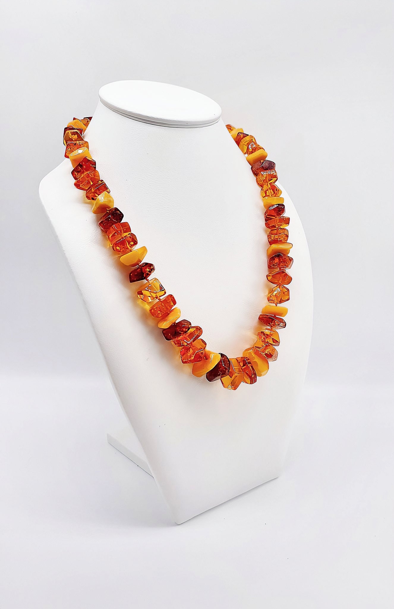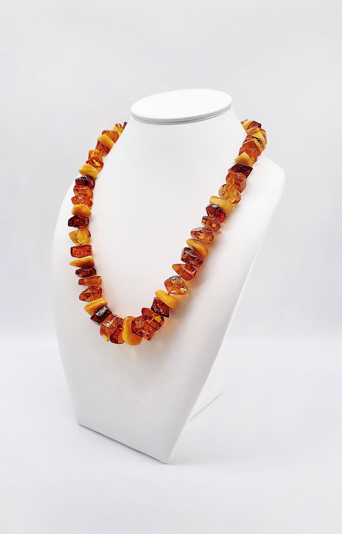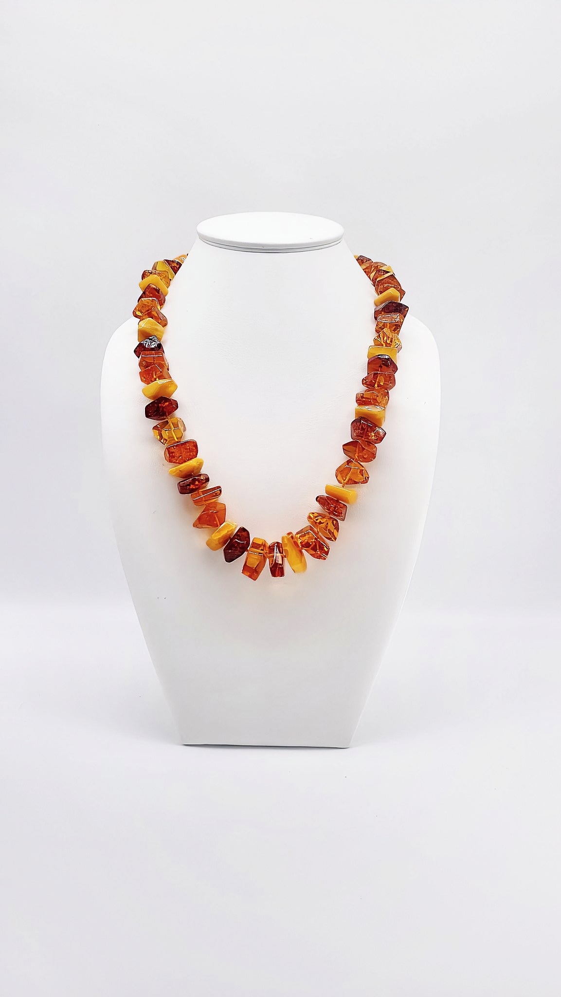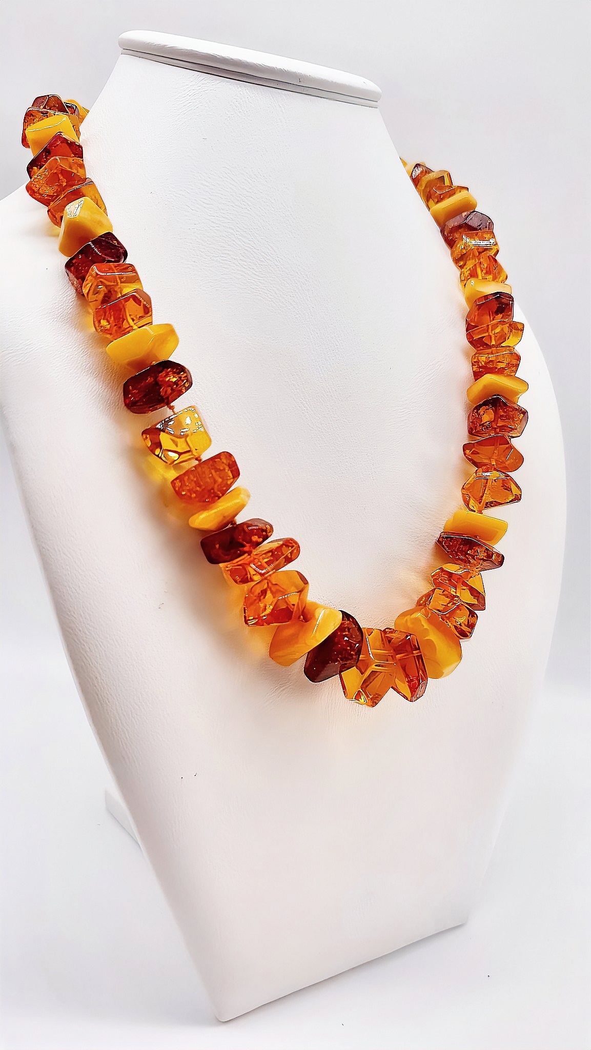 Experience the mesmerizing beauty of this unique amber necklace. Lovingly handcrafted from carefully selected amber beads, this piece of jewelry combines warm, golden tones that add a special touch to any outfit. The natural texture of the amber and its incomparable color make this necklace truly unique. Perfect for special occasions or as a stylish everyday accessory – let yourself be enchanted by the radiant elegance of this amber necklace.