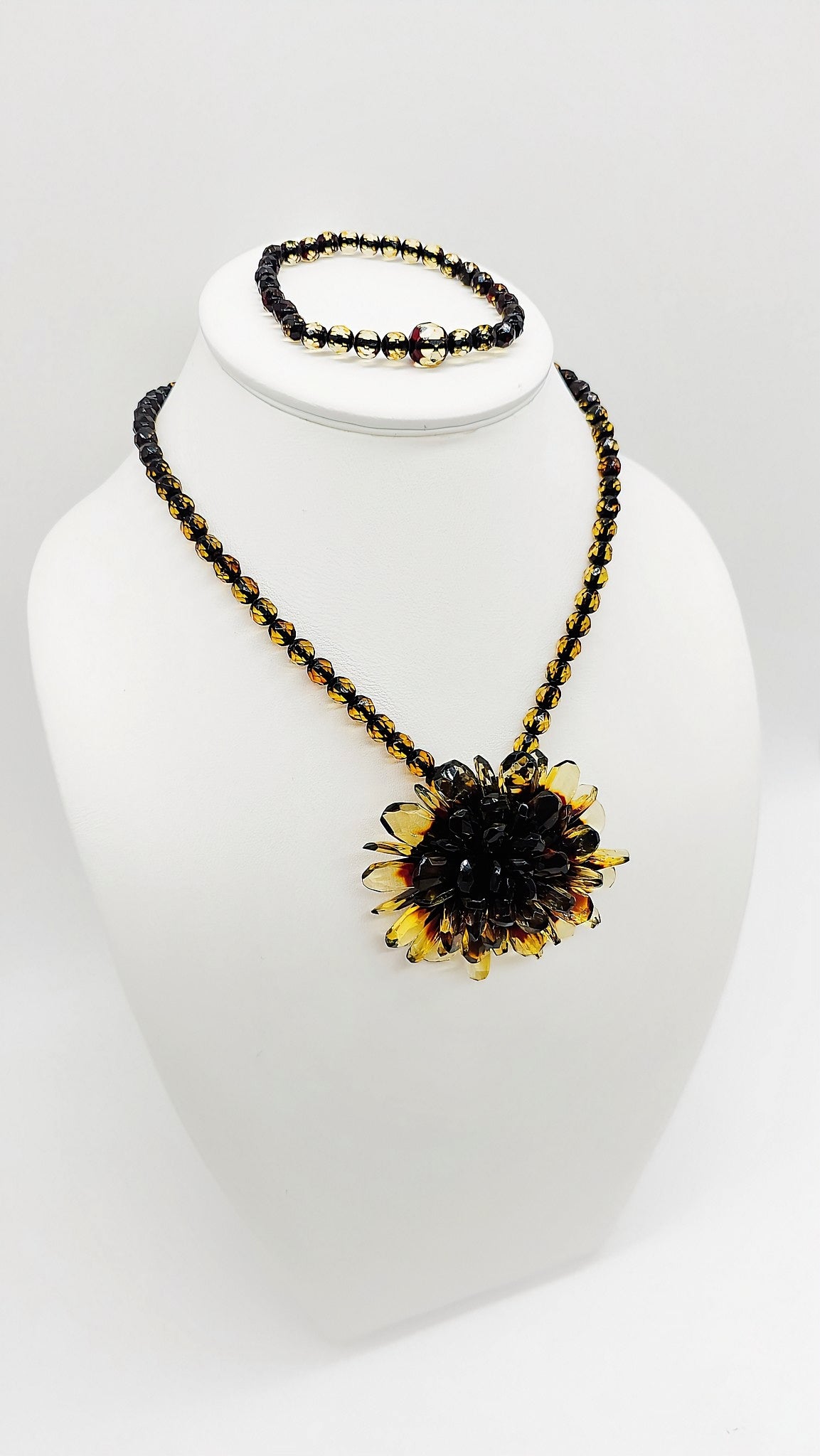 Flower magic in amber – artistic necklace