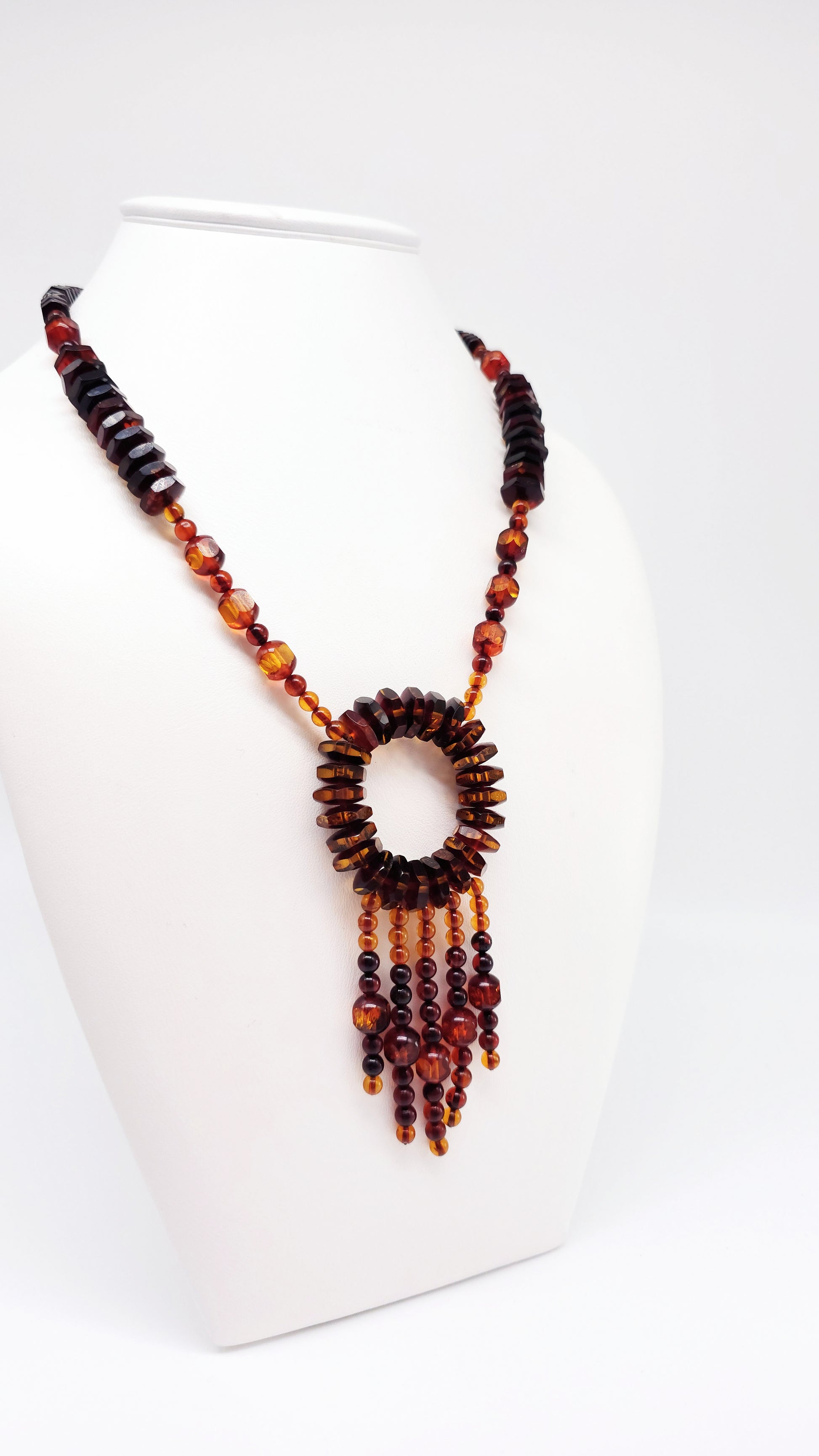 Expressive composition made of genuine amber with an impressive pendant – a real eye-catcher.